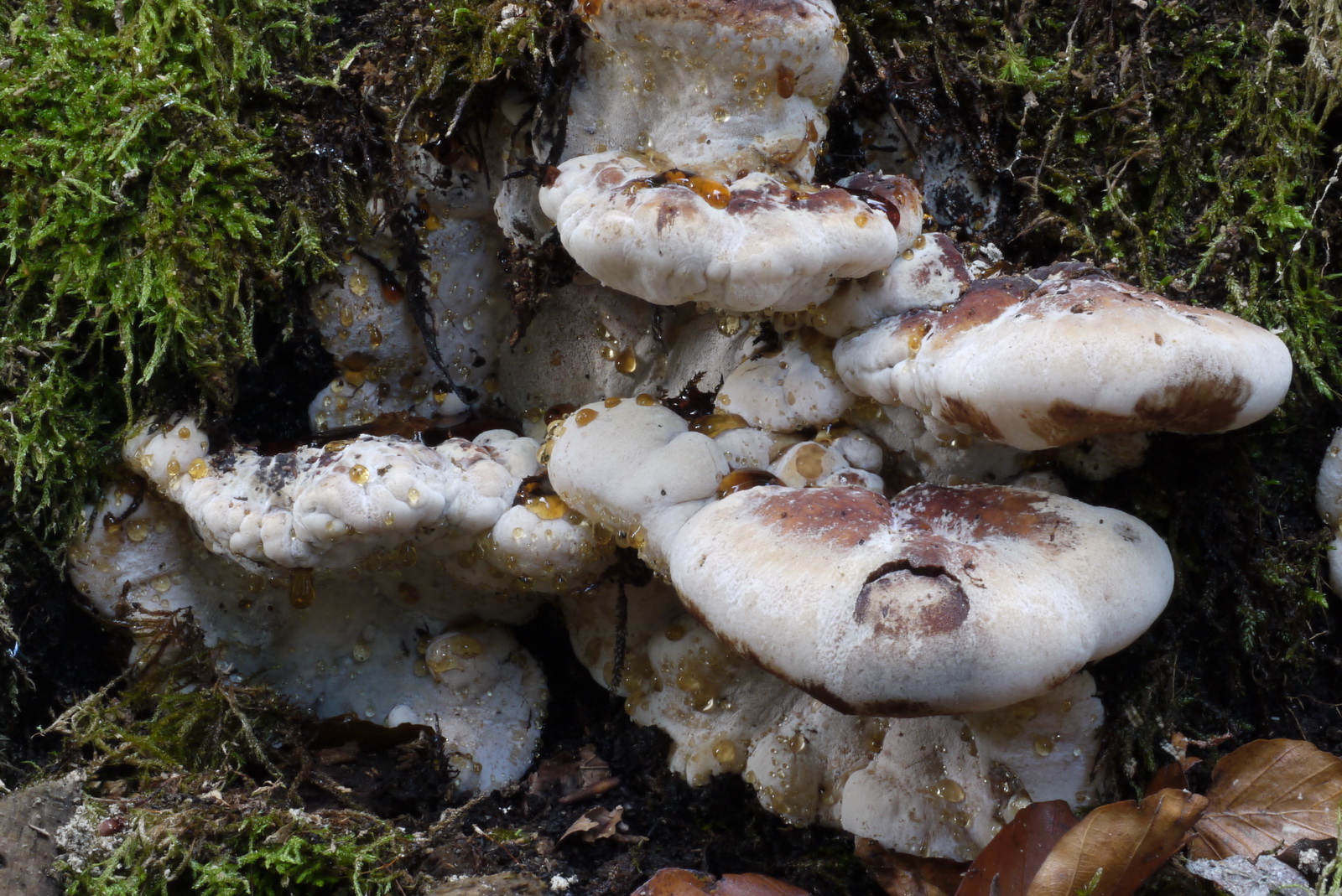 Bild 1 besonderes 2 zu sehen ist Dunkle Tropfen , das Passt nach Ischnoderma resinosum aber auch an Fistulina hepatica