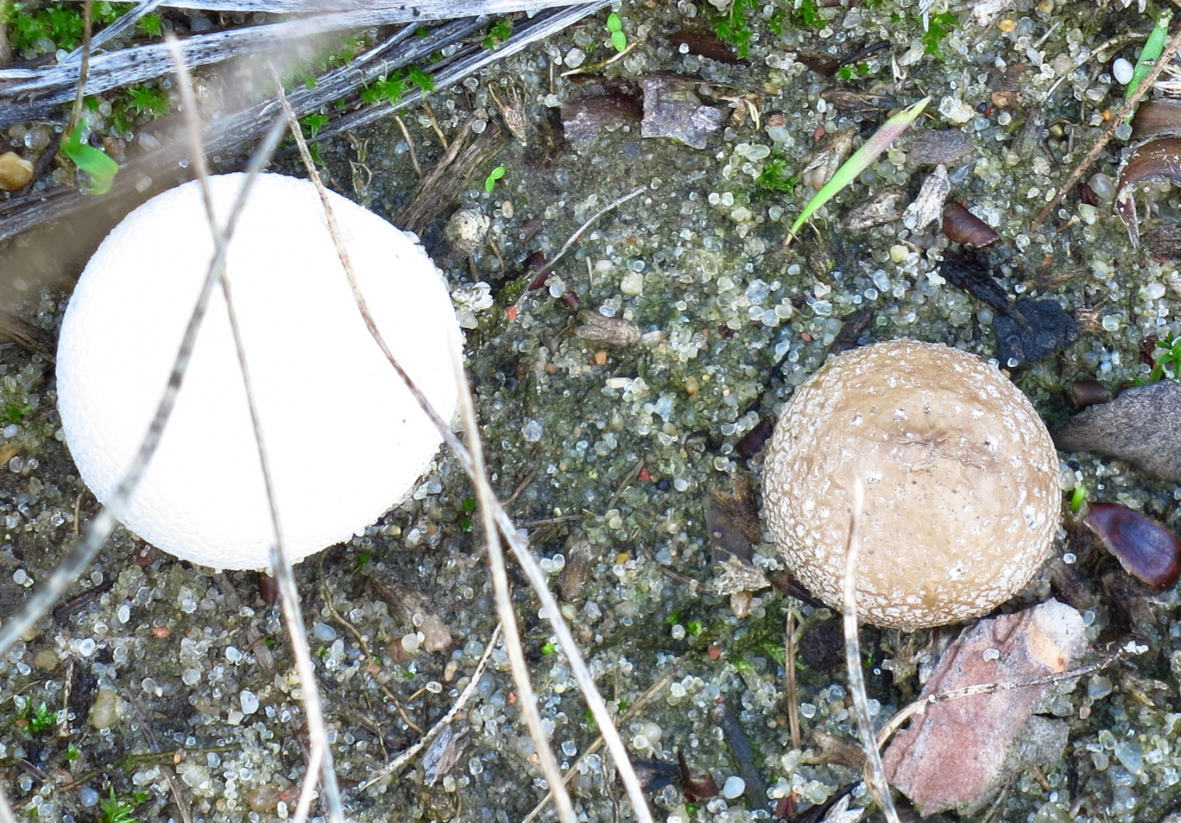 ich war heute mal nach etwas Regen im Wald. Auf dem Weg zu meinen alten Fundstellen, bin ich über einen Trockenrasen mit sehr sandigem Untergrund gelaufen und habe so an die 50 FK von kleinen (1 – 2cm) Stäublingen gesehen. Die rein weißen FK sind mir schon öfter aufgefallen und deshalb habe ich dieses Mal nachgeschaut, was sie sein könnten.