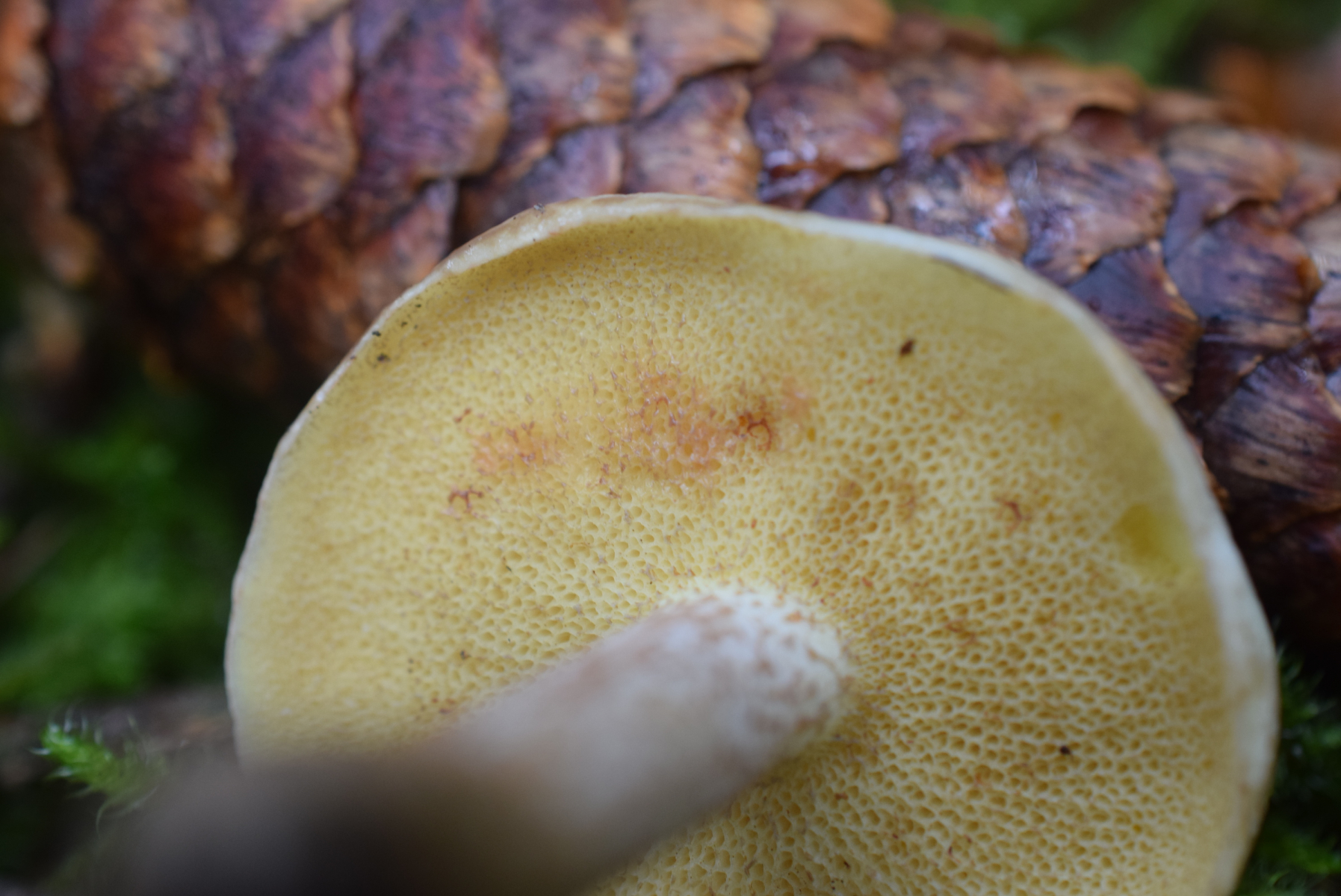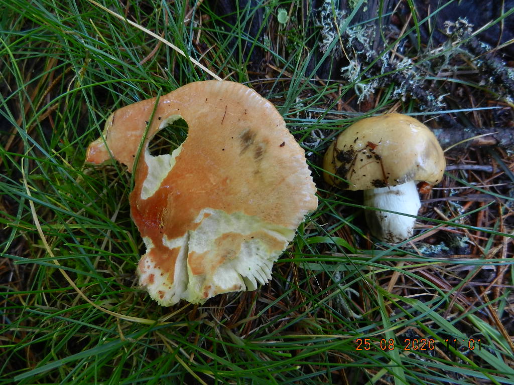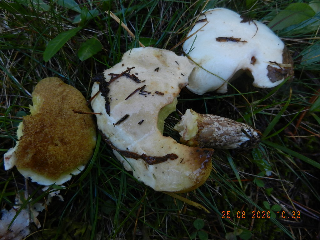 Pilz 4: gewachsen im Lärchen-/Zirben-Wald auf ca. 1800 m NN; achtet auf die Verfärbungen am Hut, die geben einen guten Hinweis