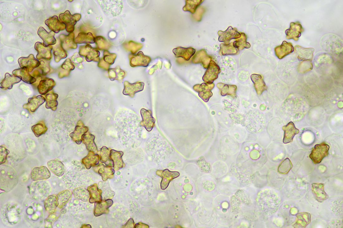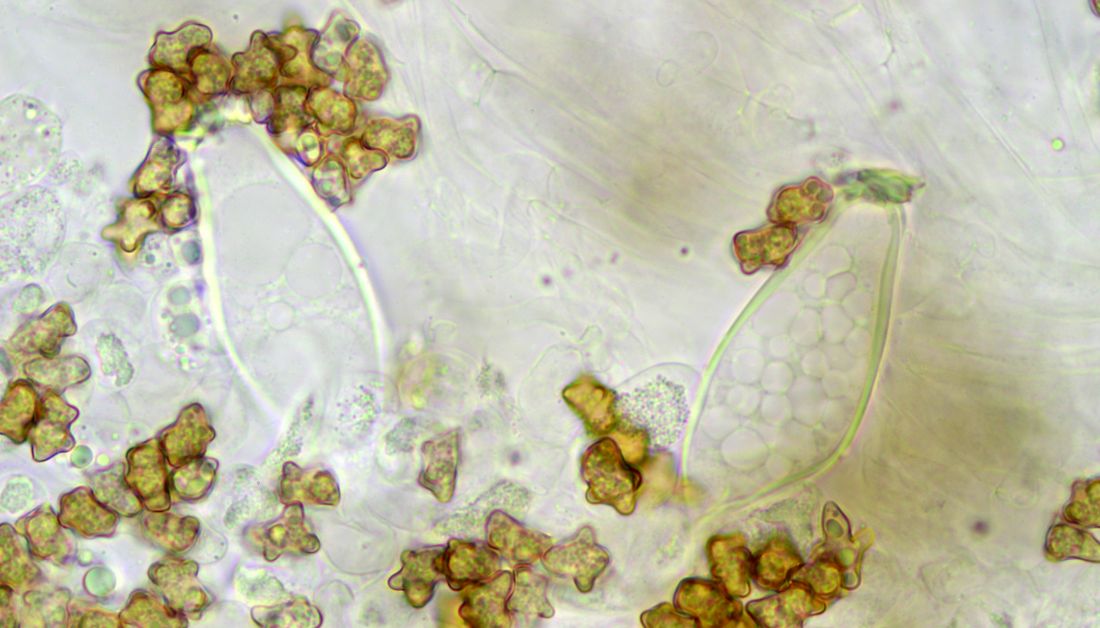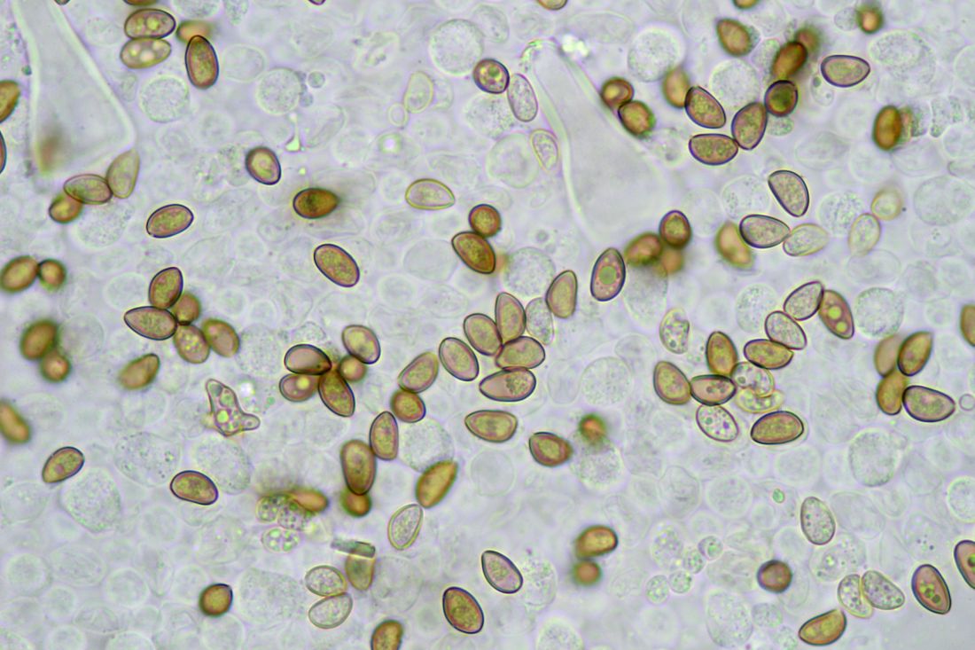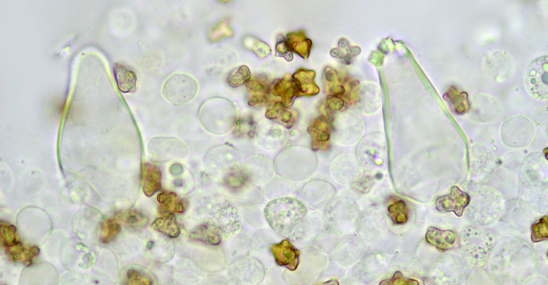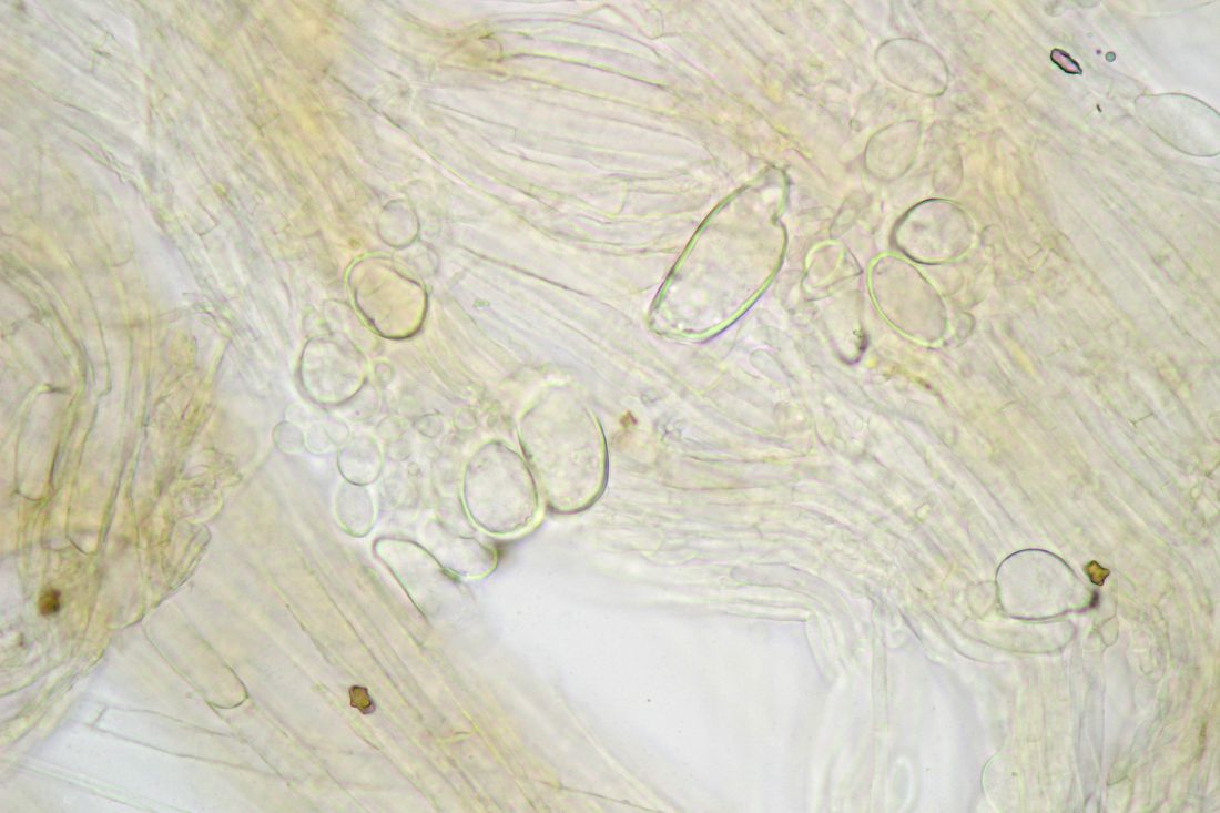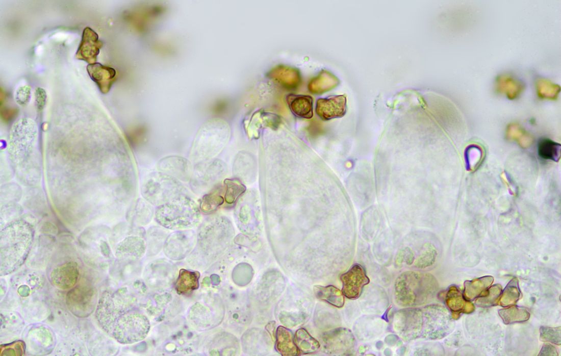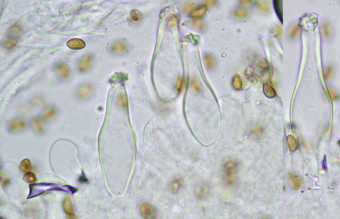 Kaulozystiden: selbst oben praktisch nur haarförmige Elemente gesehen, keine Kaulos, die wie die Hymenialzystiden aussehen (mglw. übersehen, jedenfalls nicht zahlreich)