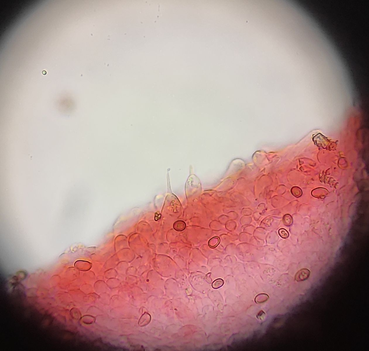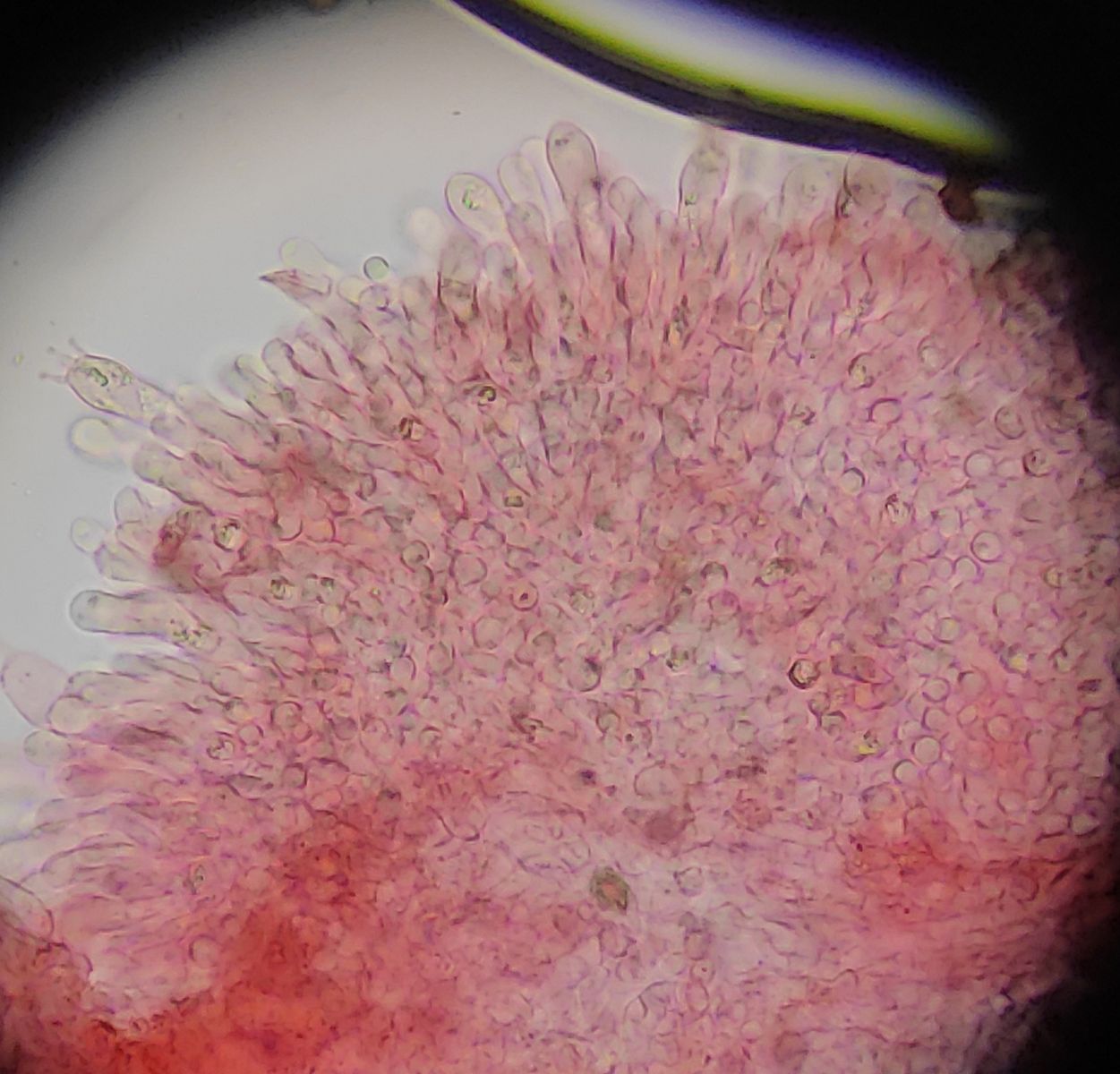 Lamellenschneide. Wirklich was interessantes ist da nicht zu sehen. Manchmal gibt's so geschnäbelte Zystiden(?) aber vielleicht sind das auch Basidien? Gibt's die auch 1-sporig? :whistling: