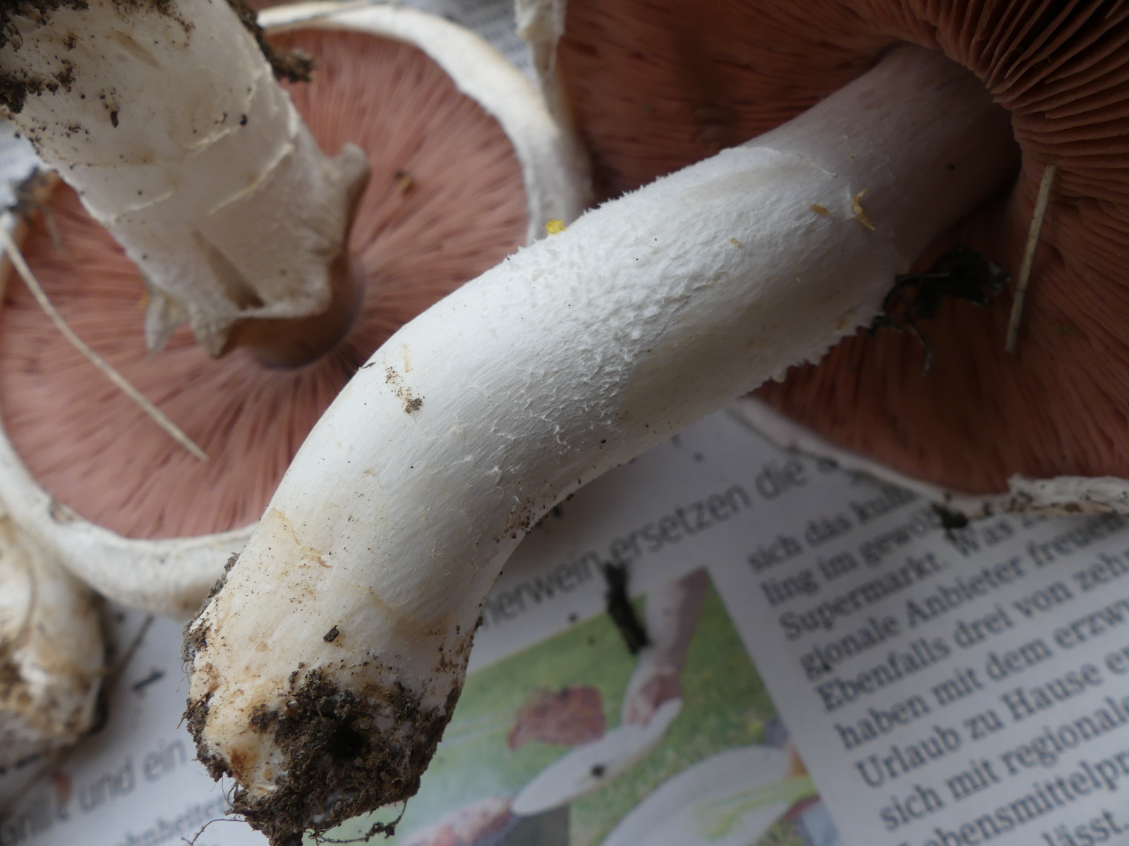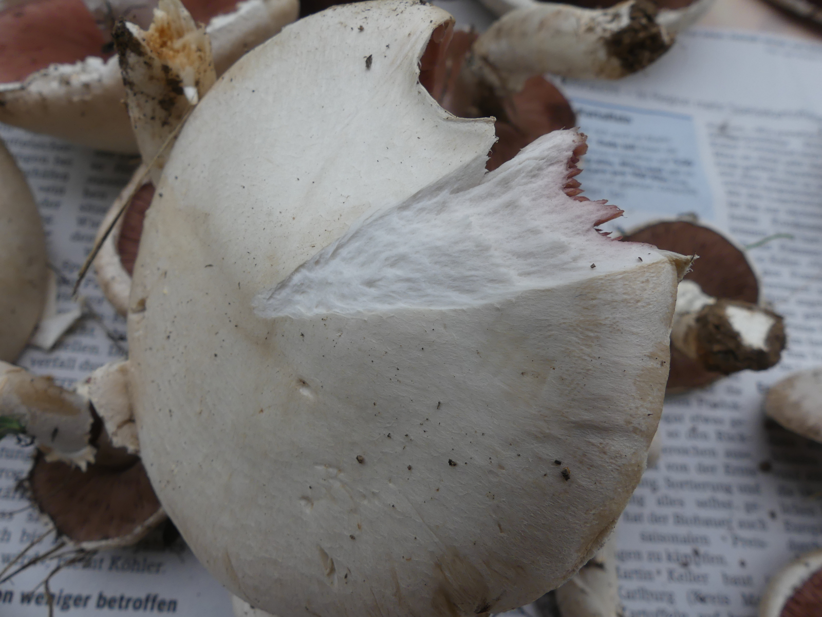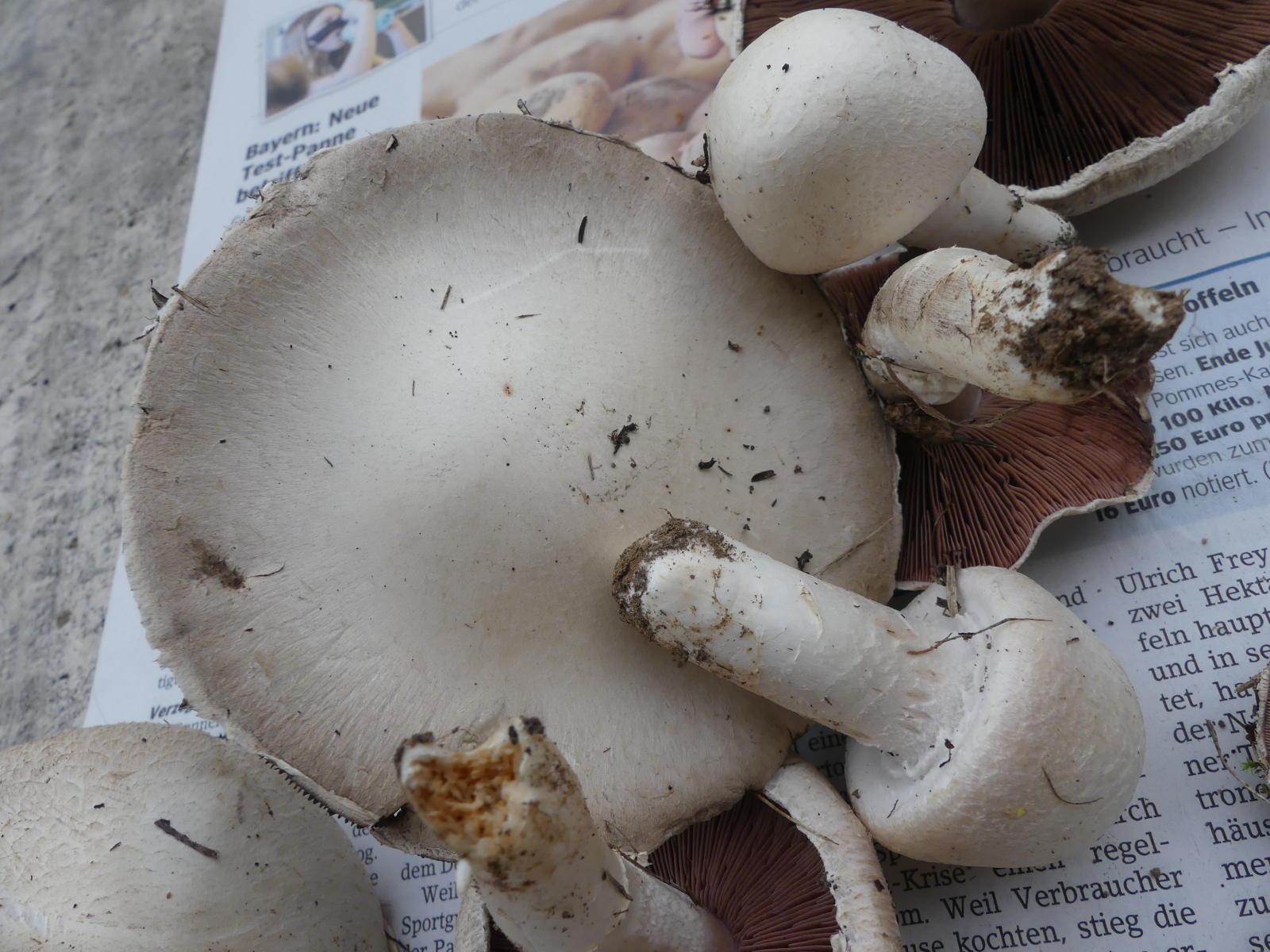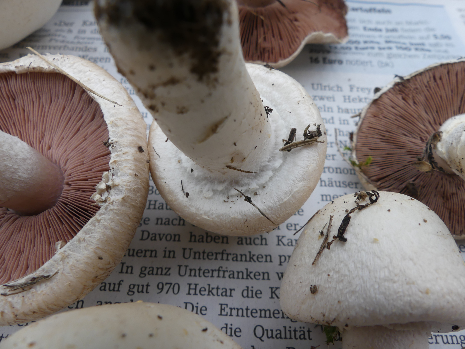 Hutdurchmesser bis ca. 11 cm, Stieldurchmesser 1-2 cm, keine Knolle, keine Gelbverfärbung, kein Karbolgeruch, kein Anisgeruch. Fundort 63939 Wörth am Main, Weinbauklima, Lehmboden auf Buntsandstein, keine Bäume in der Nähe.