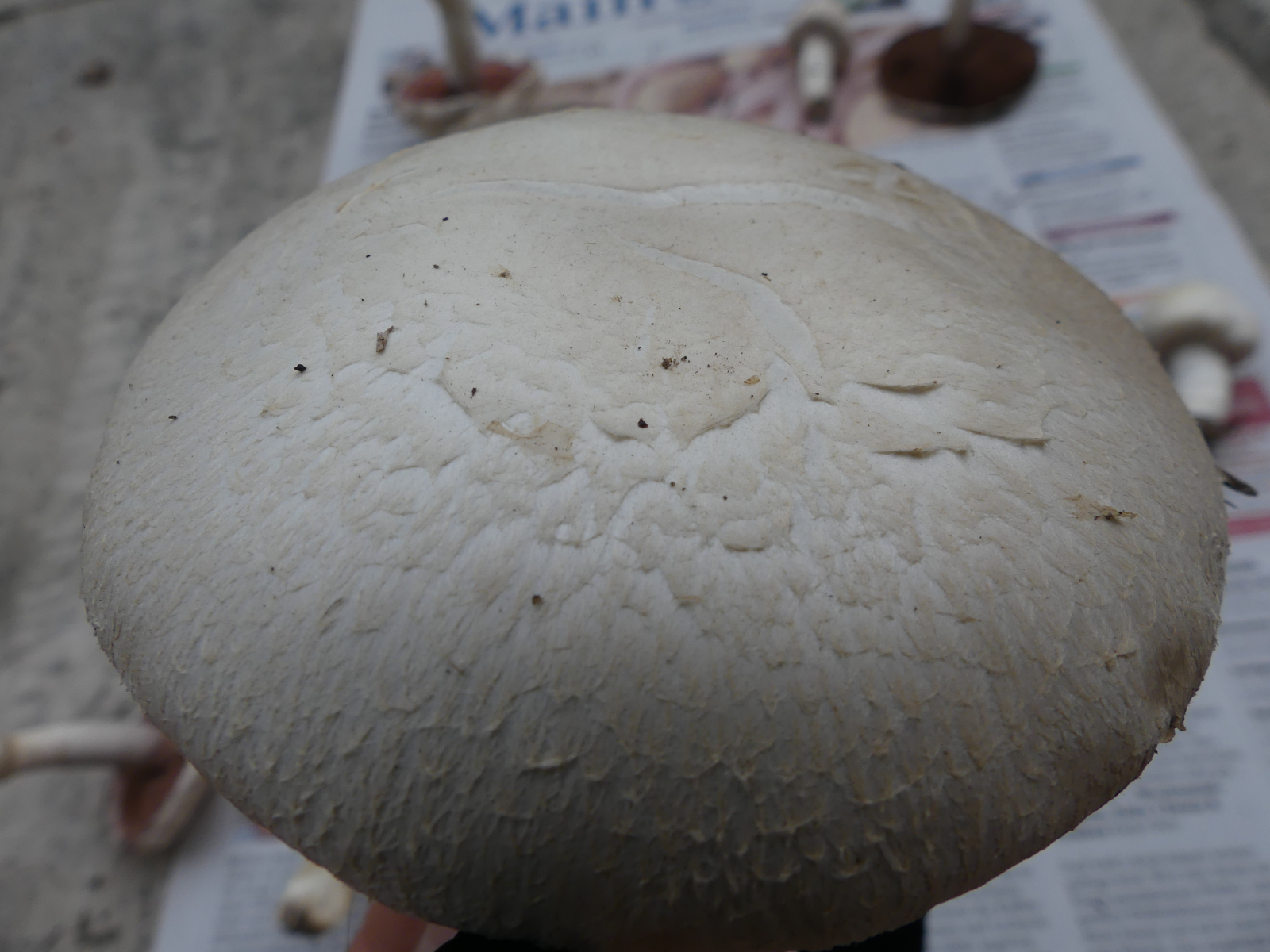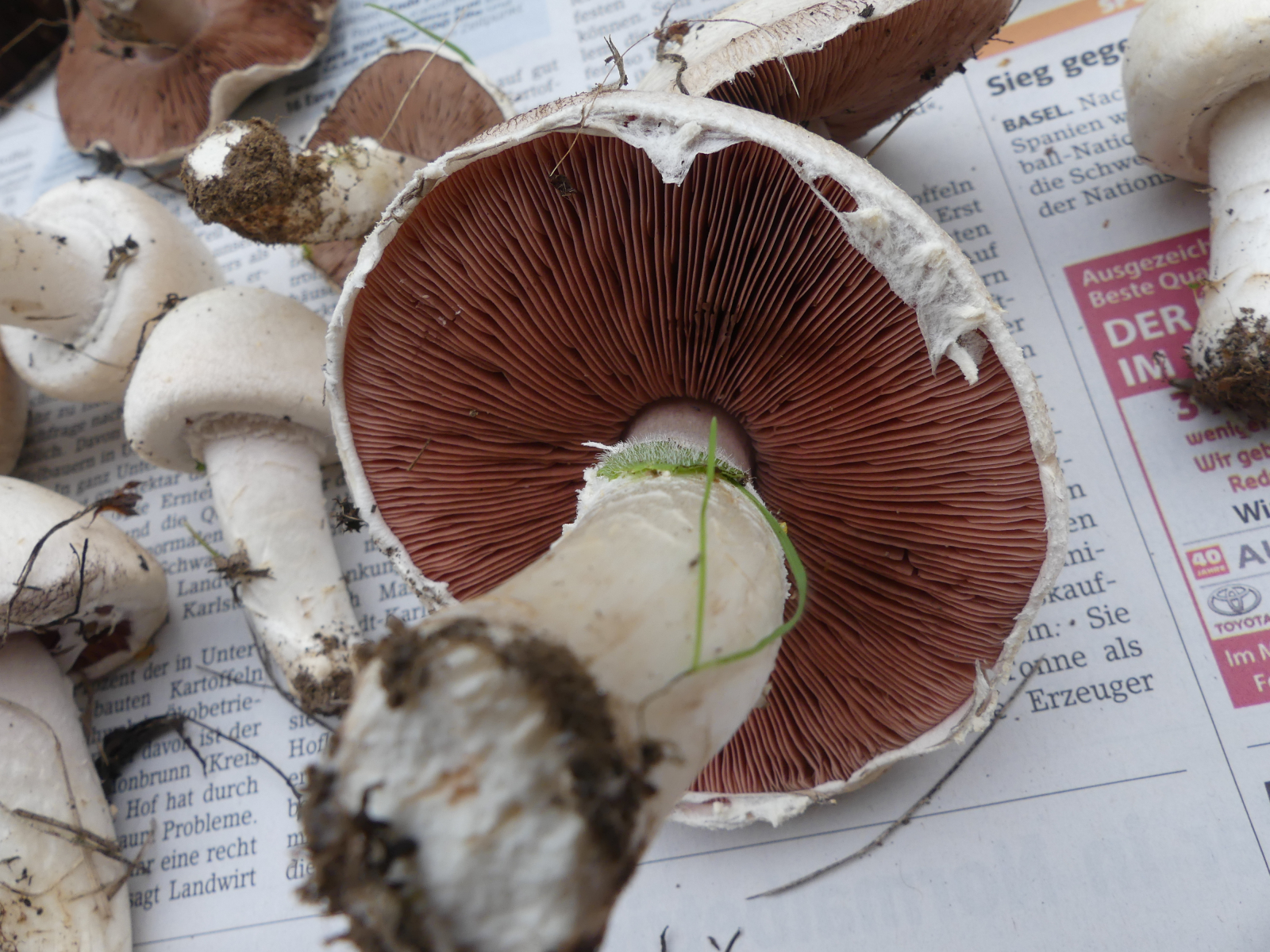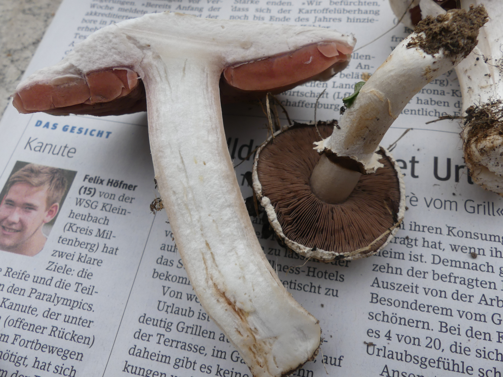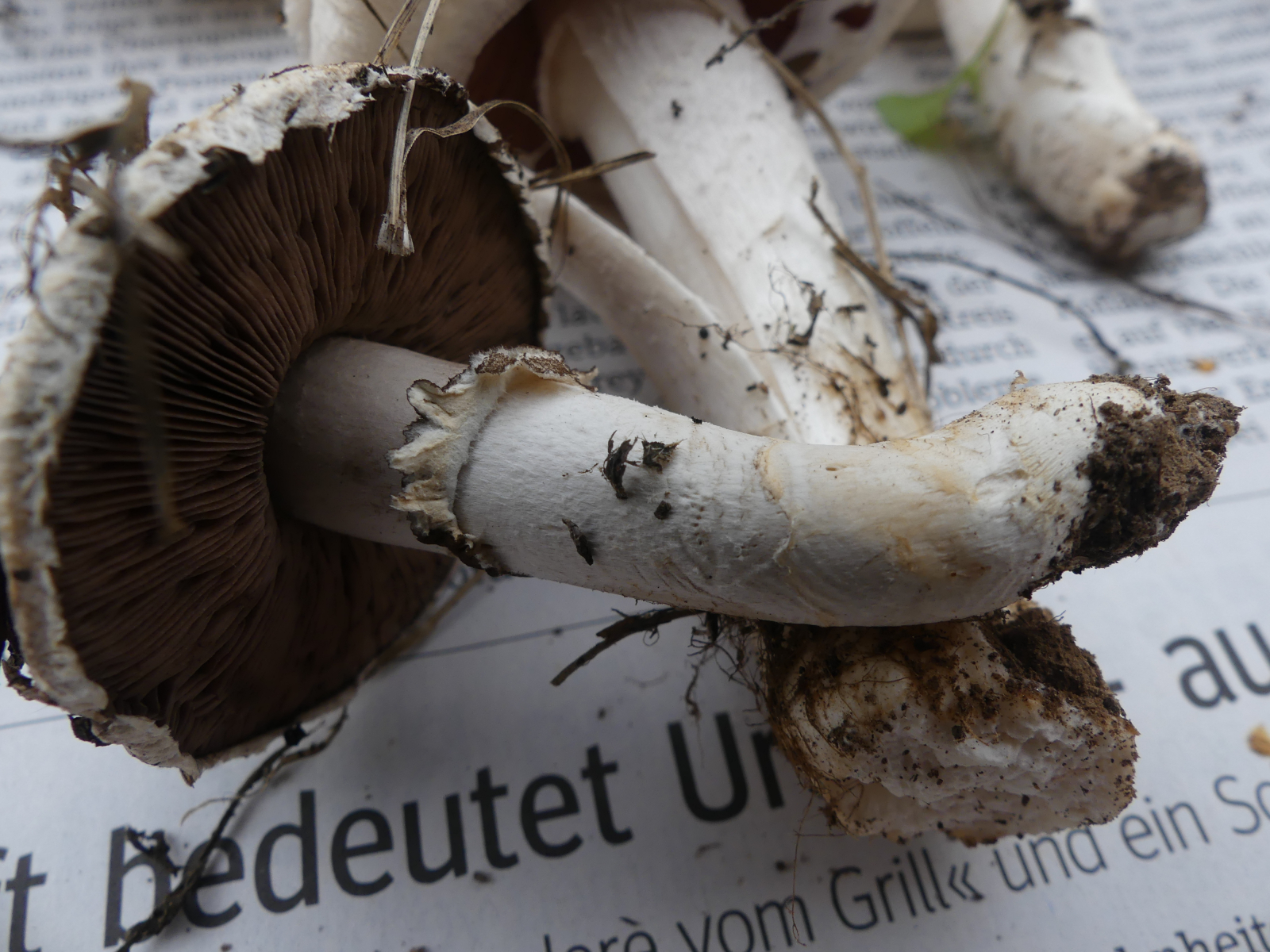 Hutdurchmesser bis ca. 11 cm, Stieldurchmesser 1-2 cm, keine Knolle, keine Gelbverfärbung, kein Karbolgeruch, kein Anisgeruch. Fundort 63939 Wörth am Main, Weinbauklima, Lehmboden auf Buntsandstein, keine Bäume in der Nähe.