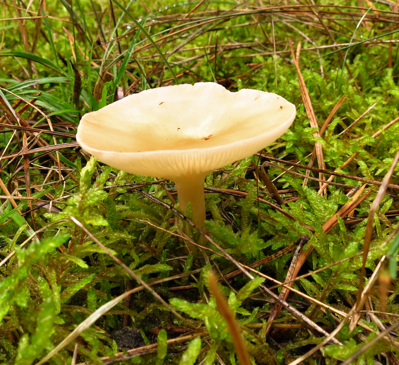Habitat: alter Kiefernbestand mit reichlich Bodenbewuchs. Hauptsächlich Gräser, Moos, Heidekraut usw.. Die FK fand ich jeweils gesellig stehend in Gruppen von 5 – 10 Stück, waren noch relativ jung und wässrig (es hatte in der Nacht geregnet).