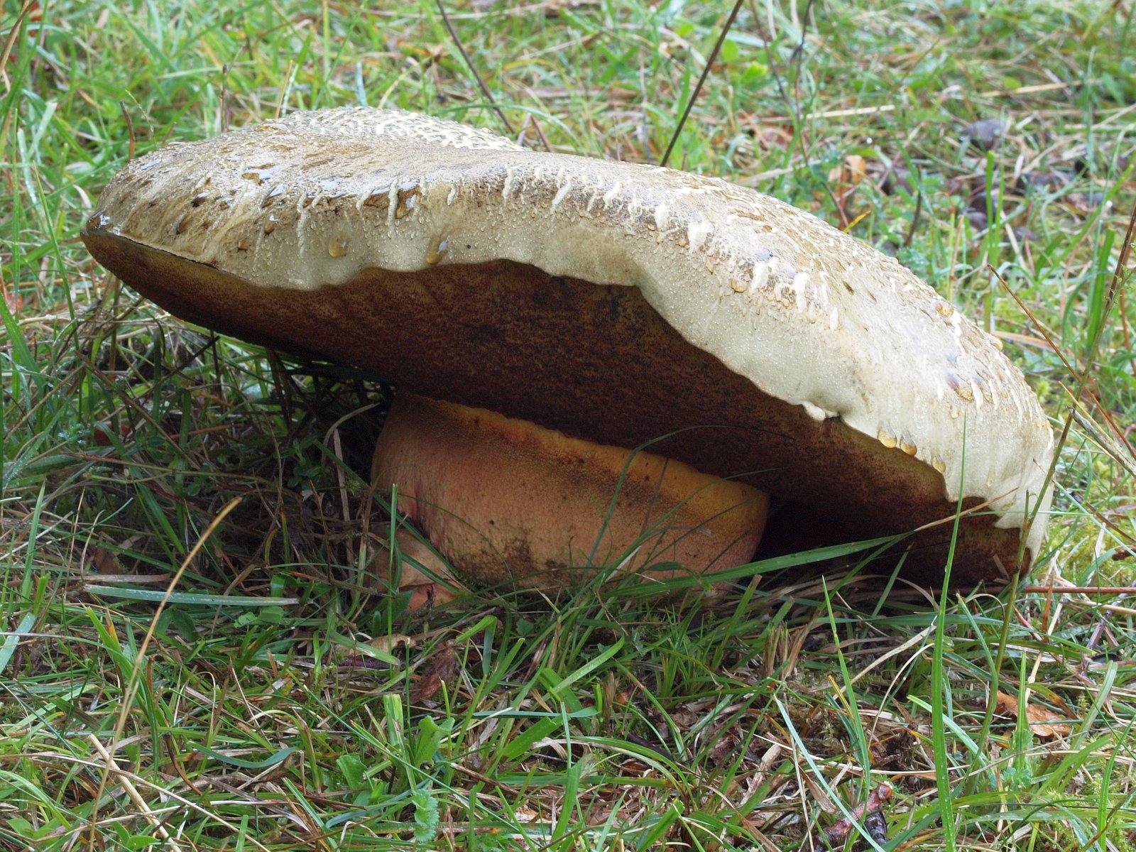 Gegen 8:45 inspizierten wir ein mit Linden bestandenes Wiesenstück und entdeckten zwischen zahlreichen Pilzleichen von Netzstieligen Hexenröhrlingen eine mehrere Gruppen von Raslingen.