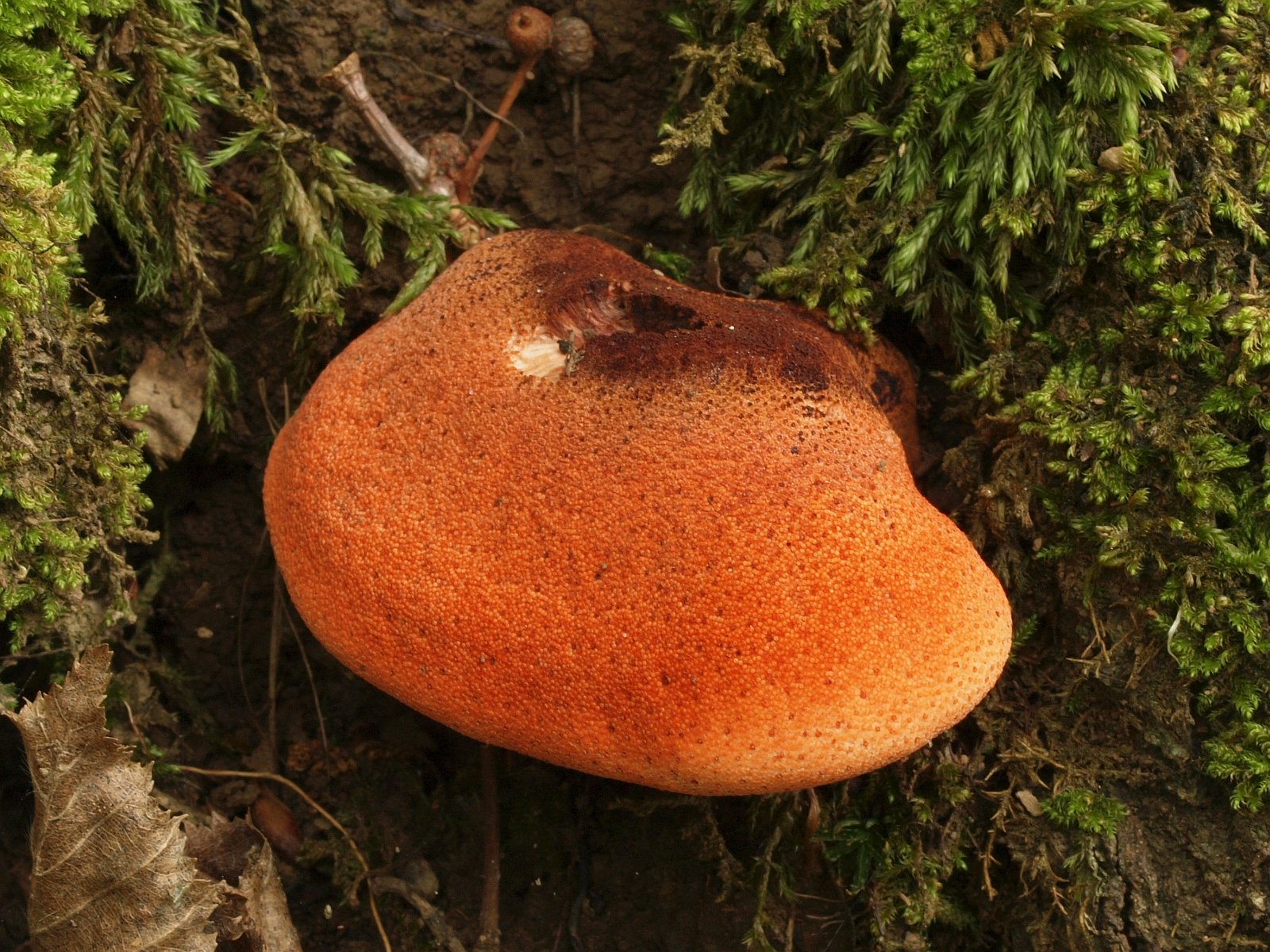 Nach längerem Suchen fand sich zwischen Pilzleichen noch ein wunderschönes, taubedecktes, junges Exemplar