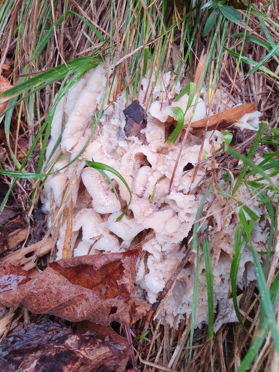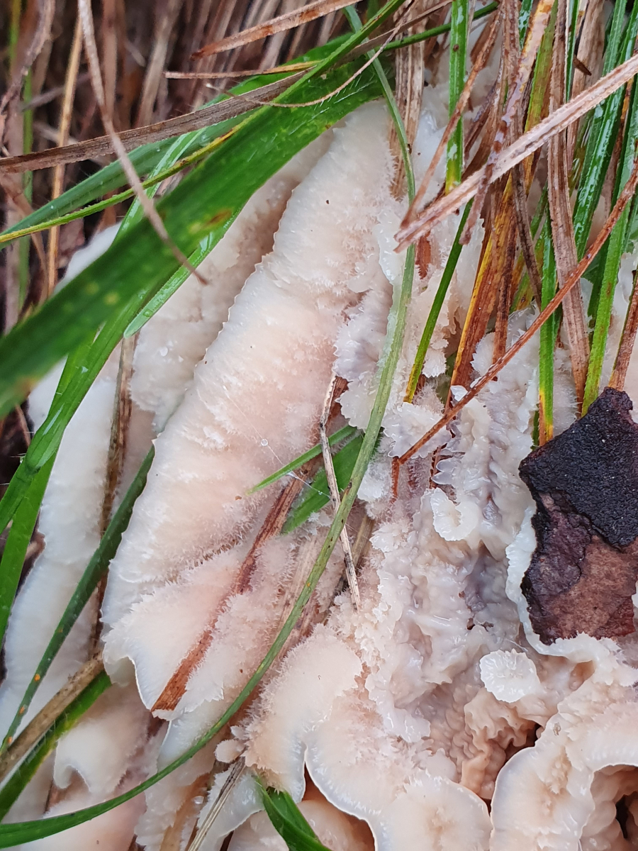 Die Fruchtkörper waren sehr zäh und etwas gallertig. Keine Poren oder Stacheln zu erkennen, die Fruchtschicht war etwas faltig/runzelig.