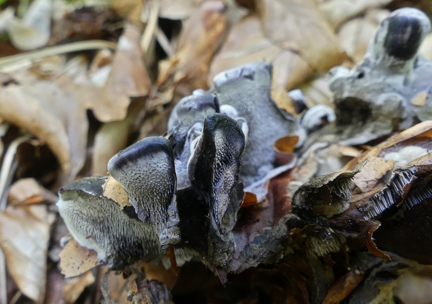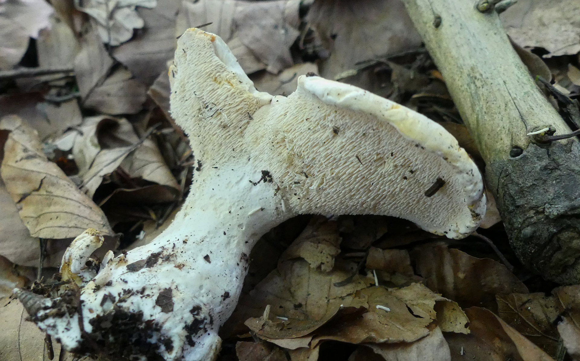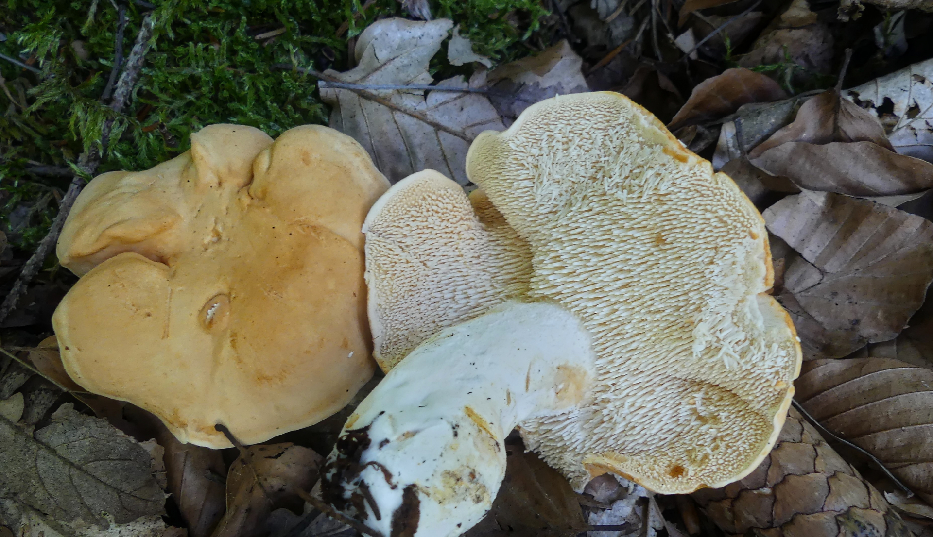 Und dann an mehreren Stellen diese nach wie vor unbekannten Stachlinge. Und diese Pilze waren der Grund des Besuches von Stefan. Weitere Fotos findet man hier