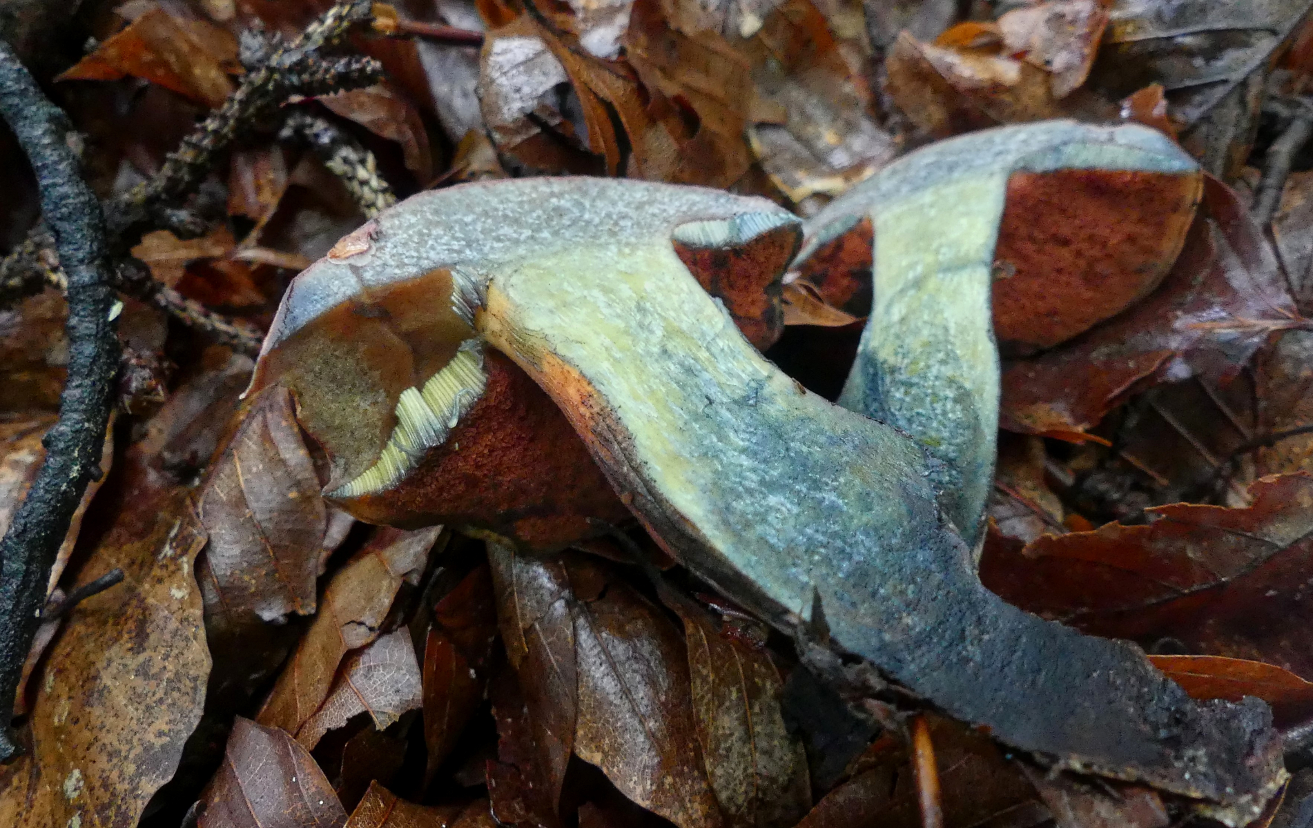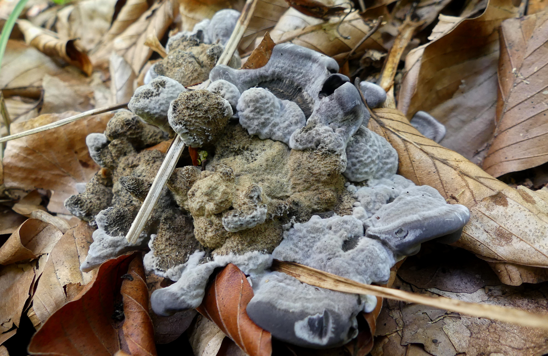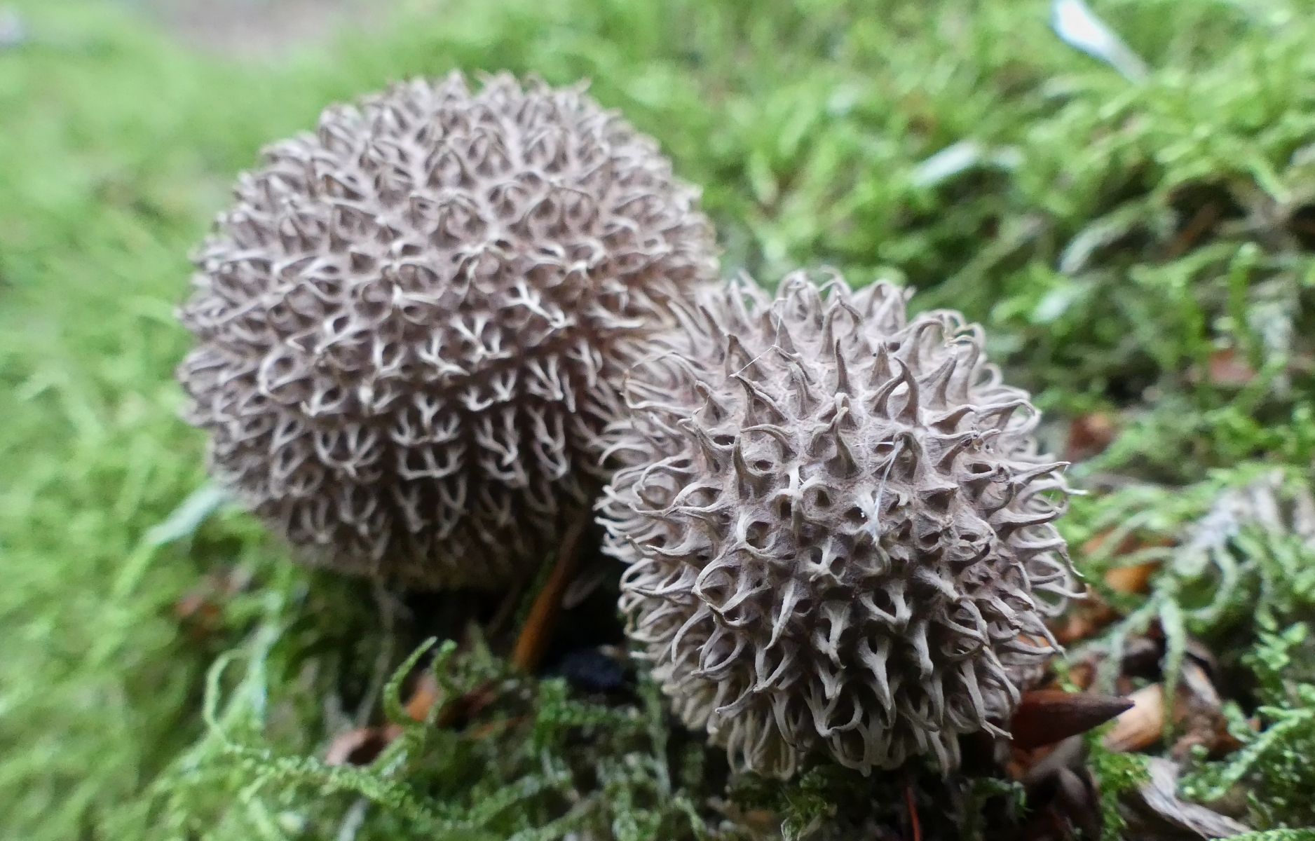 Und dann an mehreren Stellen diese nach wie vor unbekannten Stachlinge. Und diese Pilze waren der Grund des Besuches von Stefan. Weitere Fotos findet man hier