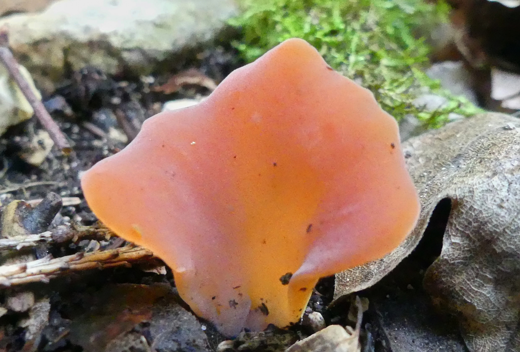 Ein kleiner Hang voll mit Orangeroten Korkstachelingen (Hydnellum aurantiacum) die gerade durchkommen - wunderschön und ich glaube schon etwas durchaus Besonderes.