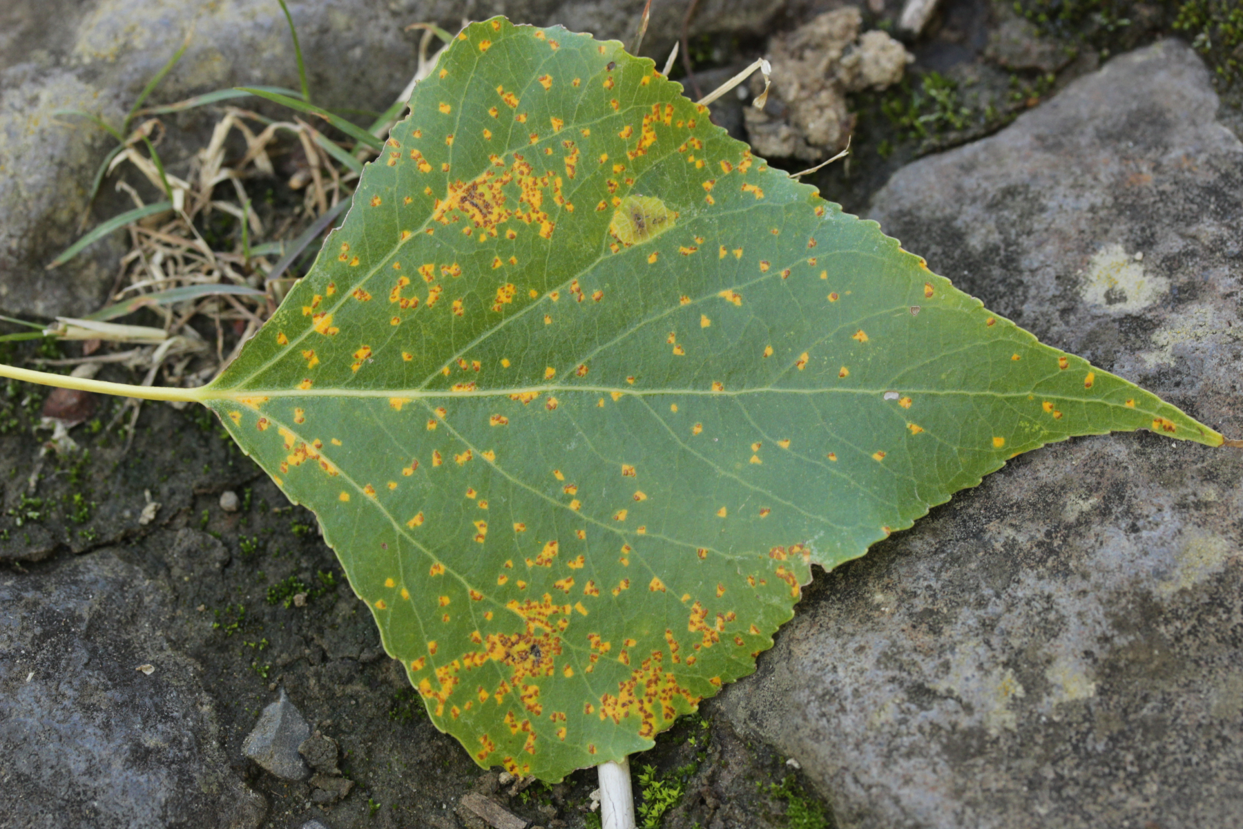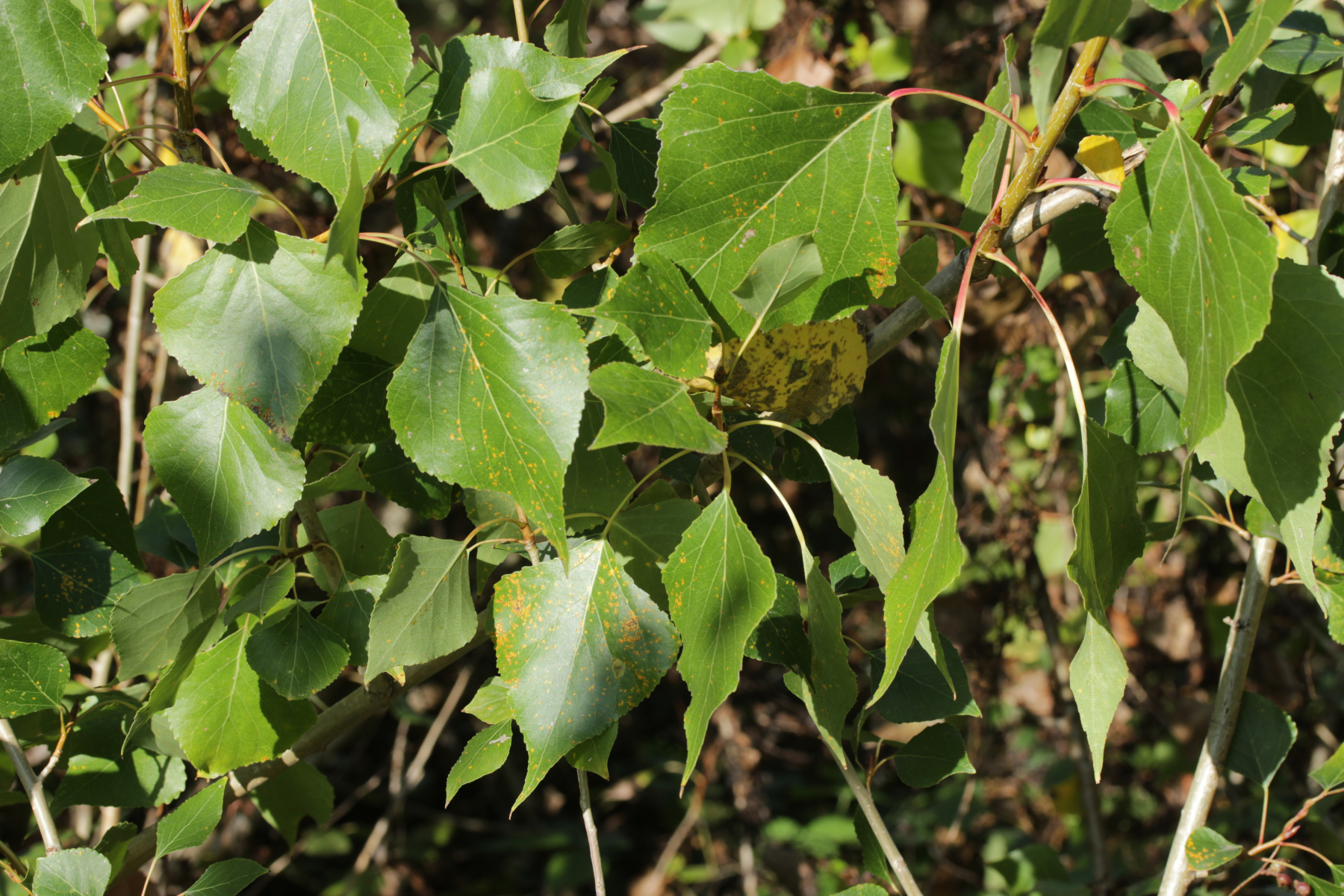 4. Eigentlich gilt ja: Rose, Pappel, Weide, meide! Aber andererseits gilt halt auch: Ist die Pappel schwarz, macht das Schüsseln Spaß! Melampsora laricis-populina ex Populus cf. nigra