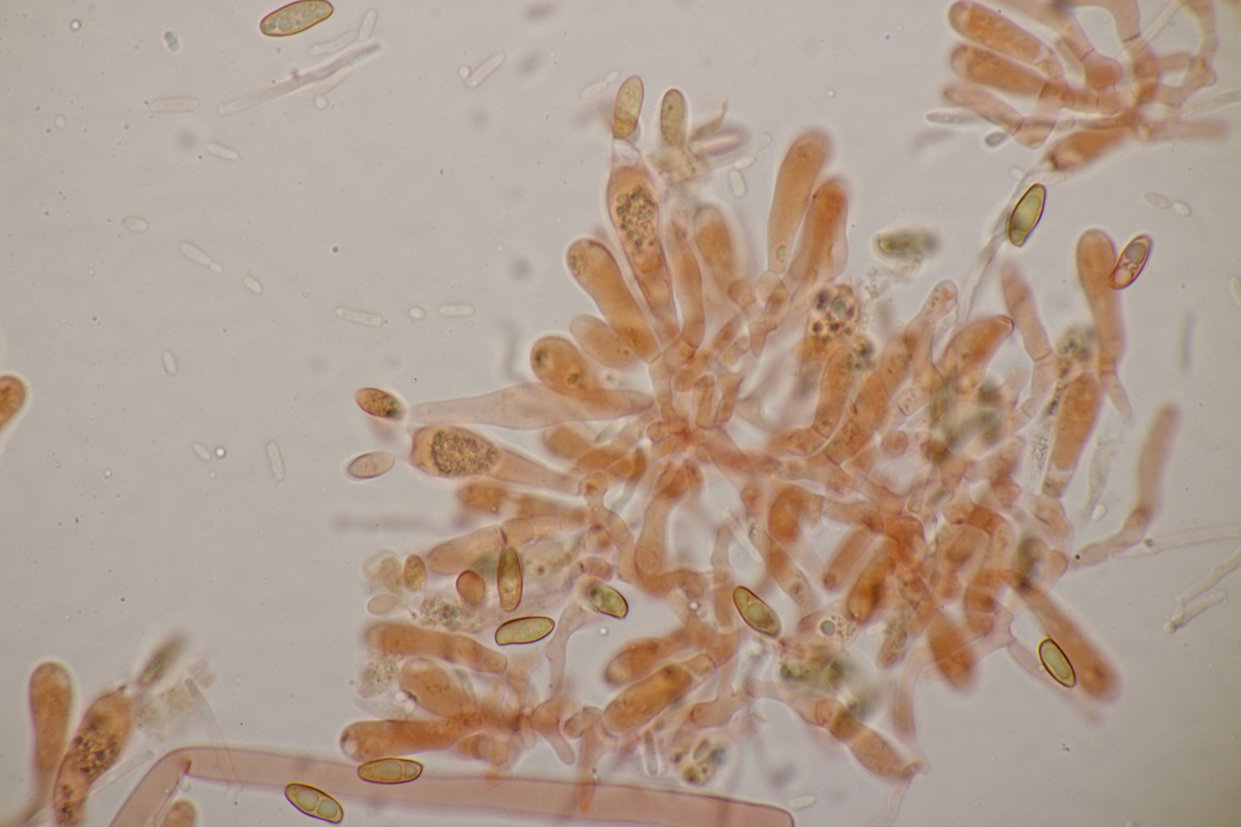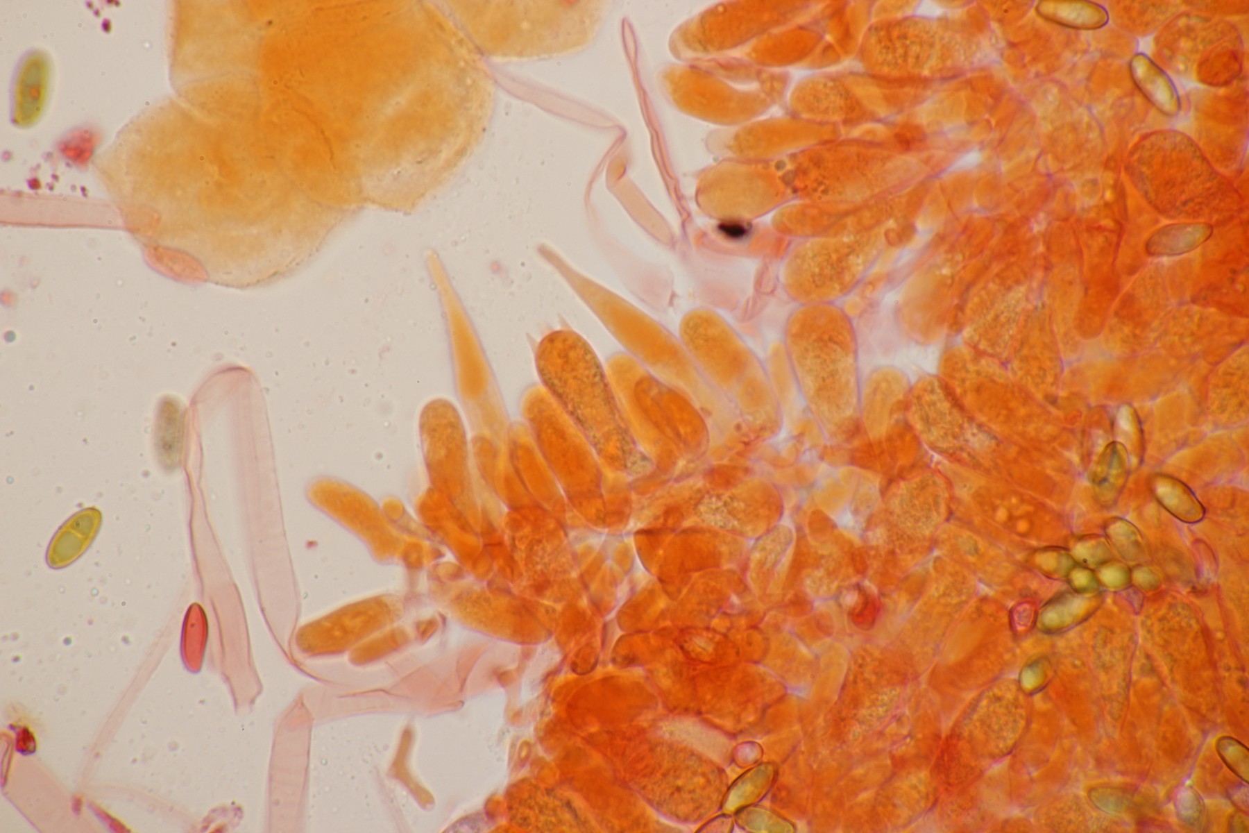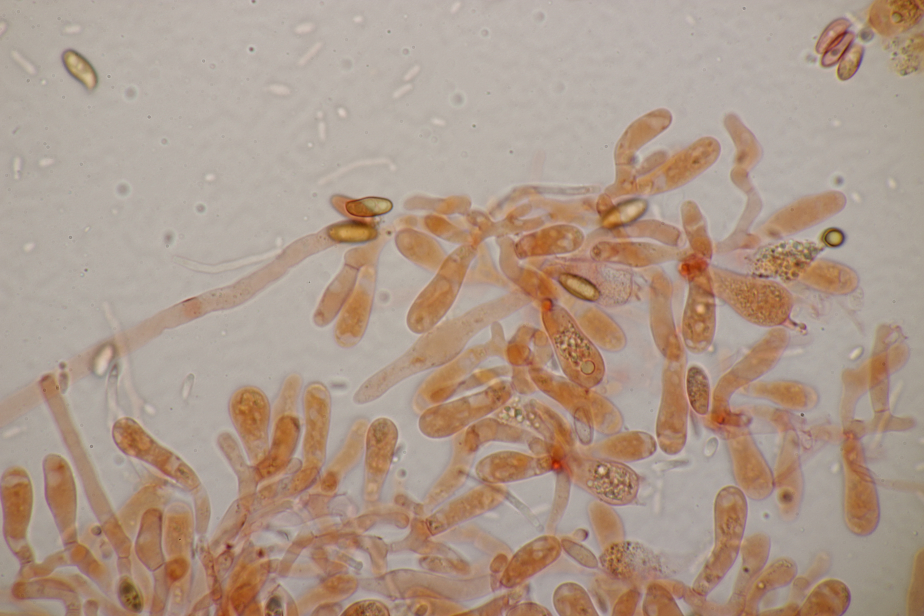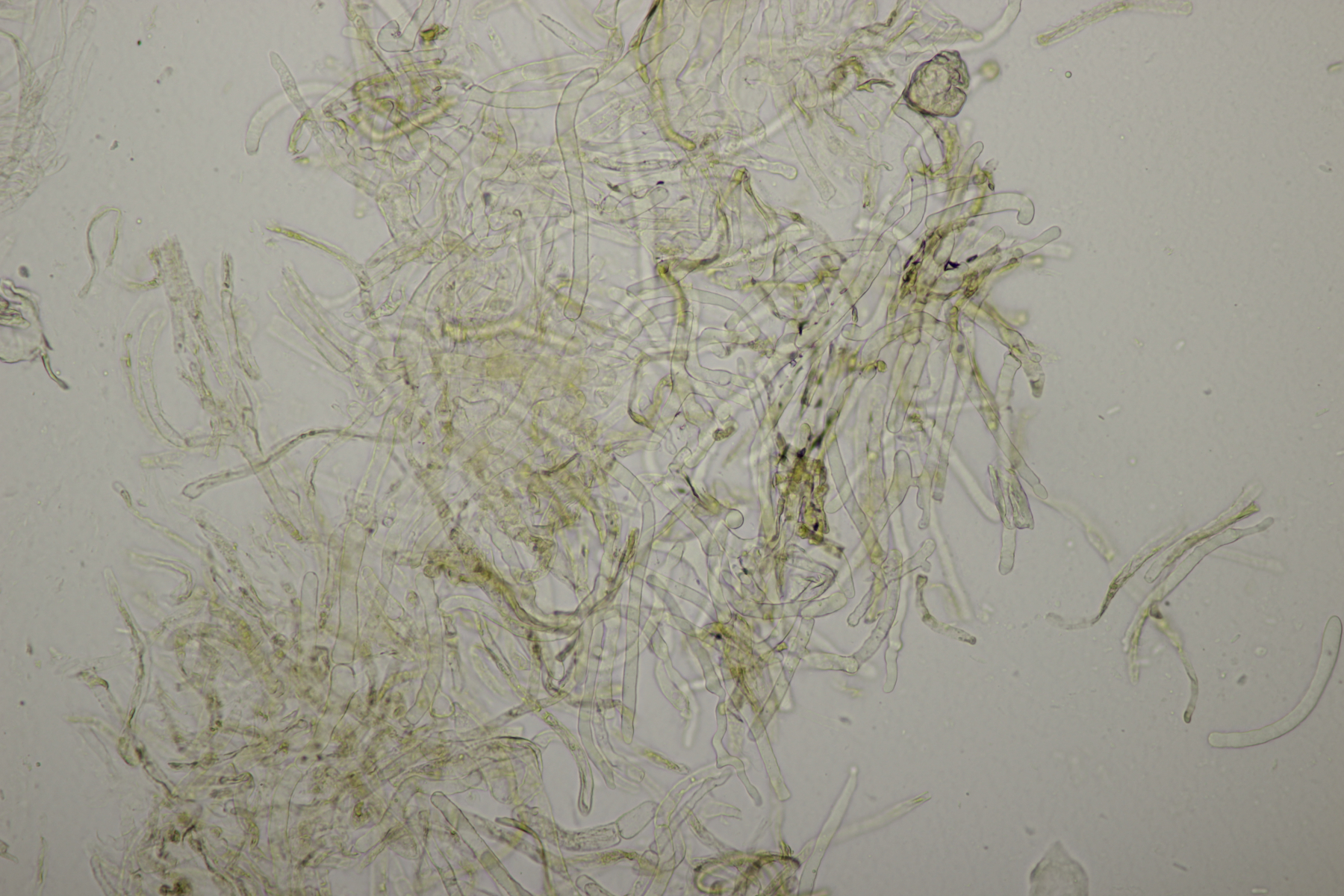 3. Wenn man sich beim Erstellen der Mikropräparate ziemlich nah mit der Nase an den Satansröhrling geklebt hat und dabei den Geruch einer vollen Babywindel wahrnimmt, ist man froh, wenn man anschließend diesen Pilz hier unters Mikro legt. Der Iodgeruch wirkt da direkt angenehm und klinisch rein. Was nicht ganz so angenehm war: Ich hatte mir fürs Mikro eine Hälfte des Pilzes mitgenommen, den Karl schon am Vortag für sein Foto zerschnitten hat. Da war dann bei der Ankunft zu Hause schon einiges an Leben drin erwacht...