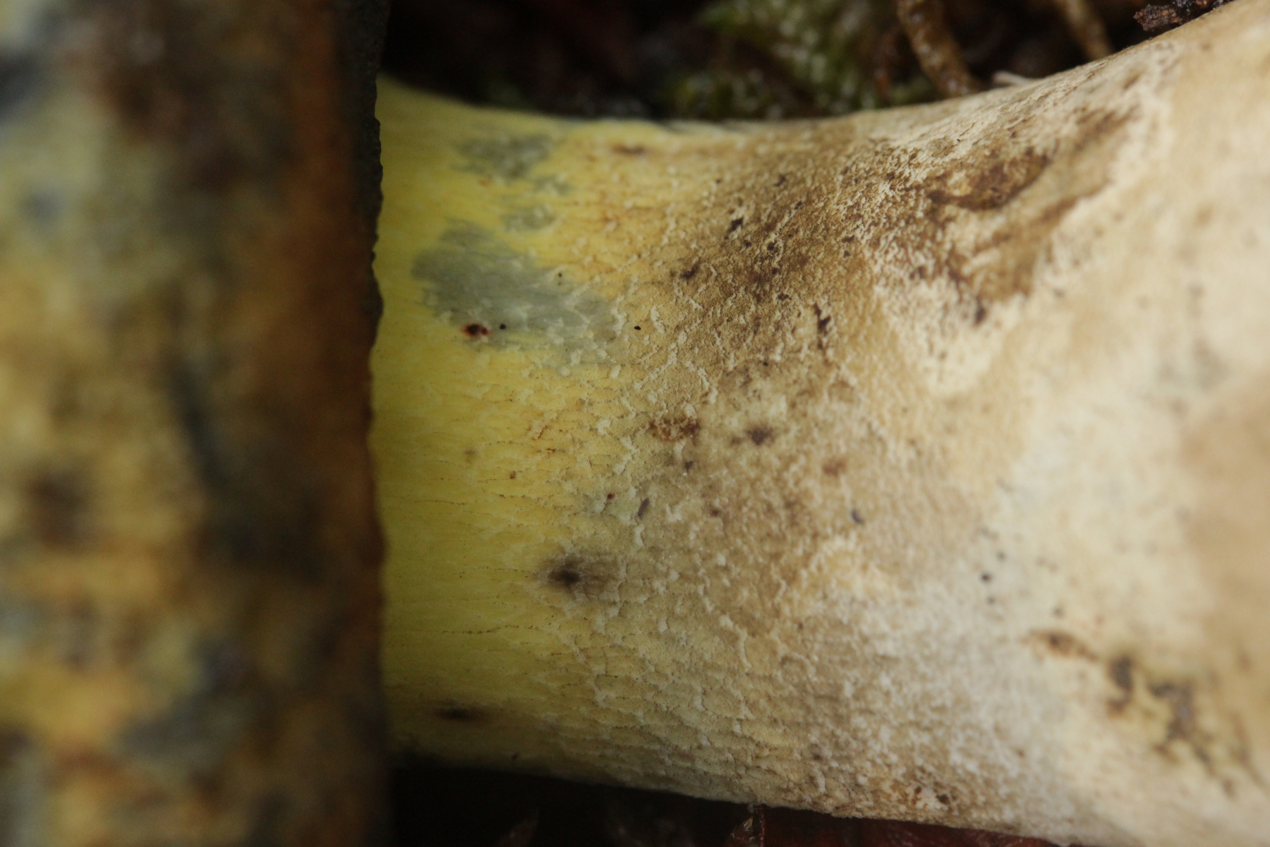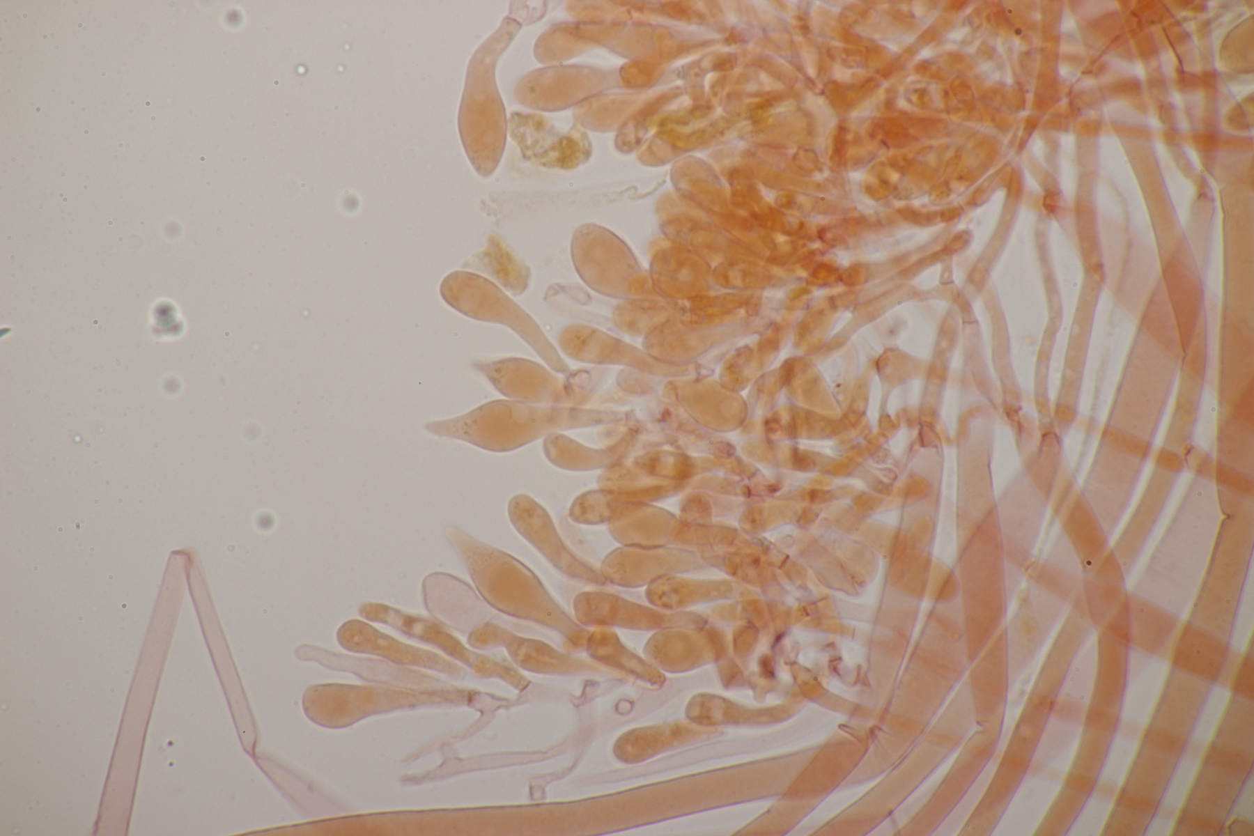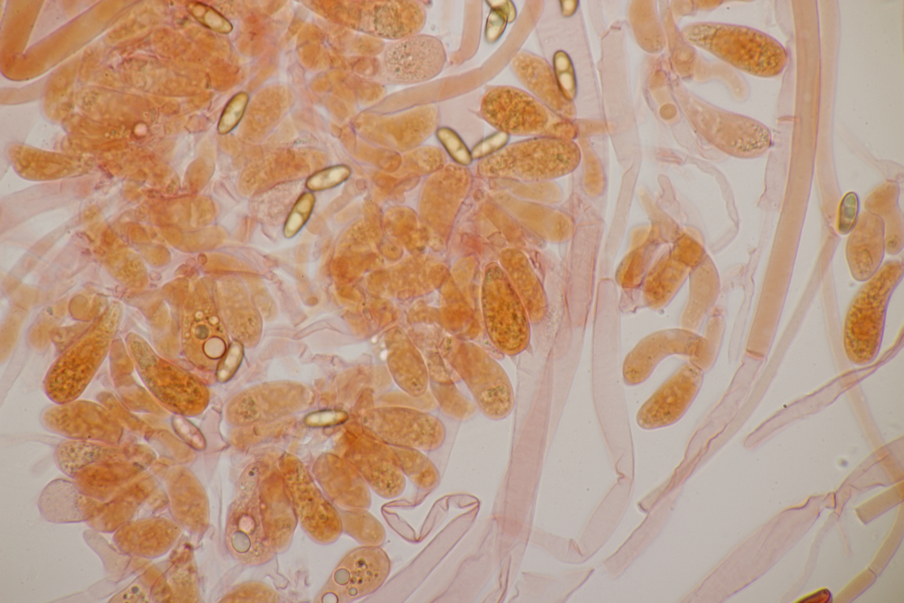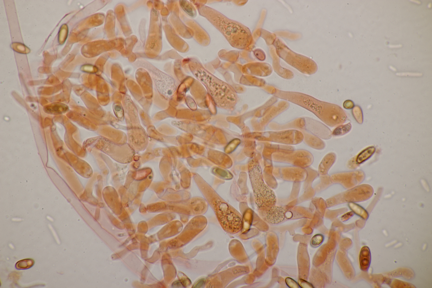 3. Wenn man sich beim Erstellen der Mikropräparate ziemlich nah mit der Nase an den Satansröhrling geklebt hat und dabei den Geruch einer vollen Babywindel wahrnimmt, ist man froh, wenn man anschließend diesen Pilz hier unters Mikro legt. Der Iodgeruch wirkt da direkt angenehm und klinisch rein. Was nicht ganz so angenehm war: Ich hatte mir fürs Mikro eine Hälfte des Pilzes mitgenommen, den Karl schon am Vortag für sein Foto zerschnitten hat. Da war dann bei der Ankunft zu Hause schon einiges an Leben drin erwacht...