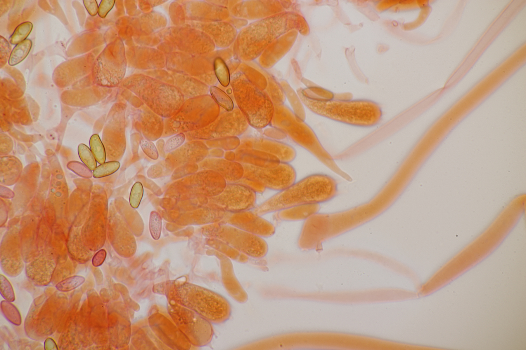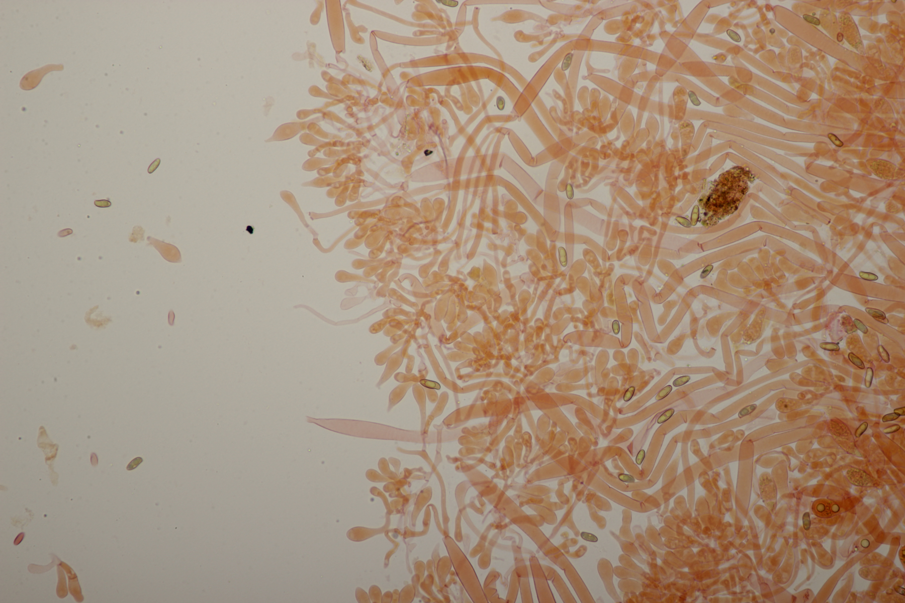 3. Wenn man sich beim Erstellen der Mikropräparate ziemlich nah mit der Nase an den Satansröhrling geklebt hat und dabei den Geruch einer vollen Babywindel wahrnimmt, ist man froh, wenn man anschließend diesen Pilz hier unters Mikro legt. Der Iodgeruch wirkt da direkt angenehm und klinisch rein. Was nicht ganz so angenehm war: Ich hatte mir fürs Mikro eine Hälfte des Pilzes mitgenommen, den Karl schon am Vortag für sein Foto zerschnitten hat. Da war dann bei der Ankunft zu Hause schon einiges an Leben drin erwacht...