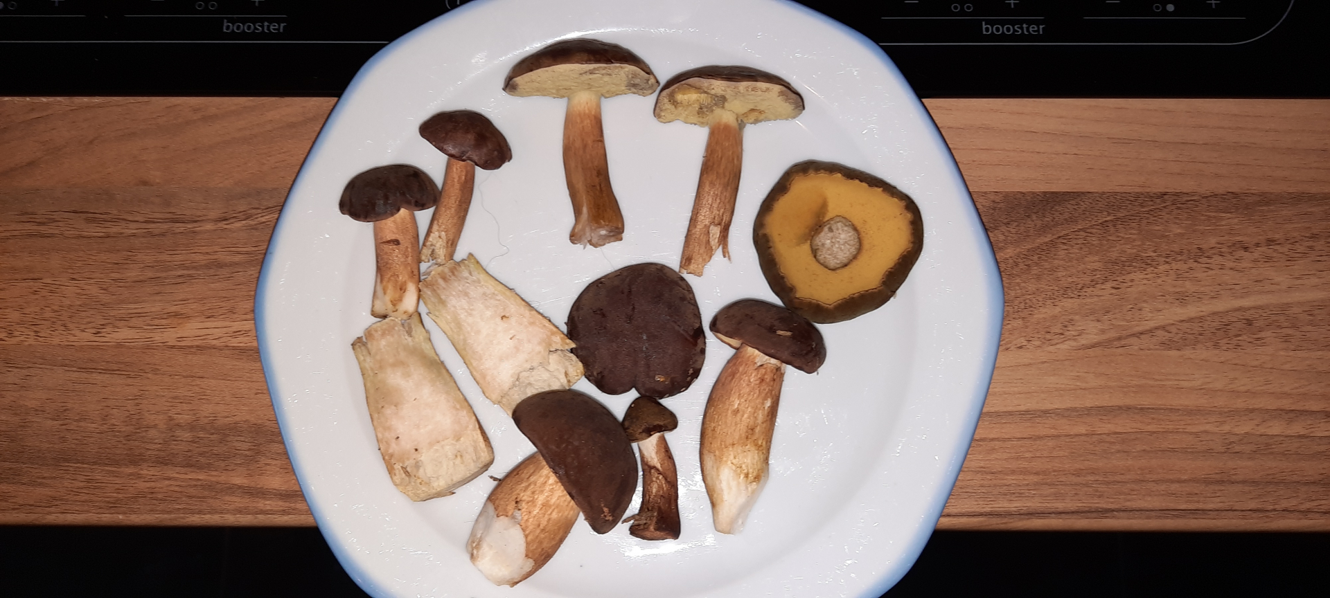 Ich meine sogar das ein Steinpilz dabei ist. Aber die meisten davon sind tatsächlich Maronen.
