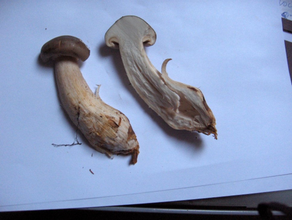 Hutfarbe Braun, Hutoberfläche trocken und glatt, Hutdurchmesser 3,5cm, Huttiefe 2cm, Hutrand stark nach unten gezogen.
