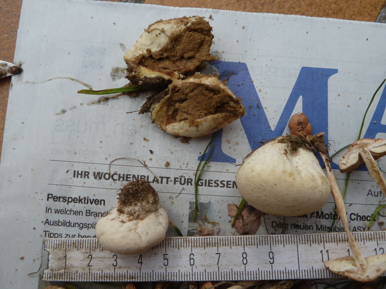 Ende Juni bekam ich einen Anruf von einer Mitarbeiterin der Stadt Dillenburg, die voller Sorge über Pilzfunde auf dem Kita-Spielplatz war. Nach kurzer Belehrung (sinngemäß: ich bin zwar kein PSV, schaue mir das aber gerne an) sind wir so verblieben, dass ich benachrichtigt werde, sobald es wieder Funde gibt.