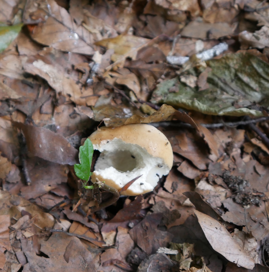 Ein übergroßer Staubbeutel. War mal ein Riesenbovist. Auch diese Pilze kommen zuverlässig immer wieder am gleichem Platz.