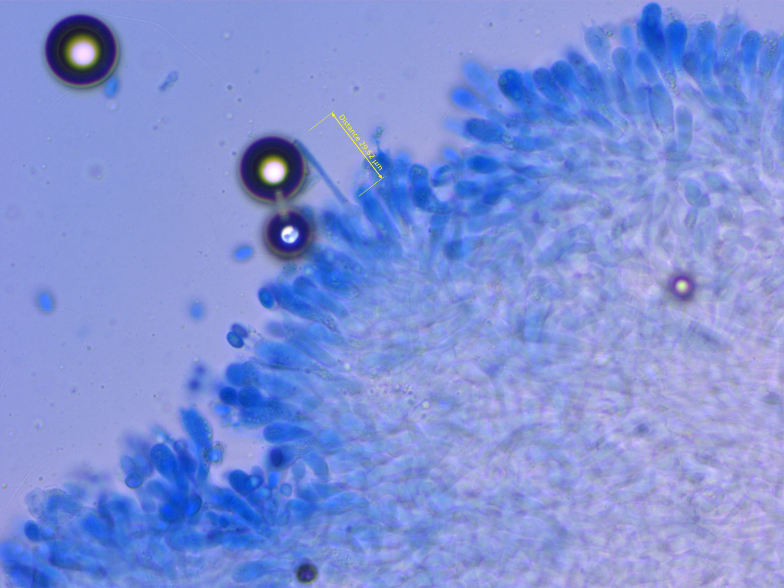 Die Cheilozystiden spielten Verstecken, in Baumwollblau finde ich Melanoleuca-Cheilos meistens am besten.