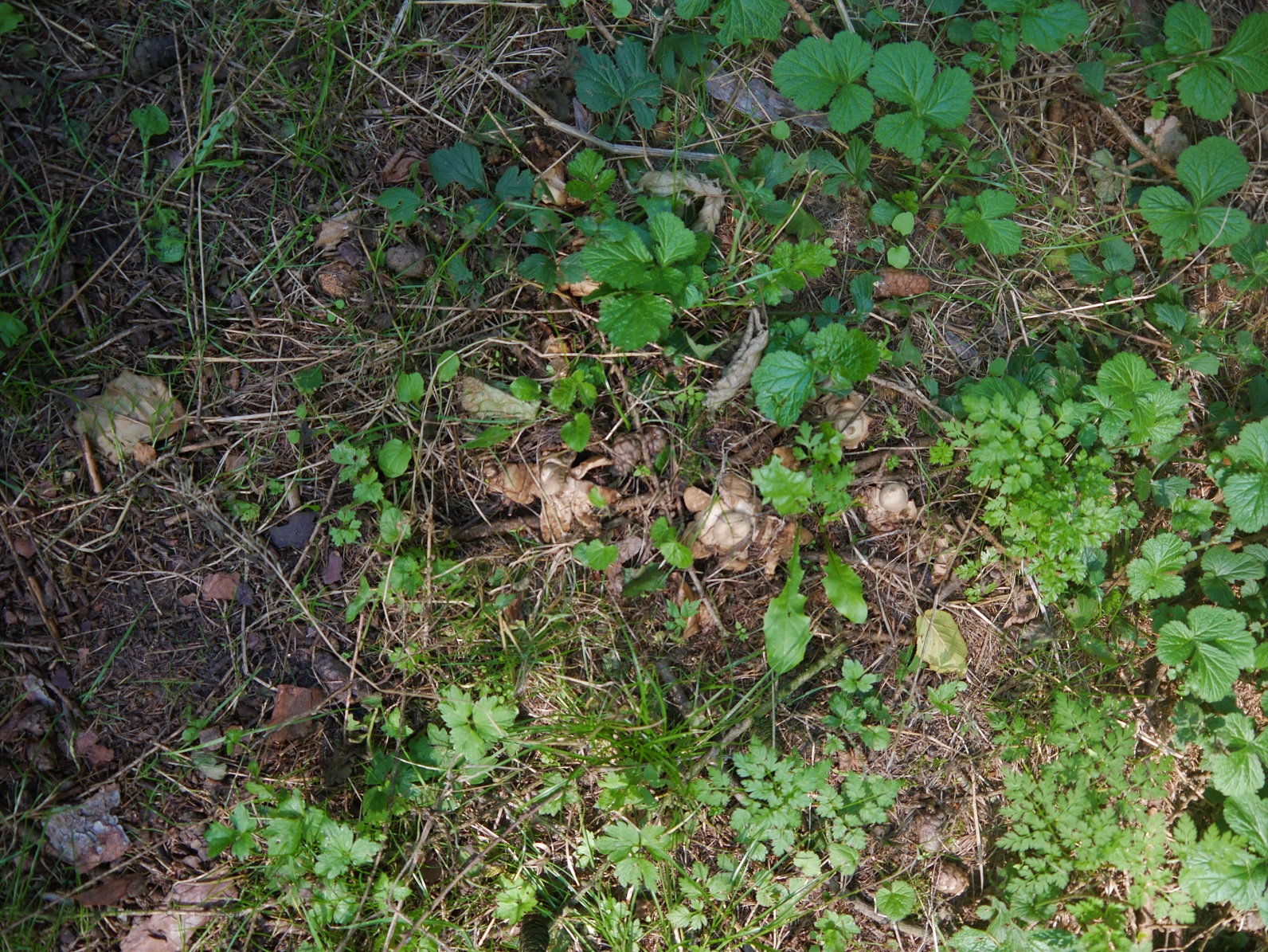 Übermäßig viele Leute waren nicht im Wald, ich habe nur 1Paar gesehen die ebenfalls sammelten. Manche Wege lief ich 2mal ab. Schließlich bin ich Richtung Waldhütte, da stehen viele Haselnussbüsche . Die Nüsse verachte ich nicht und deshalb sah ich die Erdsterne. Circa 8 Stück zählte ich, teilweise platt getreten, aber die waren im Gras auch nur schlecht zu sehen.