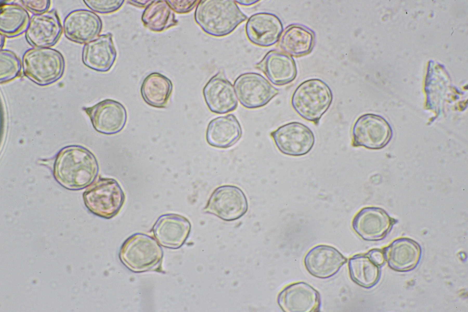 Eigentlich scheint mir auch vieles zu passen, nur zwei Dinge machen mich etwas unsicher: Die Sporen, die ich von ihm im Netz gefunden habe, scheinen mir insgesamt eckiger als meine. Dann habe ich Zellen gefunden, die ich als Cheilozystiden ansehen würde. E. sericeoides dürfte sie aber nicht haben. Oder sind die Strukturen auf dem Foto etwas anderes?