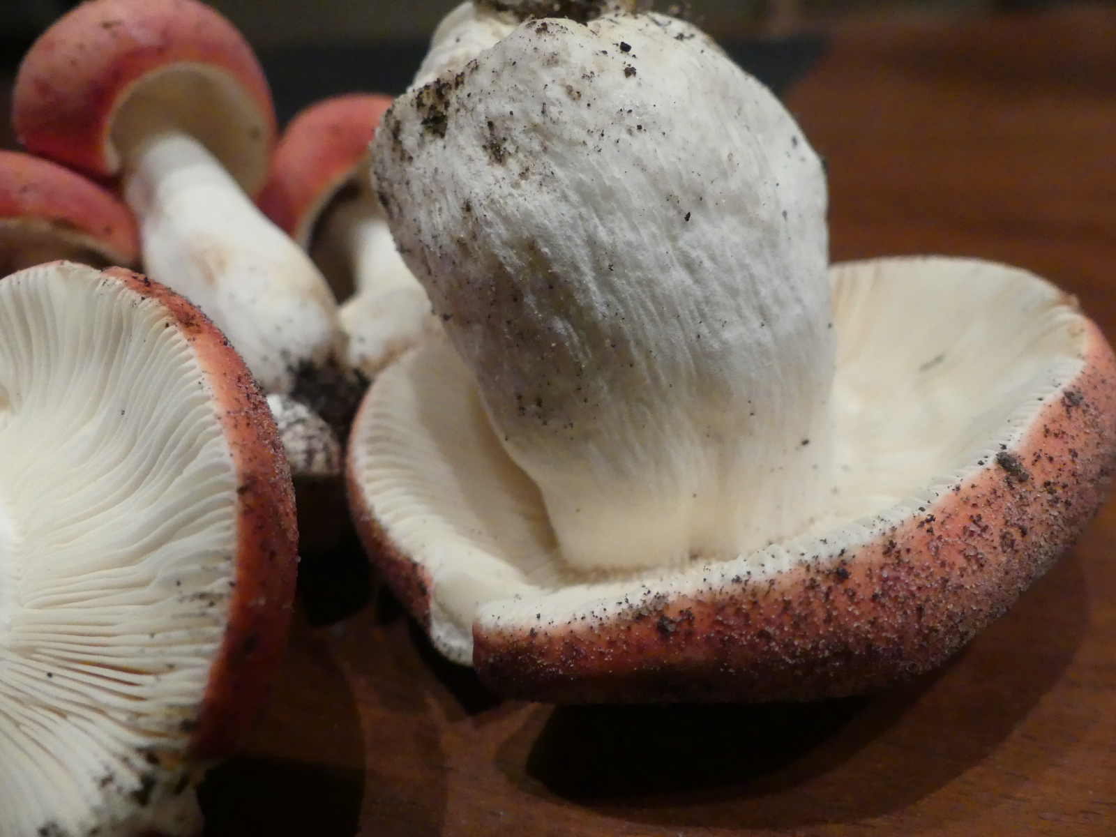 Diese leuchtendroten Exemplare habe ich heute in einem Eichen-Buchen-Mischwald gefunden, Lehmboden auf Buntsandstein, Weinbauklima, ca. 340 Meter über NN. Eigentlich mache ich um rote Täublinge einen Bogen, nachdem die Kostproben der Vergangenheit meistens scharf oder bitter waren.