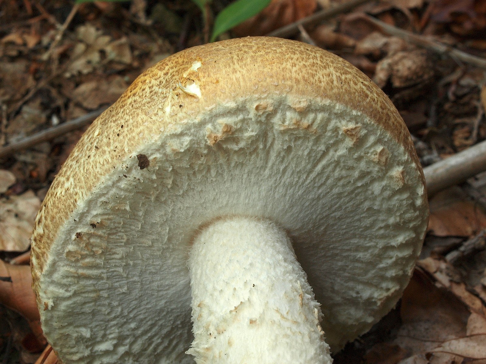der "Ring" ist mir erst auf dem Foto augefallen und ich wollte das Bild erst weglassen, weil auch die Hutoberfläche nicht mehr typisch ist. Andererseits dachte ich es kann nicht schaden, mal ein bei Trockenheit gewachsenes Alterstadium zu zeigen.