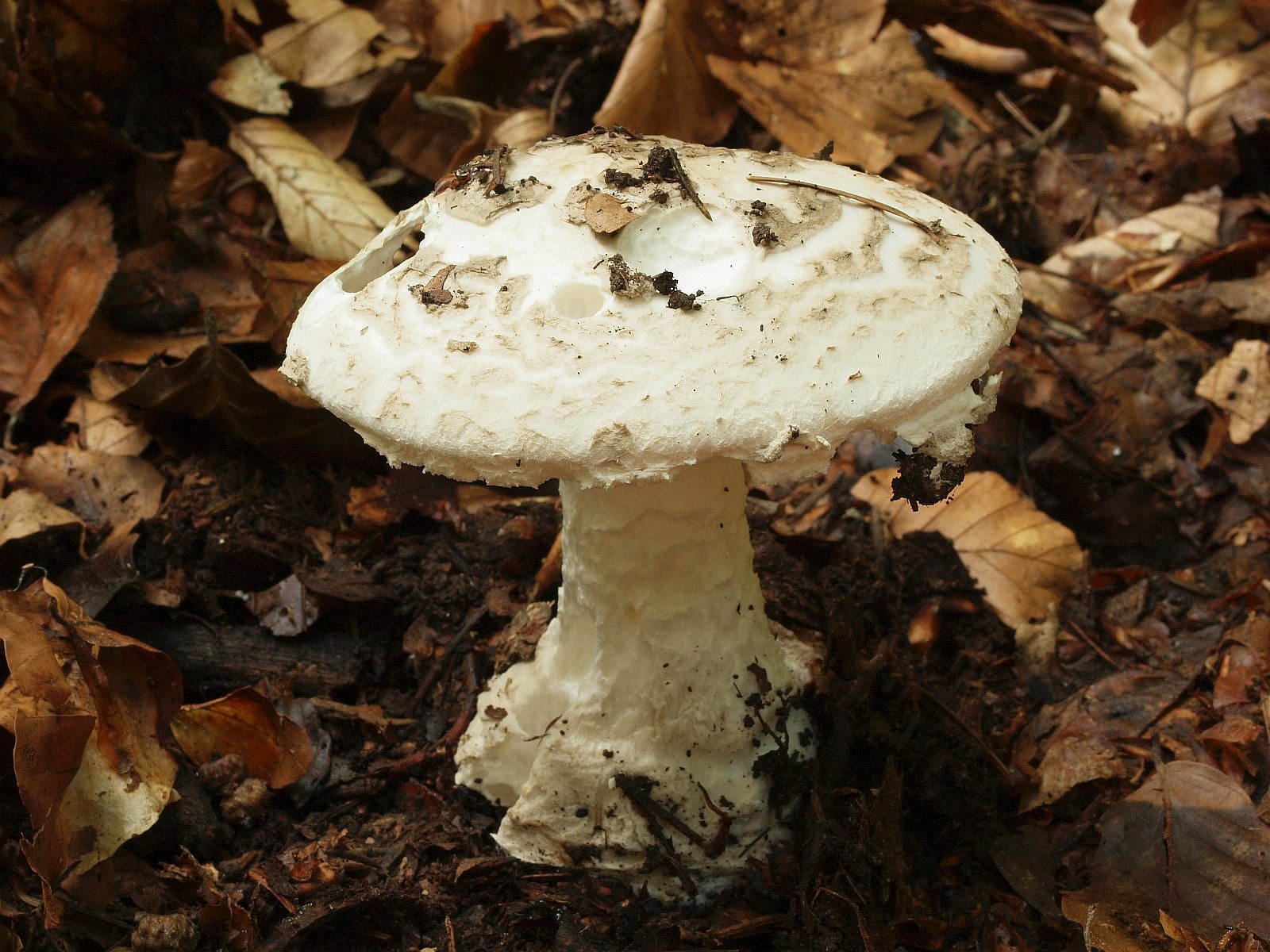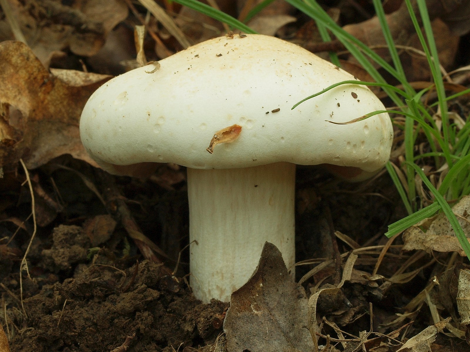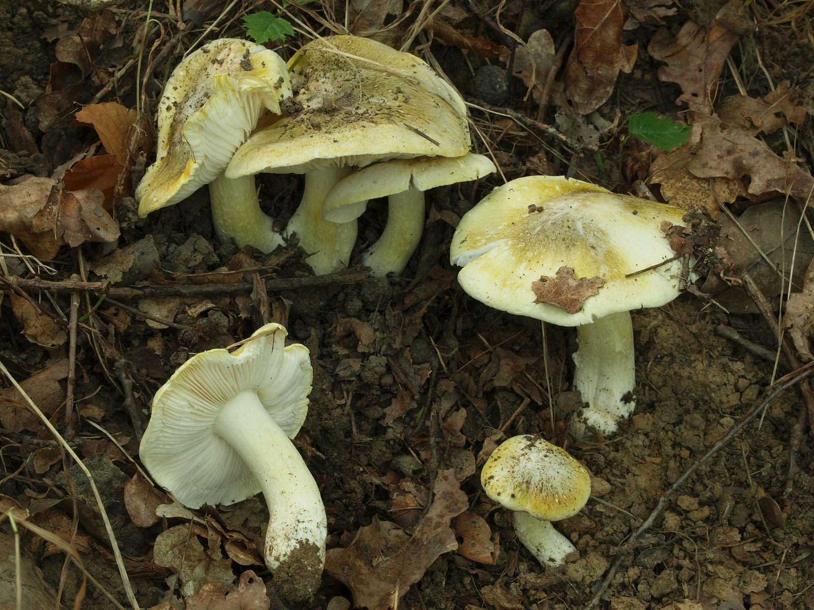 Einer der weißen Ritterlinge, die nicht immer leicht zu unterscheiden sind und deren Beschreibung der Trennmerkmale mir schwer fällt. Ich finde den Geruch der unverletzten Fruchtkörper grauenhaft.