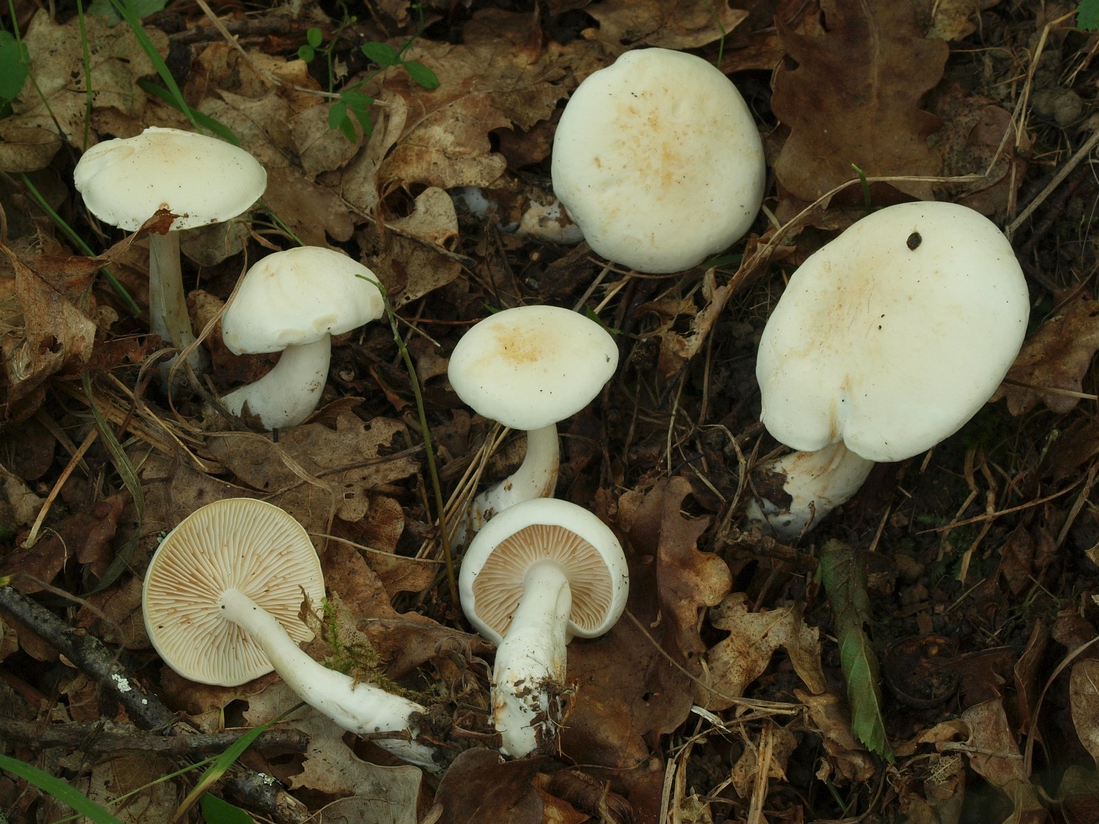 Die weißen Stinker im Eichen-Hainbuchenwald ohne Grautöne in der Mitte würd ich für T. album halten. T. lascivum hat's bei uns in den Buchenwäldern auf den Jungmoränen und die bekommen immer so einen Grautouch hutmittig.