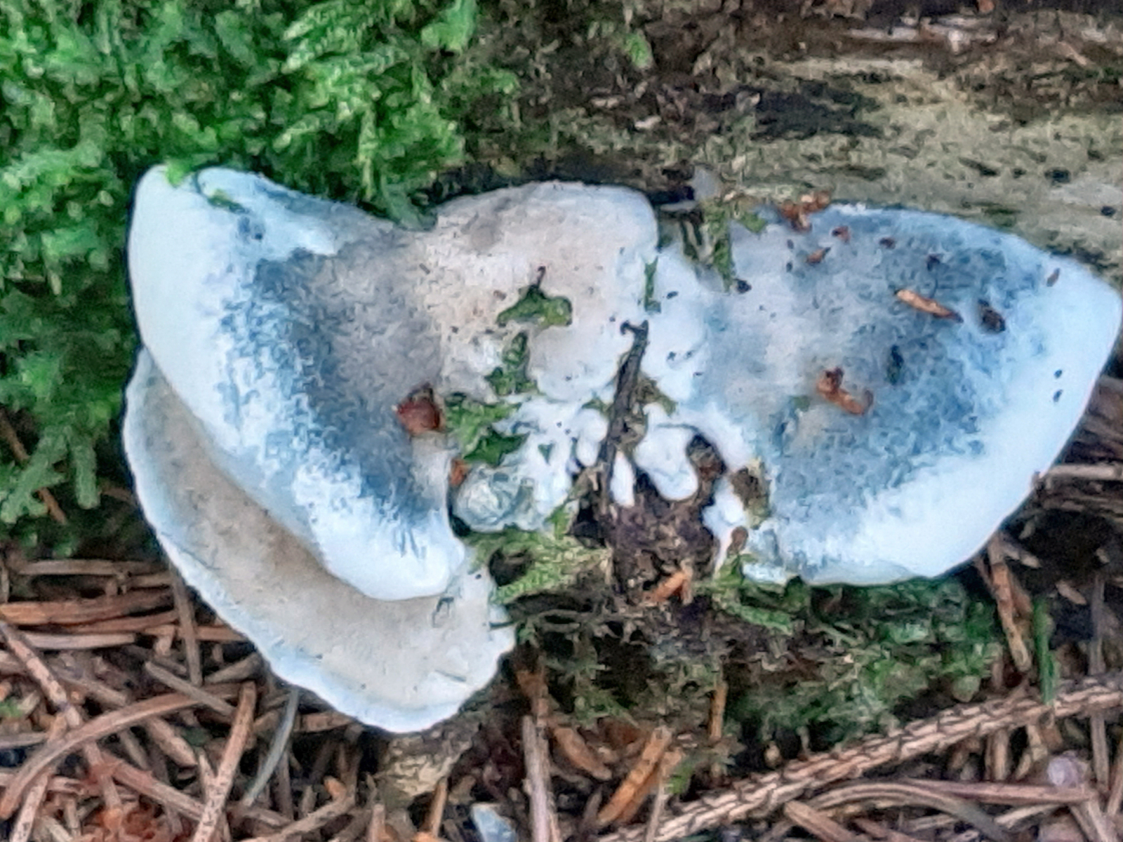 Ein auffälliger und schöner Fund im Fichtenwald: Blauender Saftporling / Spongiporus caesius: