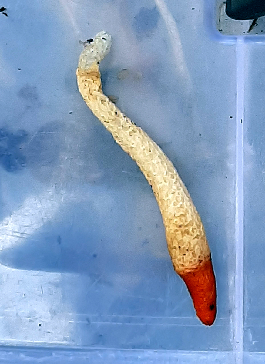 Auch lange nicht mehr gefunden, die Hundsrute / Mutinus caninus. (Der PSH blieb übrigens vollständig, keine Sorge!)