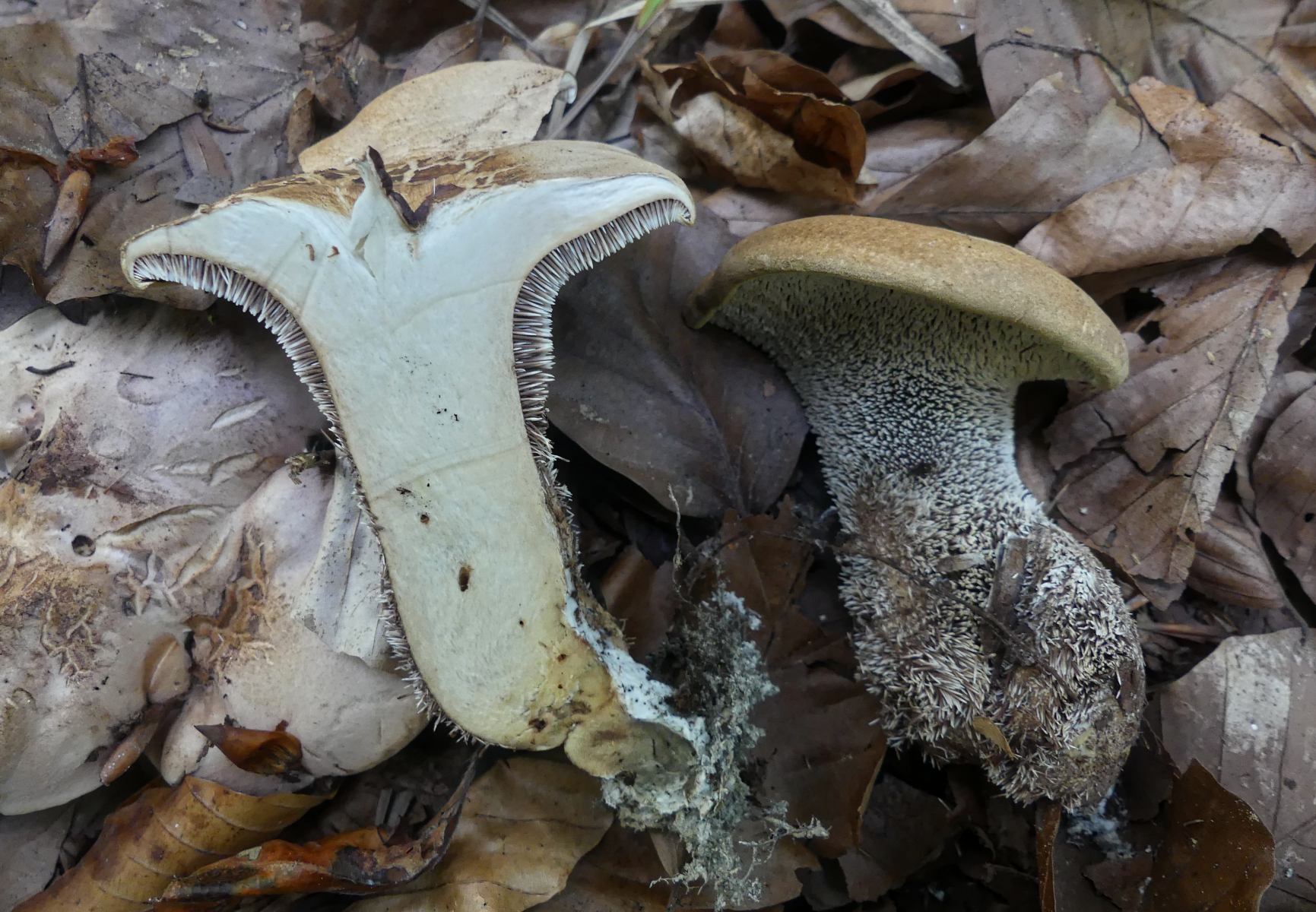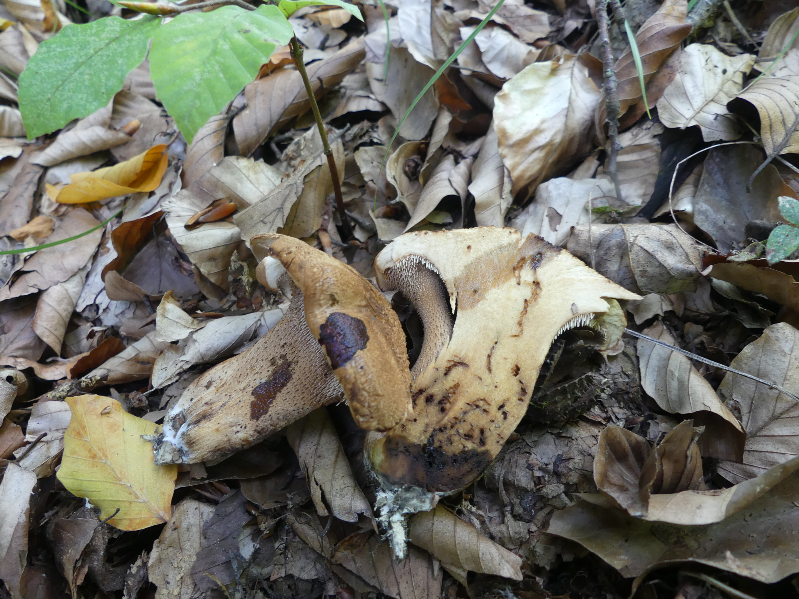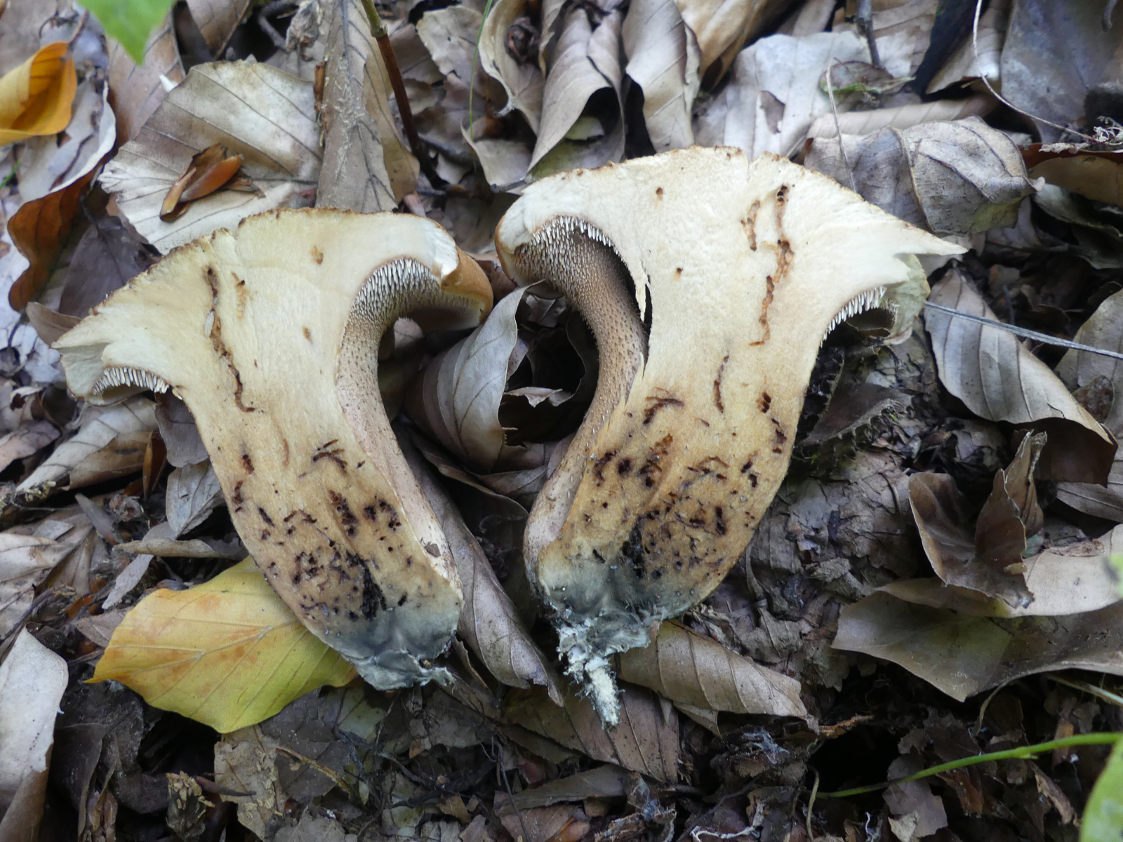 heute fand ich wieder neue Stachelinge. Ich denke hier Richtung Sarcodon aber weiter komme ich leider nicht (mit dem mir vorliegendem Bestimmungsschlüssel komme ich nicht wirklich klar). Ich fand die Pilze an zwei Stellen, jeweils direkt neben den unbekannten anderen Sarcodon zu denen ja seit einem Jahr eine Bestimmungsanfrage läuft. Diese Neuen hier waren aber eindeutig anders.