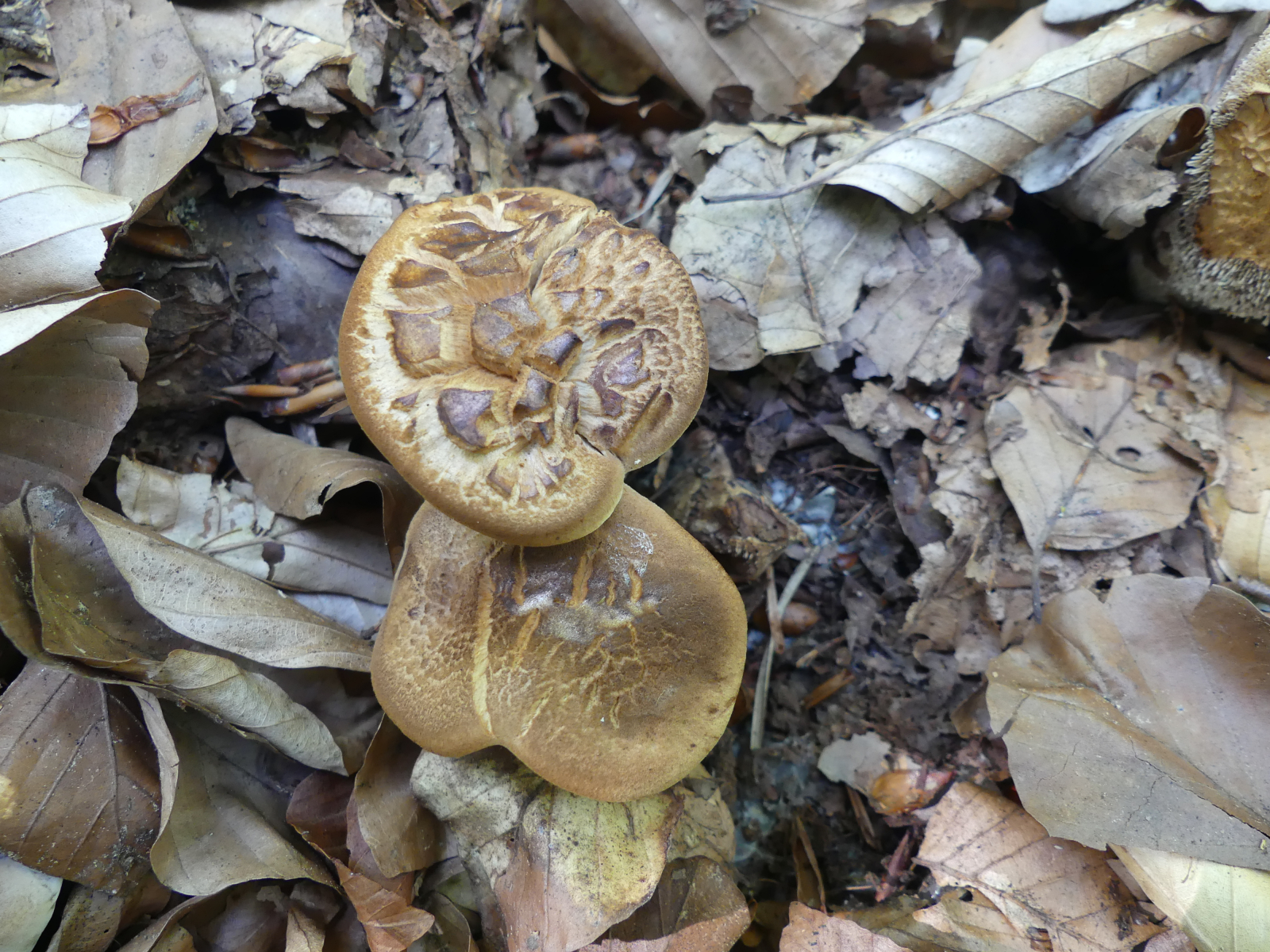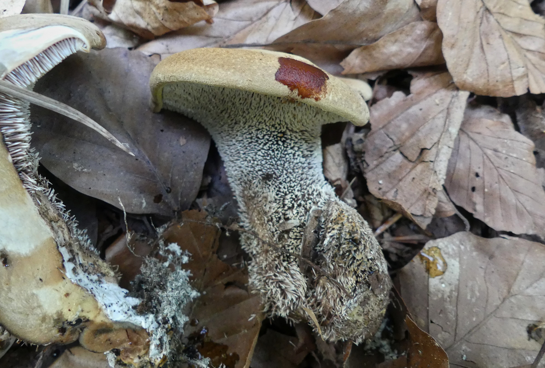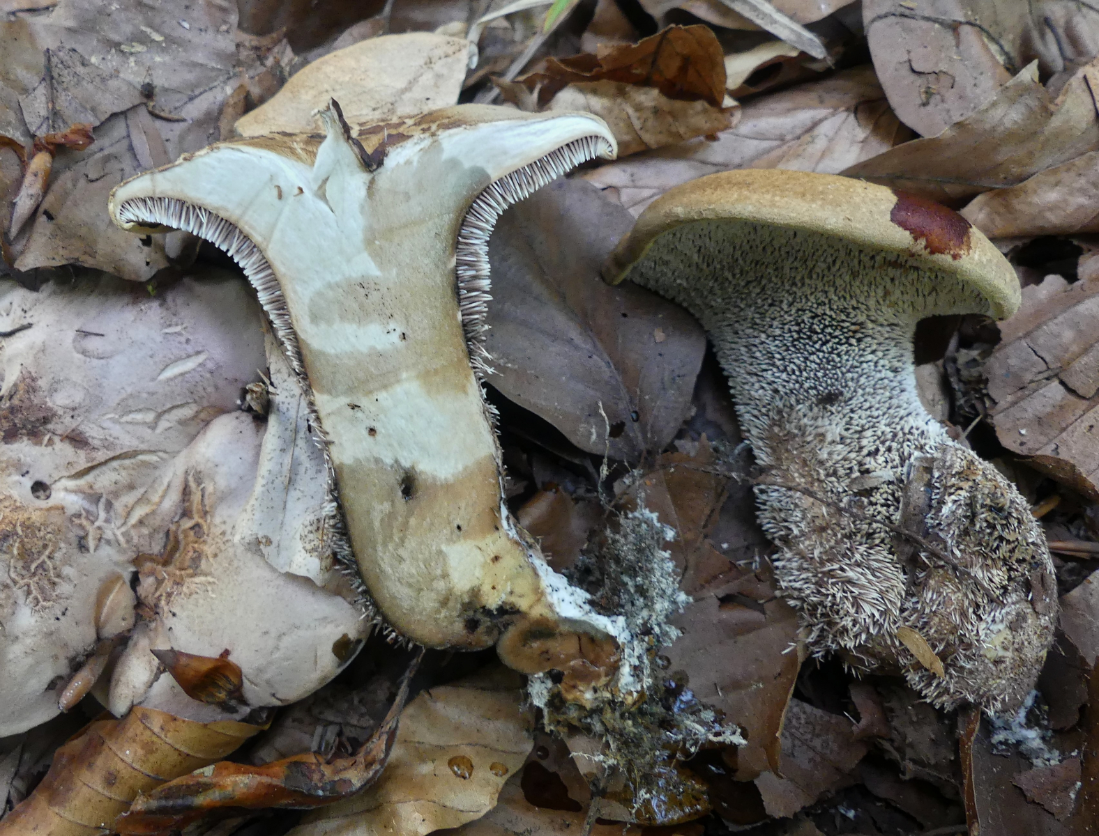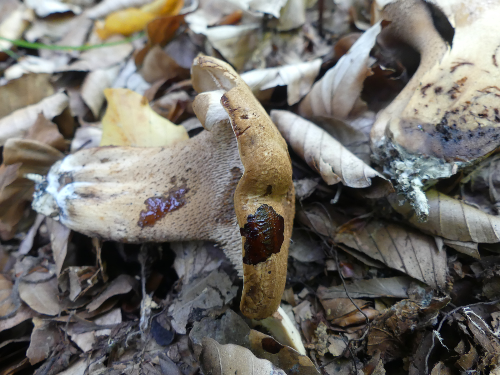 heute fand ich wieder neue Stachelinge. Ich denke hier Richtung Sarcodon aber weiter komme ich leider nicht (mit dem mir vorliegendem Bestimmungsschlüssel komme ich nicht wirklich klar). Ich fand die Pilze an zwei Stellen, jeweils direkt neben den unbekannten anderen Sarcodon zu denen ja seit einem Jahr eine Bestimmungsanfrage läuft. Diese Neuen hier waren aber eindeutig anders.