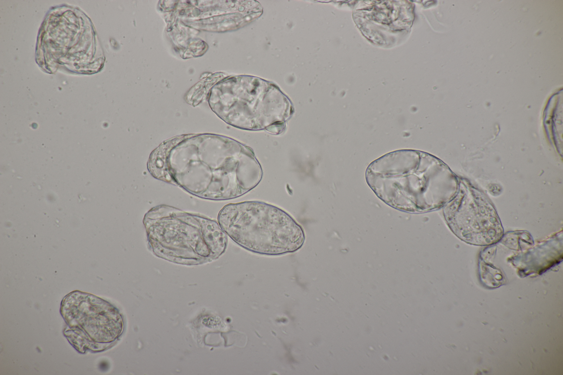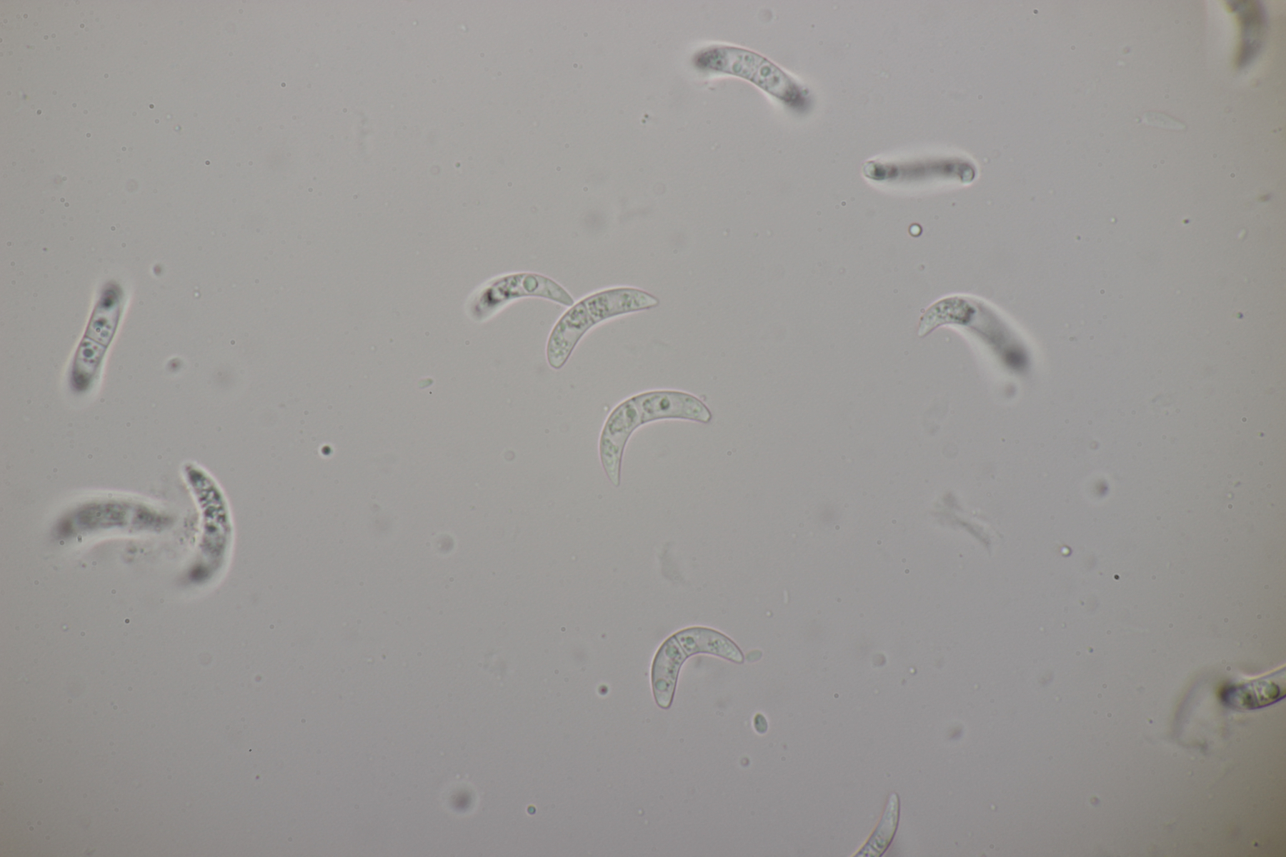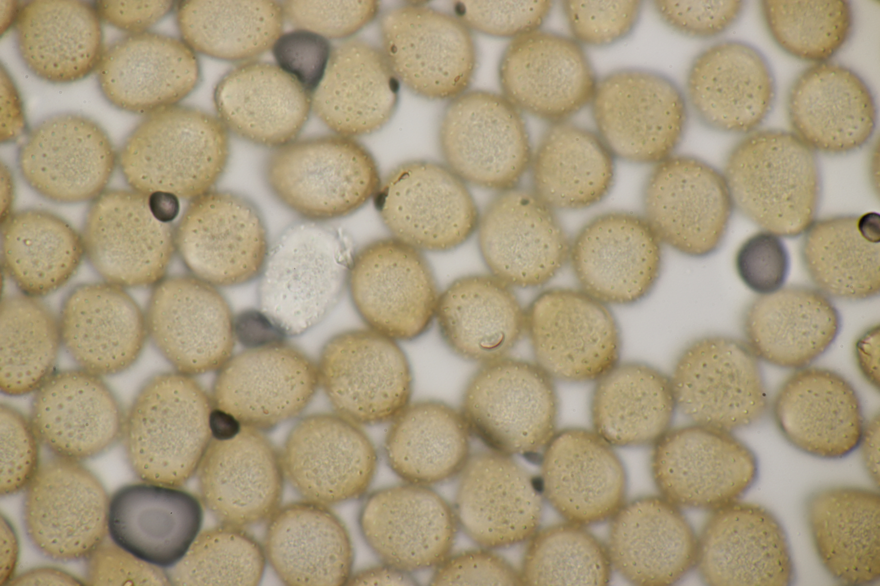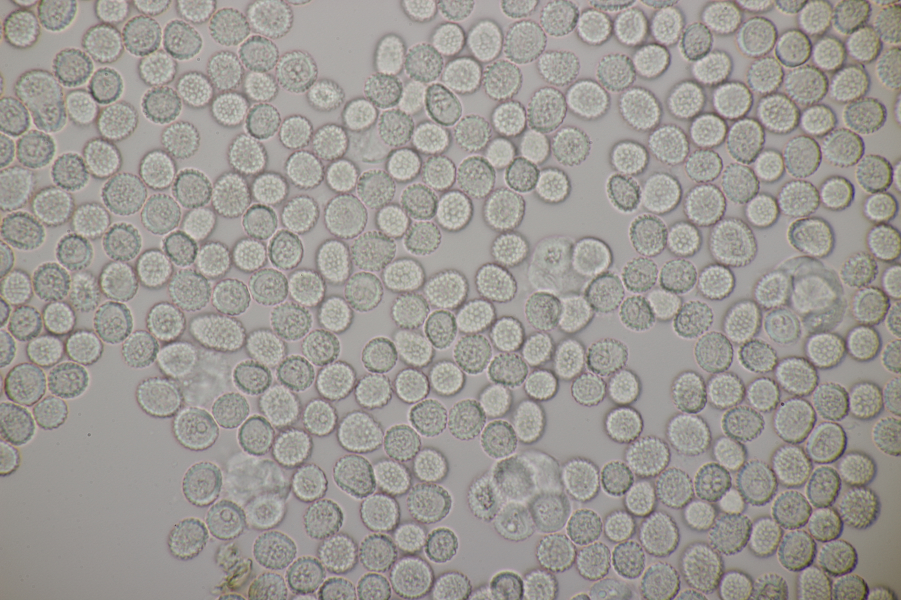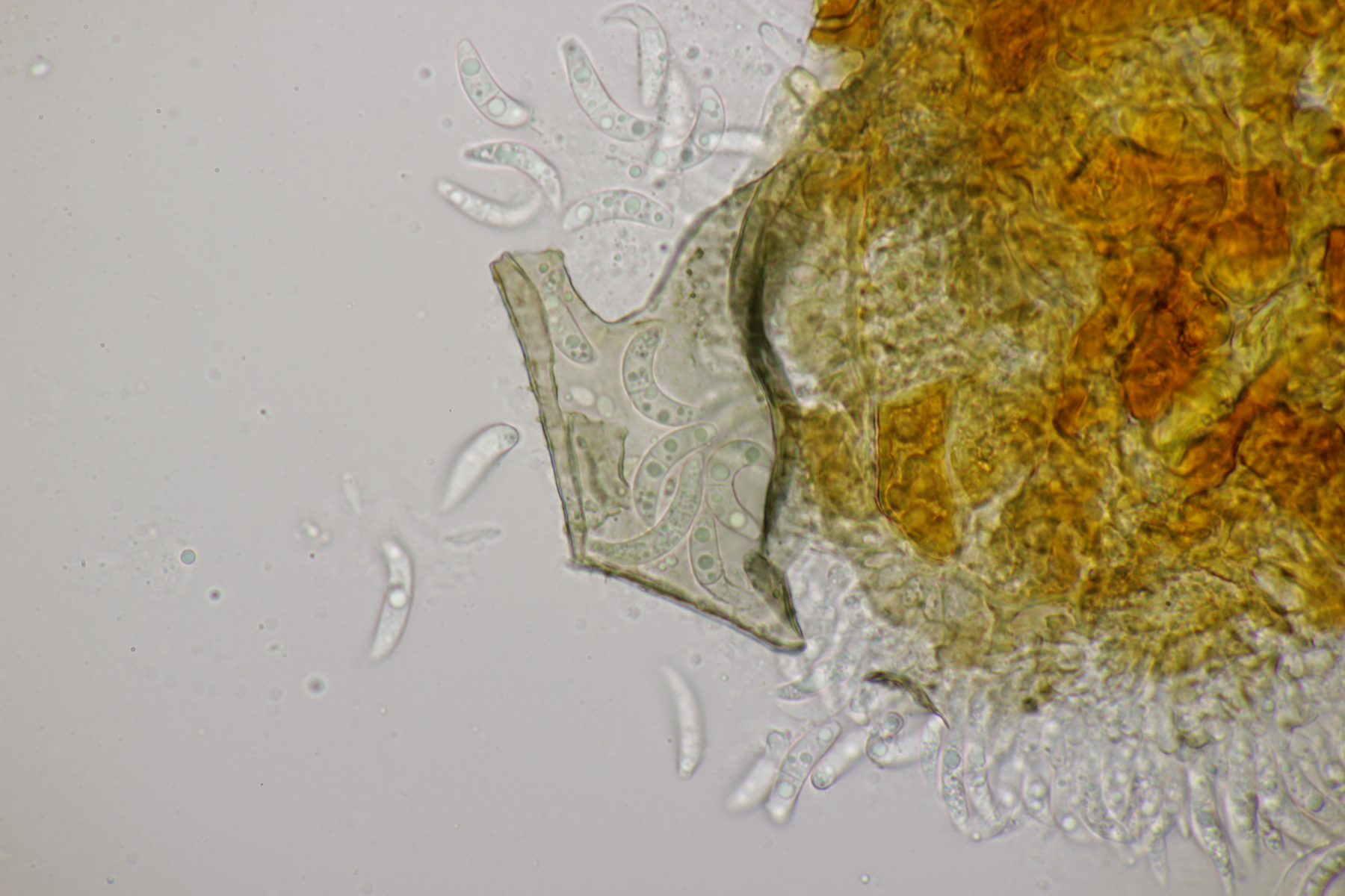 3. Ein Rötling auf der Wiese, der nächste Mykorrhiza-Partner mindestens 10 m entfernt (Fagus und Prunus). Geruch frisch mehlartig, zu Hause dann eher geruchslos. Basidien 4-sporig mit Basalschnalle, das Pigment der Huthaut würde ich für intrazellulär halten, keine Cheilo- und Caulozystiden gefunden. Sporen (10,6+-0,6) x (7,6+-0,4) µm, Q=1.4+-0.1 bzw. (9,4-12,0) x (6,7-8,3) µm, Q=1,2-1,6. Ich hatte auf FB schon mit Karls Hilfe etwas geschlüsselt, bin aber nie bei einer vernünftigen Option gelandet.