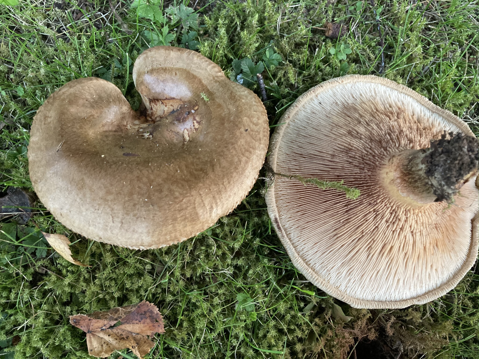 Wuchs unter alten Birken und Buchen am Rande eines Friedhofgeländes. Hutdurchmesser des größten, ausgewachsenen Frkp. 12cm.