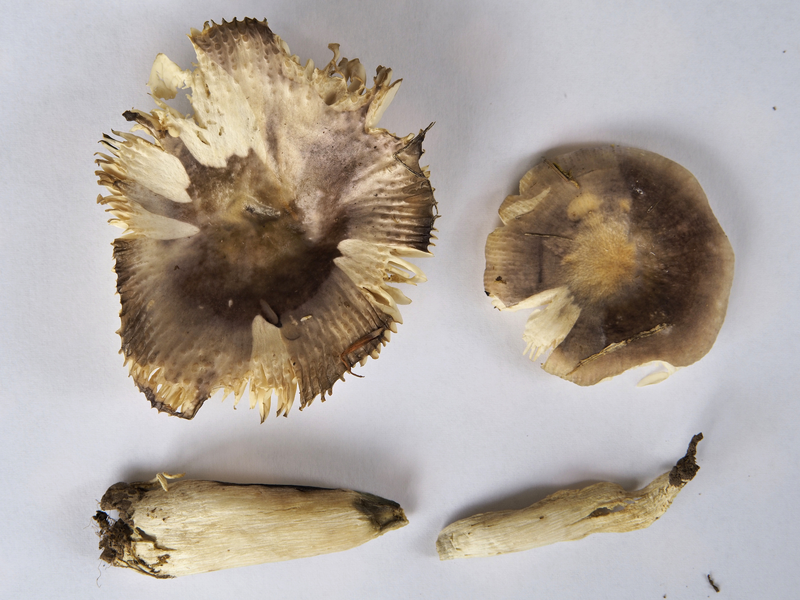 wieso "in Zukunft"? Genau das hast du doch hier gemacht. Du hast die Sporen mikroskopiert und den Stiel über Nacht liegen lassen. Ob die Verfärbung grau oder gelbbraun ist, weißt du besser als wir, da du das Original vor dir hast und wir nur ein Foto auf dem Monitor. Und ich habe nicht den Eindruck, dass im SARNARI das Taxon R. violacea unklar ist, sondern es ist klar definiert: ein Pilz mit den typischen Merkmalen der pelargonia-Gruppe, der beim Eintrocknen gelb und nicht so wie die anderen Arten der Gruppe grau wird. Das interpretiere ich so, dass wenn du einen aus der pelargonia-Gruppe findest, der gelb wird, bist du sozusagen schon mit dem Bestimmen fertig.
