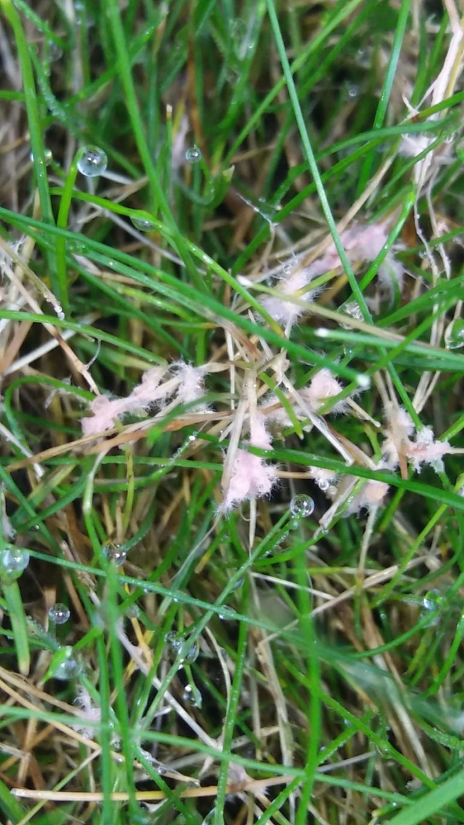Nun ist die Frage: ist das ein Pilz, der einfach die Gunst der Stunde nutzt, und sich das abgestorbene Gras einverleibt oder ist er die Ursache für das Absterben und die Gelbfärbung?