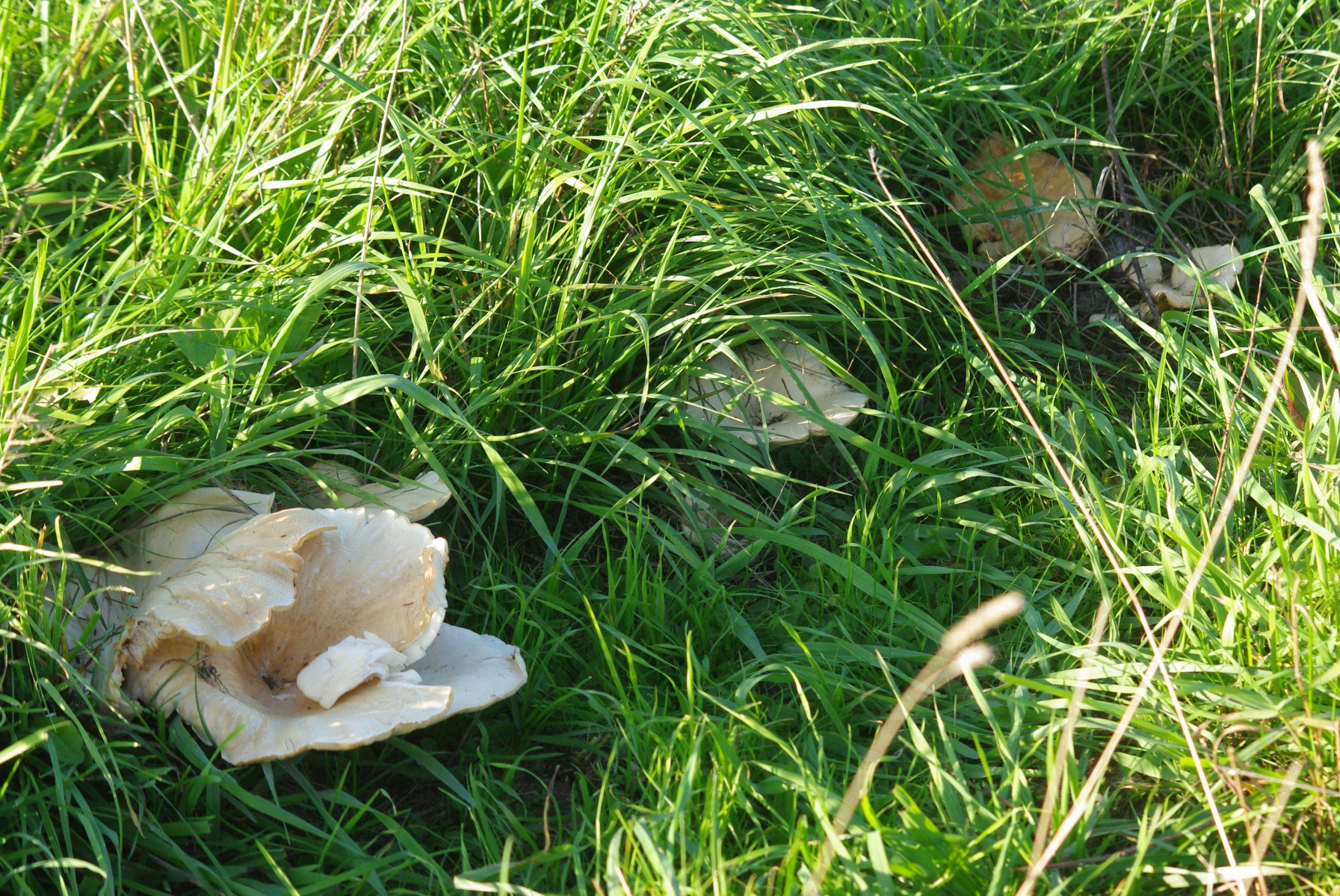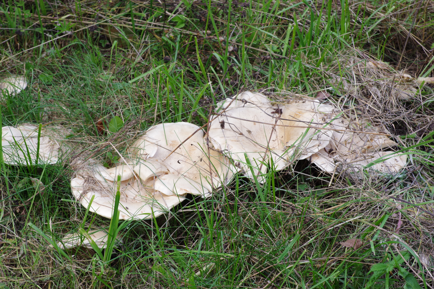 der große Pilz vom letzten Bild hat noch ein paar Zentimeter zugelegt (das dürfte mein bisheriger Rekord für diese Art sein). Ansonsten gehen die Hundertschaften in drei Hexenringen der Zersetzung zu.