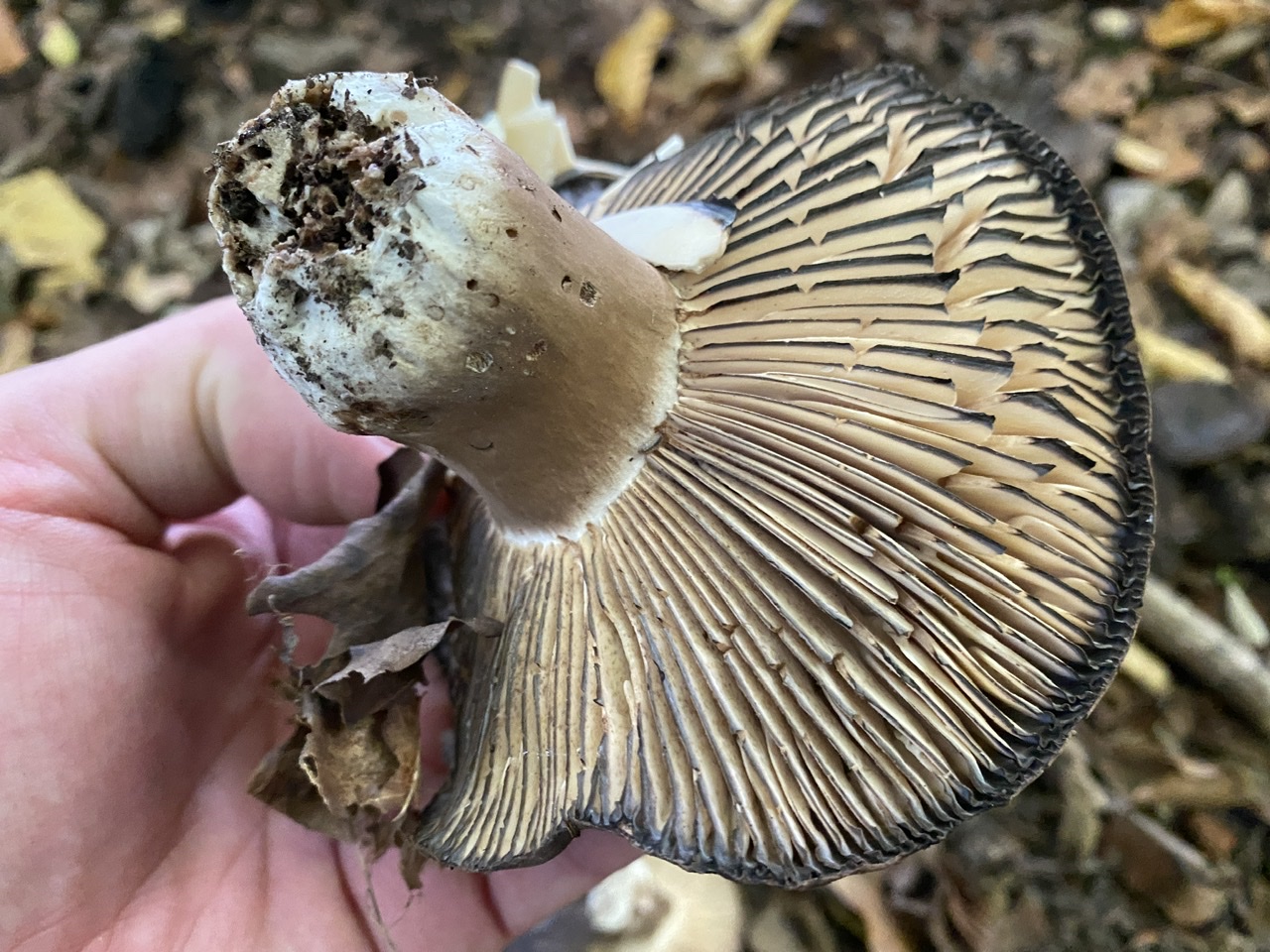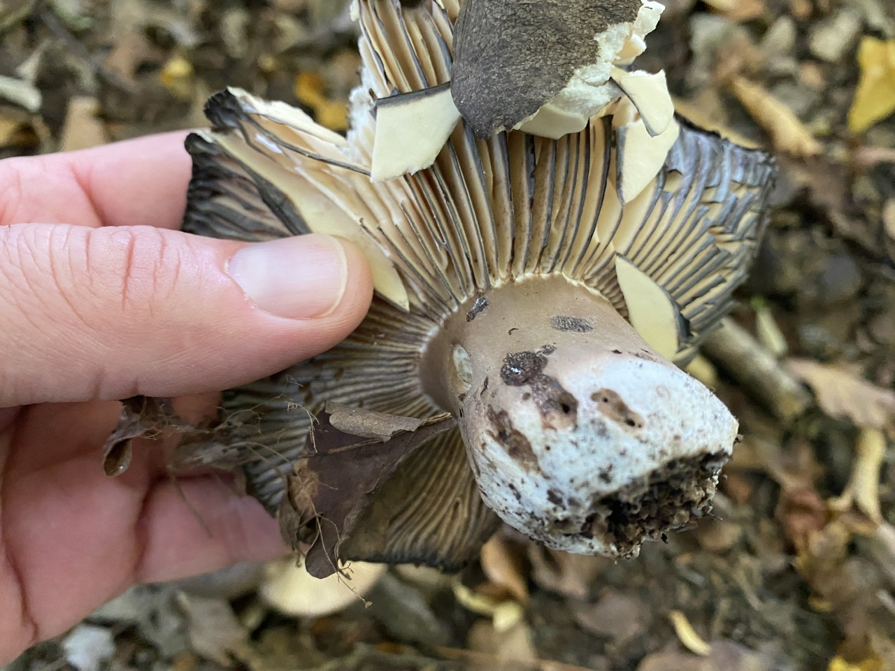 Ja und die Lamellenschneiden sind deutlich schwarz(dunkel). Habe ich bei R. anthracina noch nie gesehen, auch passt der Gesamteindruck nicht. Oft kommt der Kohlentäubling mit grünen und/oder bräunlichen Farben in der Huthaut daher. Phillip liegt richtig, denke ich.