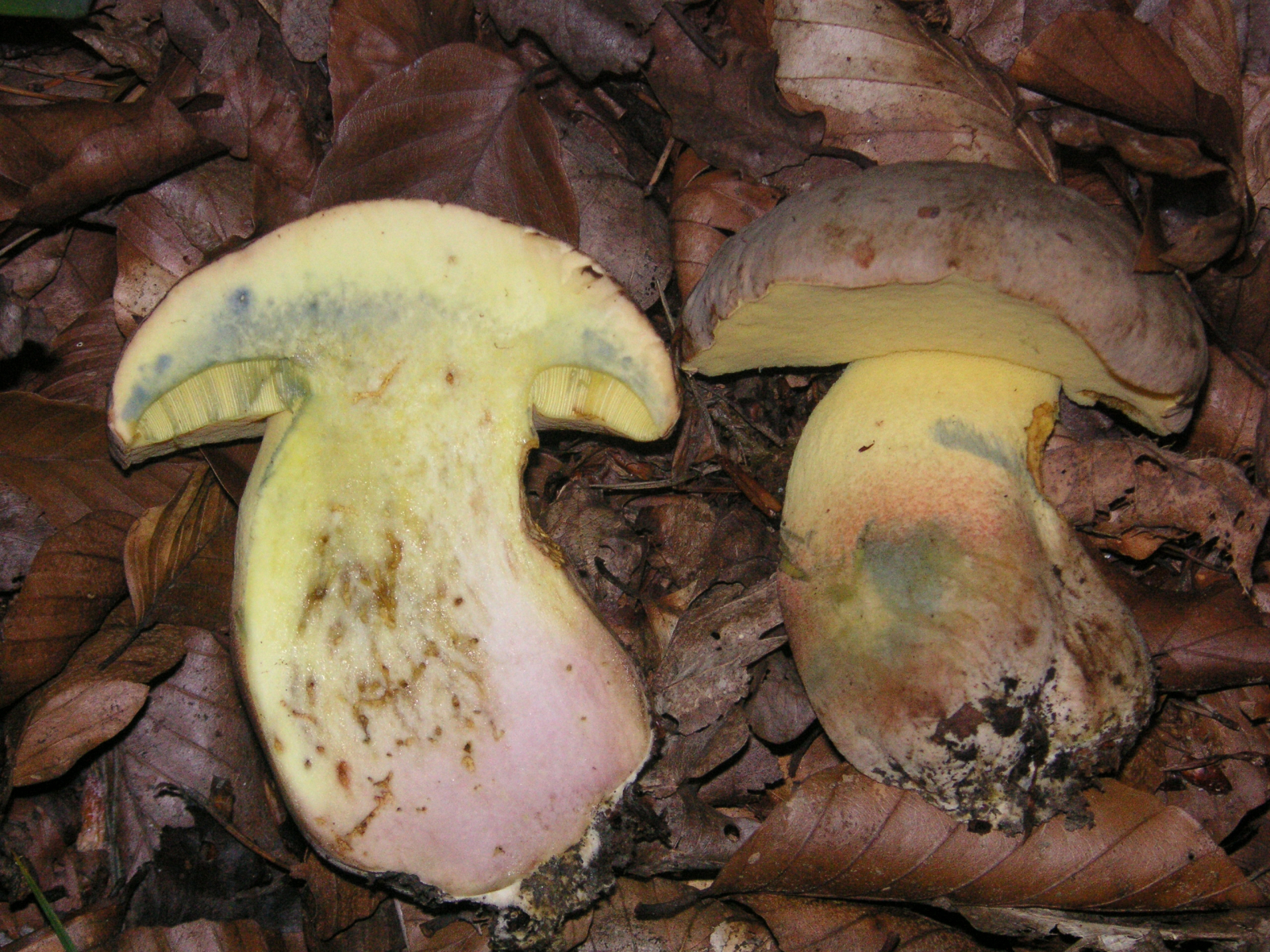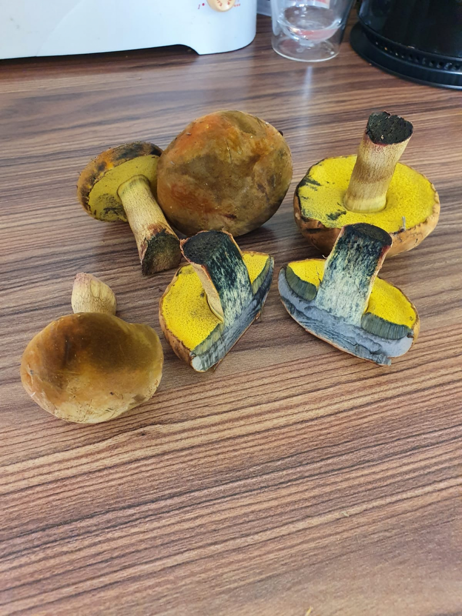 Heute hat mir ein Bekannter aus Teltow bei Berlin einen interessanten Röhrlingsfund als Foto geschickt und mich gefragt, worum es sich handelt. Ich dachte zuerst an den schwarzblauenden Röhrling, so richtig passen wollte es jedoch nicht, insbesondere wegen des Stielnetzes. Bei Facebook wird hierüber aktuell seit Stunden heiß diskutiert. Es gibt sogar bei den internationalen Experten der Gruppe „European Boletes“ die Meinung, dass es sich sogar um eine Neuentdeckung handeln könnte. Andere Ideen waren Cyanoboletus flavosanguineus, der wohl in Deutschland noch nie gefunden wurde. Die Pilze werden in Teltow noch sorgsam aufbewahrt. Es wird noch jemand gesucht, der das mal - auch mikroskopisch - genauer untersuchen könnte. Die Pilze können verschickt werden. Hat jemand eine Meinung, worum es sich handeln könnte und/oder kennt jemanden, der sich für eine genauere Untersuchung bereiterklären würde?