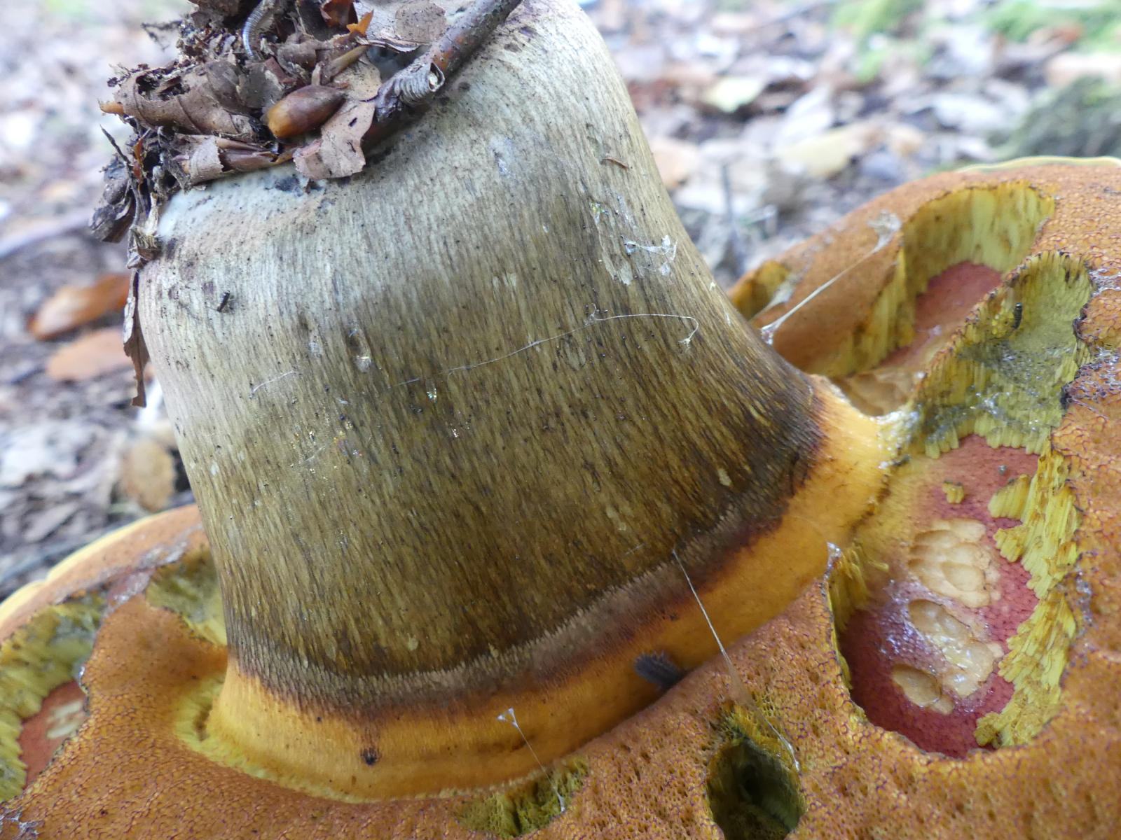 naja, das kurze Netz könnte man jetzt von "eigentlich alles" aber auch guten Gewissens ausnehmen. Den roten Röhrenboden haben wohl auch beide Arten und das Exemplar hier hat viel Rot in der Stielbasis. Der Hut hat wenige Rottöne, das sehe ich auch, aber so abwegig fand ich meinen Gedanken mit Suillellus mendax nun auch wieder nicht :gkopfkratz: .