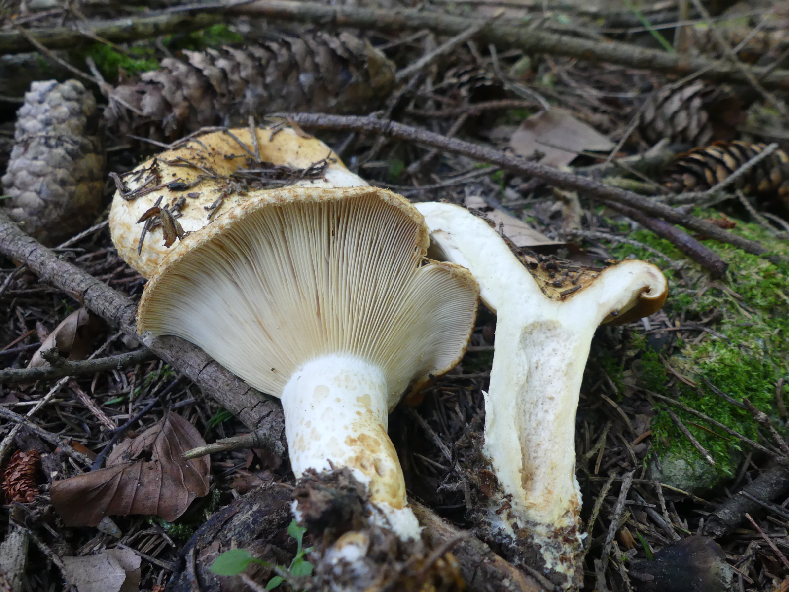 Hutdurchmesser des durchschnittenen Pilzes ca. 6 cm, Pilzhöhe ebenso.