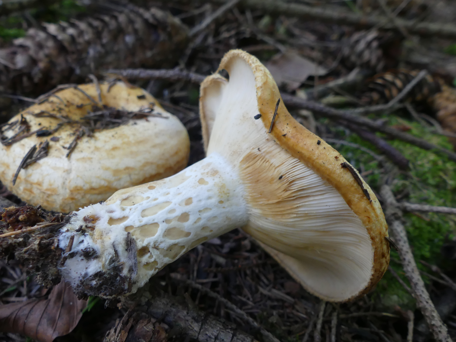 Hutdurchmesser des durchschnittenen Pilzes ca. 6 cm, Pilzhöhe ebenso.