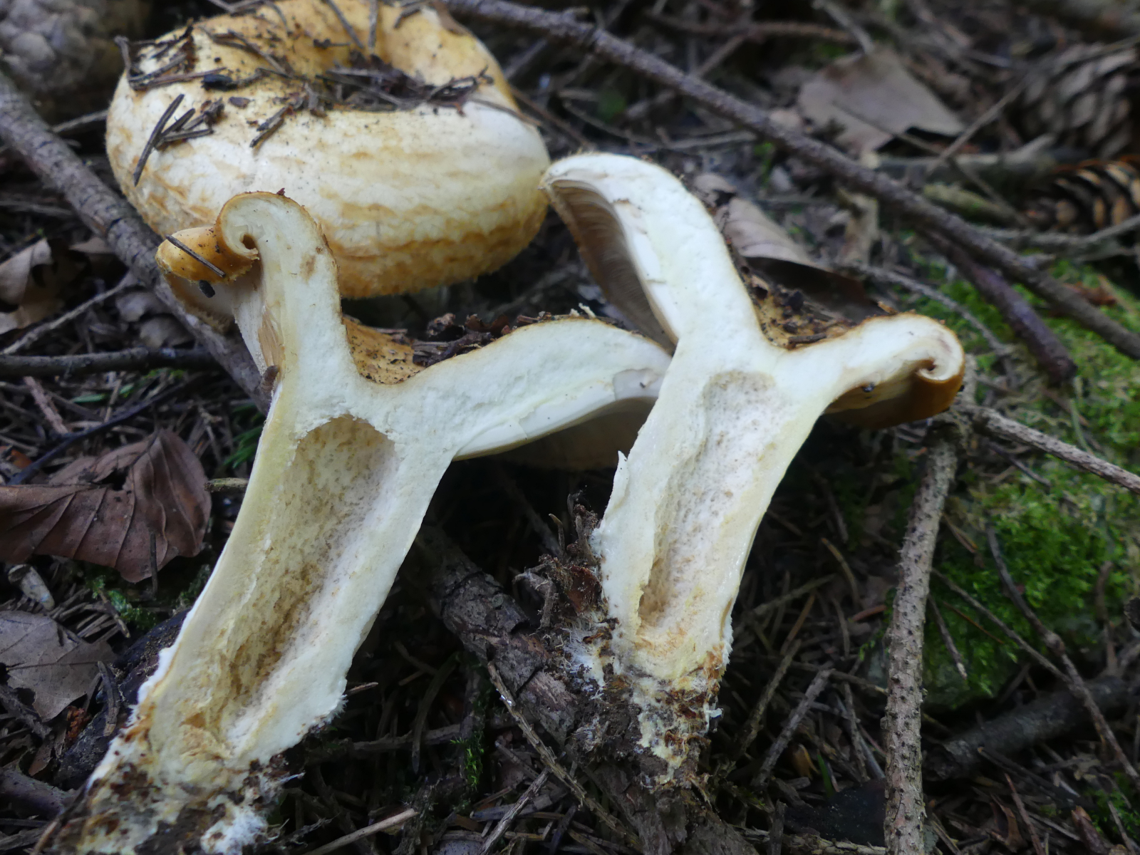 • ... aber nur, wenn sich die Schnittstelle gelb verfärbt hätte. L. citriolens oder L. intermedius kommen auch noch in Betracht, falls da irgendwo eine Tanne rumstand.