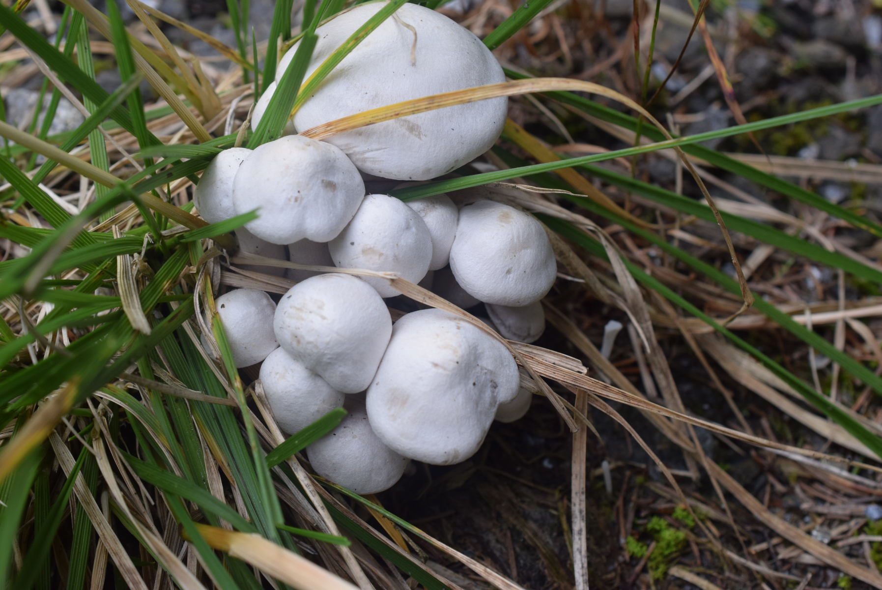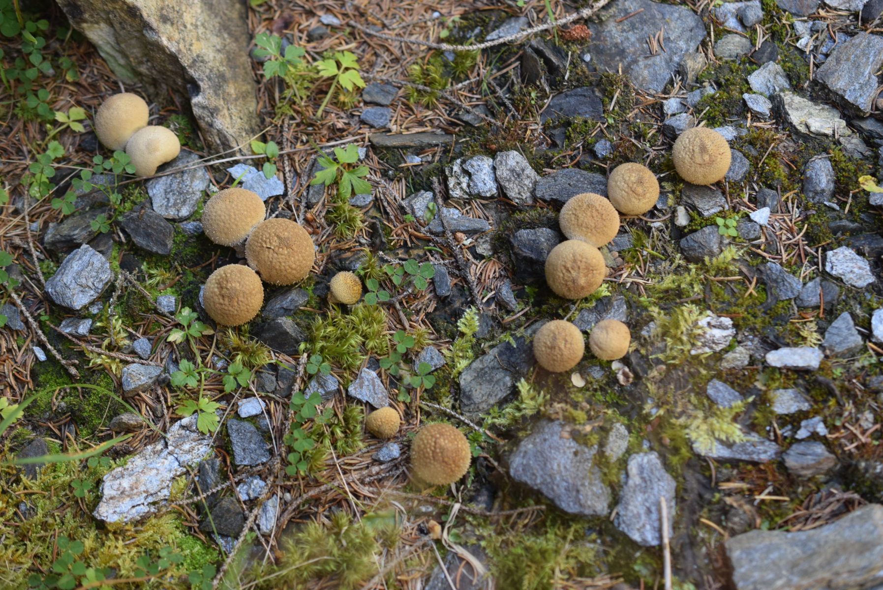 4. Lycoperdon , Bovista ? jung und alt neben Bergstraße gefunden ( junge Fichte in nähe )