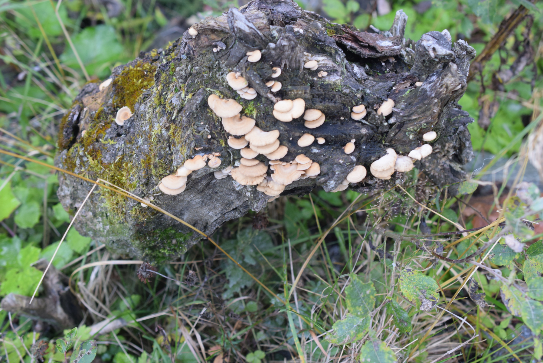 3. Mycena sp ( haematopus ? ). an gleiche tote ( Laub ) stamm zusammen mit Panellus stipticus gefunden