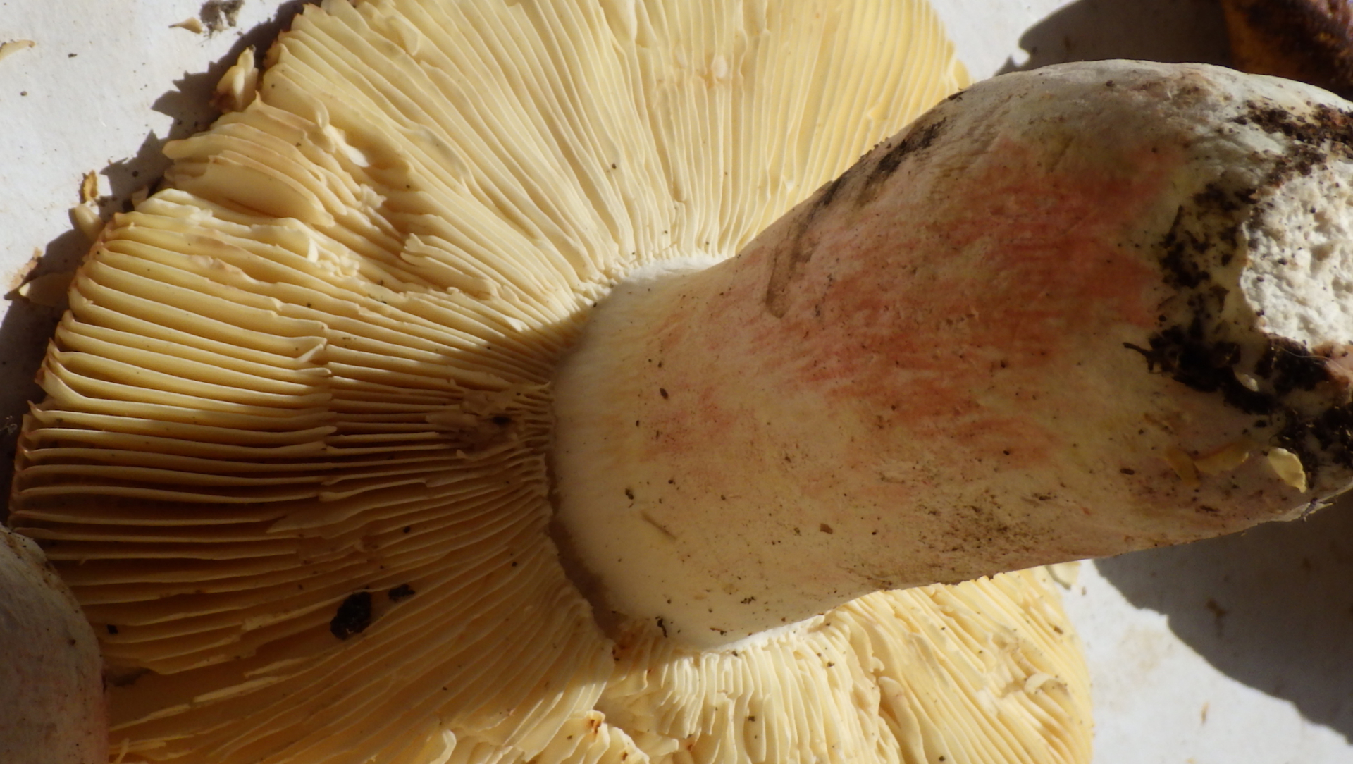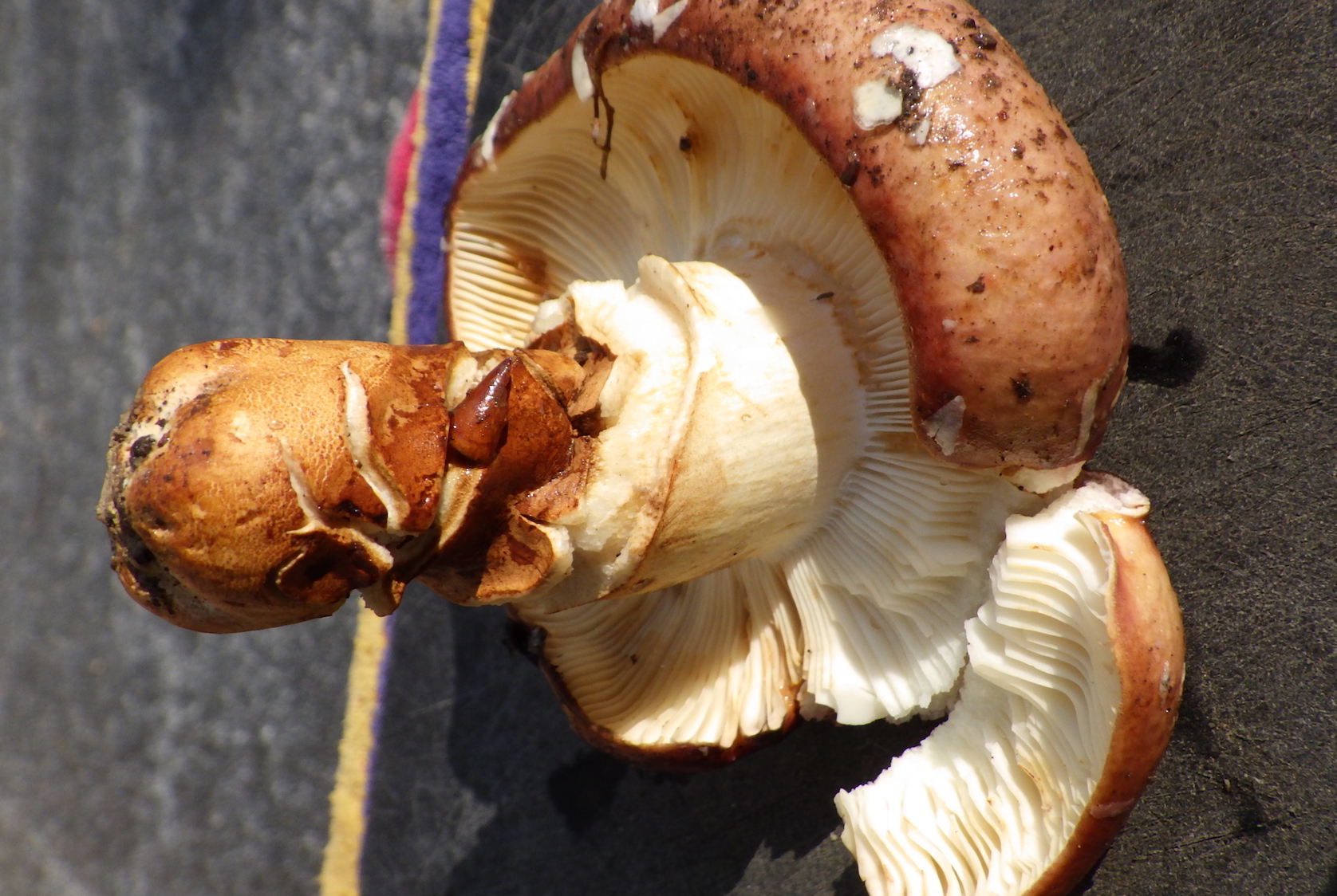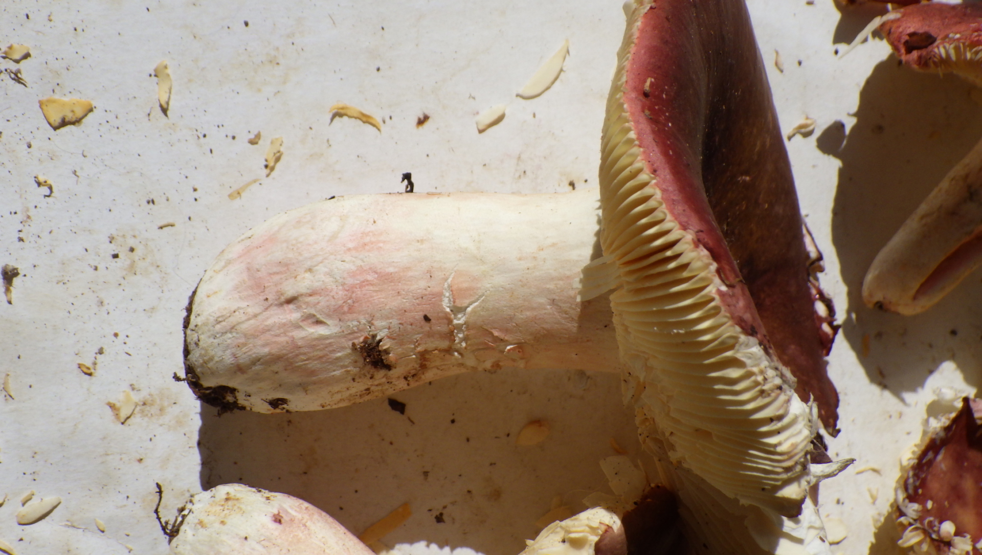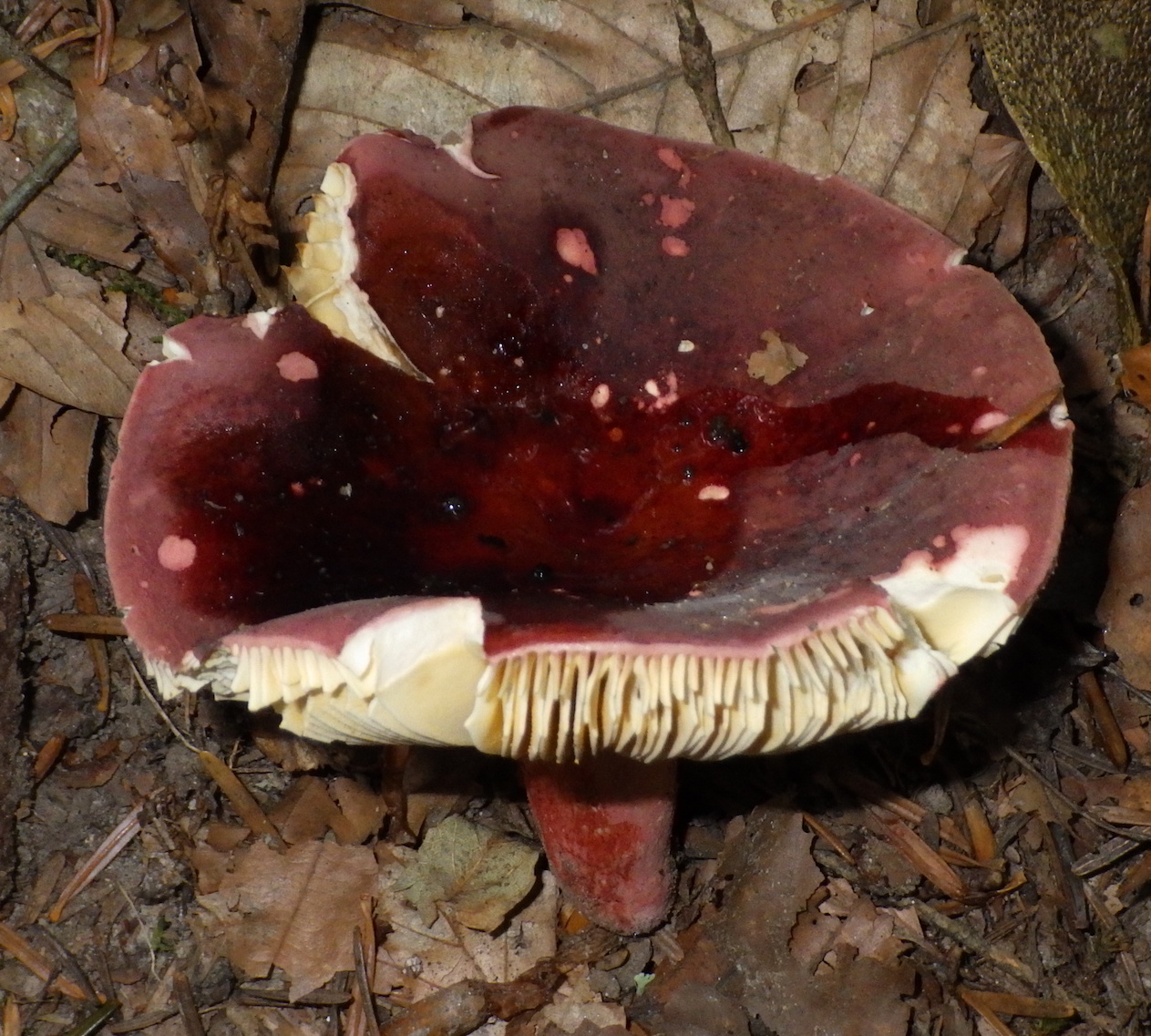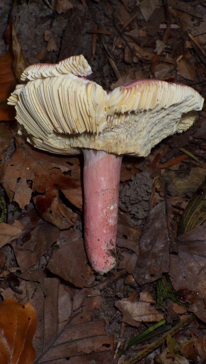 3) Stachelbeer-Täubling Russula queletii, der Pilz war sehr scharf in der Geschmacksprobe, die Stiele recht rot