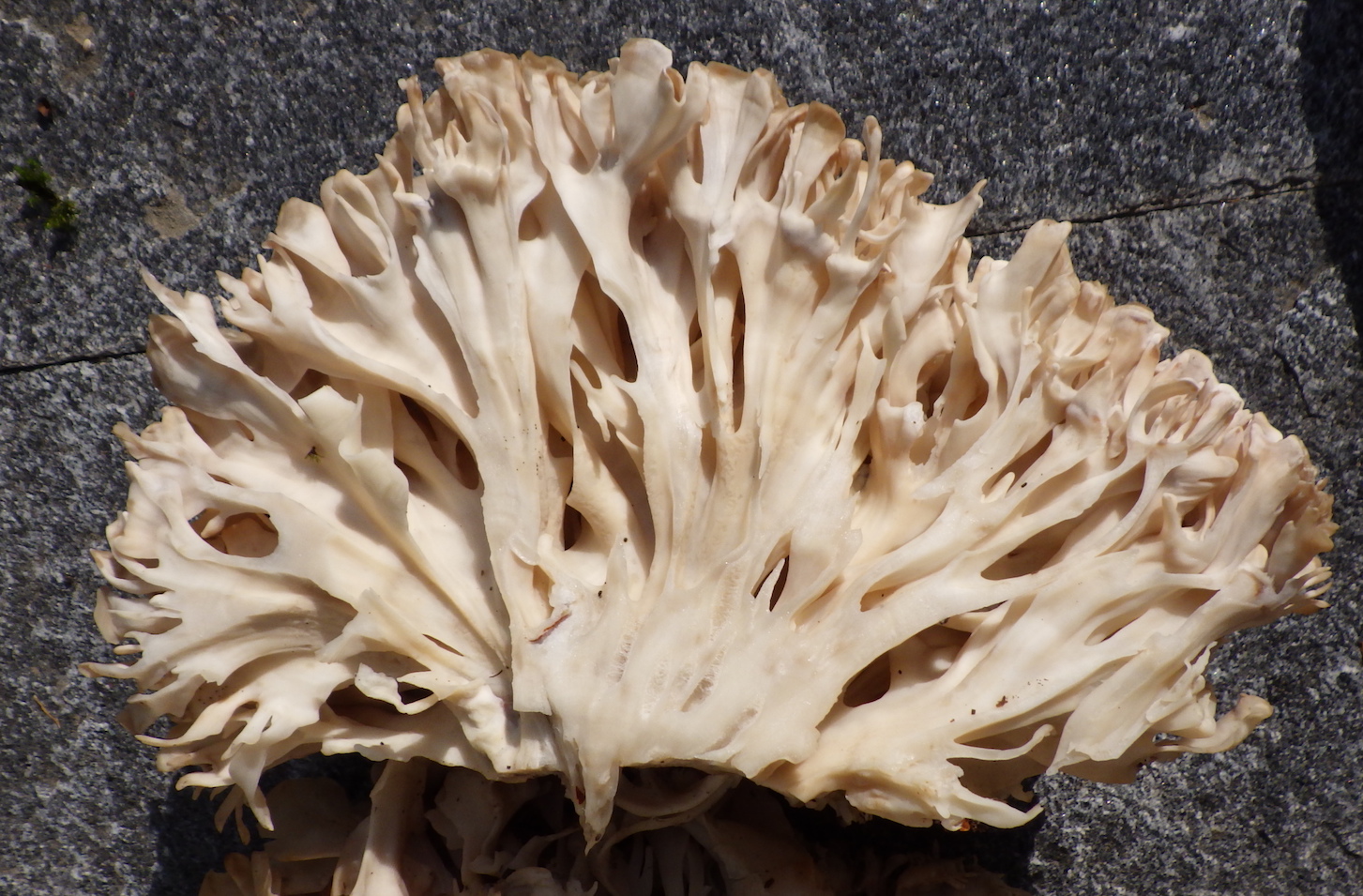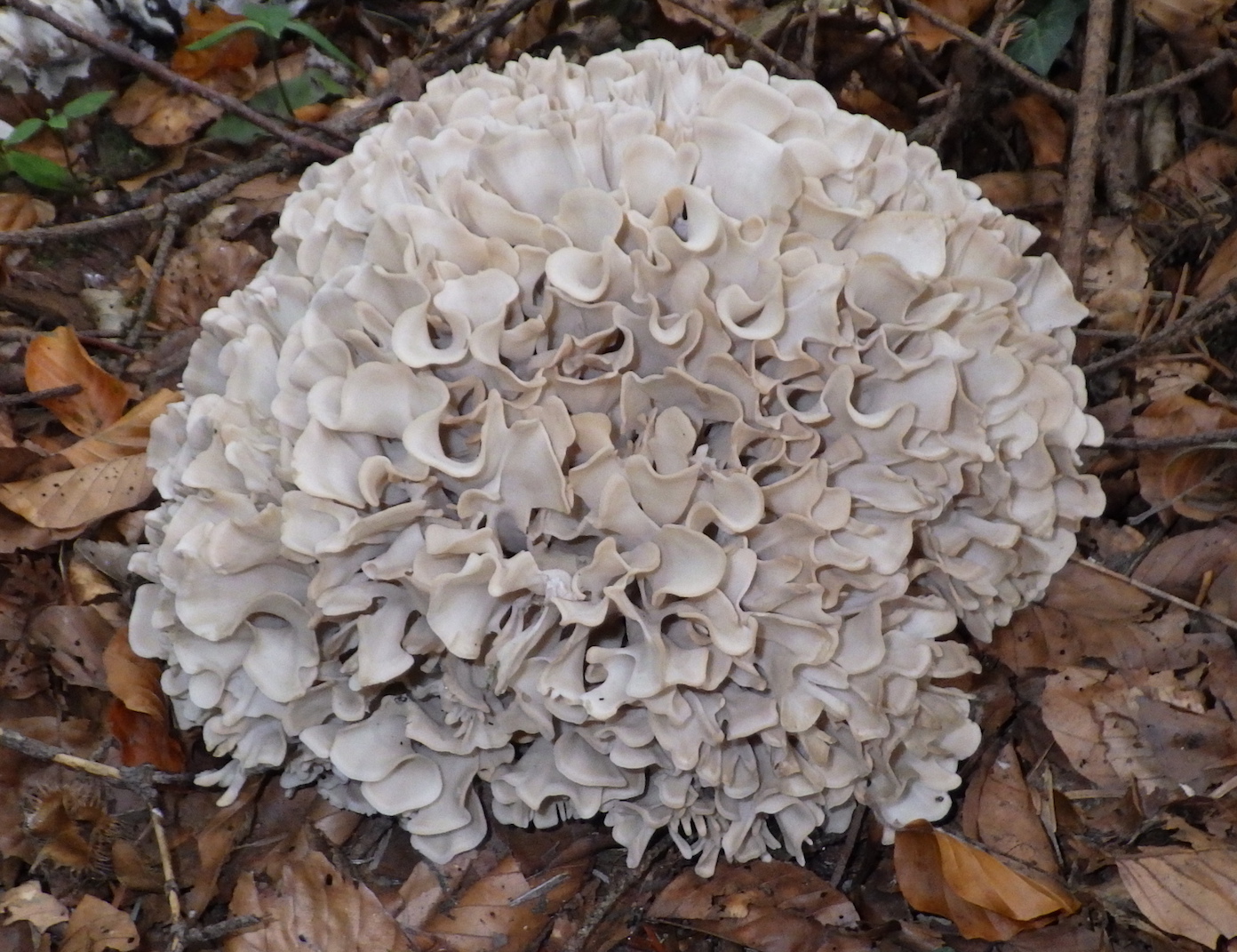 5) Breitblättrige Glucke Sparassis laminosa, ich fand im Abstand von 200m gleich 2 Exemplare, wobei ich nicht ganz sicher war ob Nummer 6 eine echte Krause Glucke war, vielleicht waren beide gleicher Art!