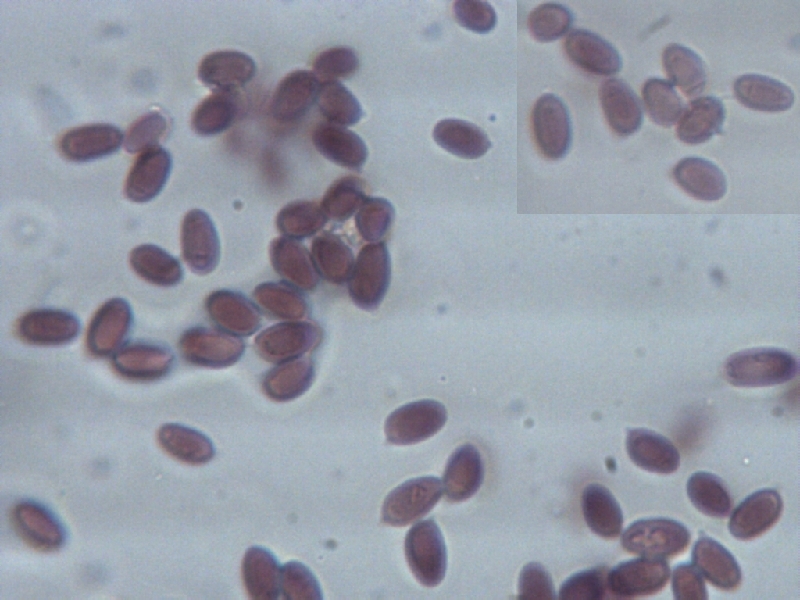 Sporen[n= 34) 5,3 - 6,3 - 7,4 x 3,3 - 3,8 - 4,3 µm; Q = 1,5 - 1,9