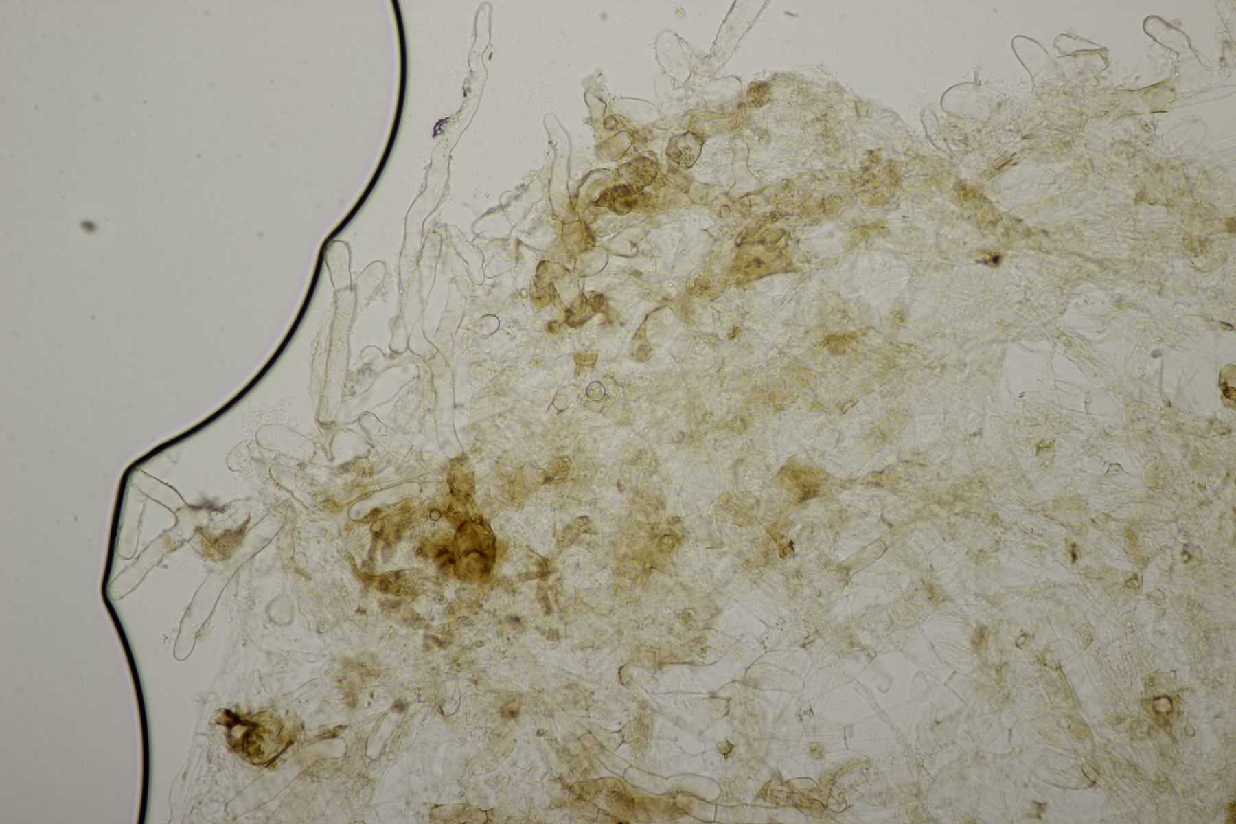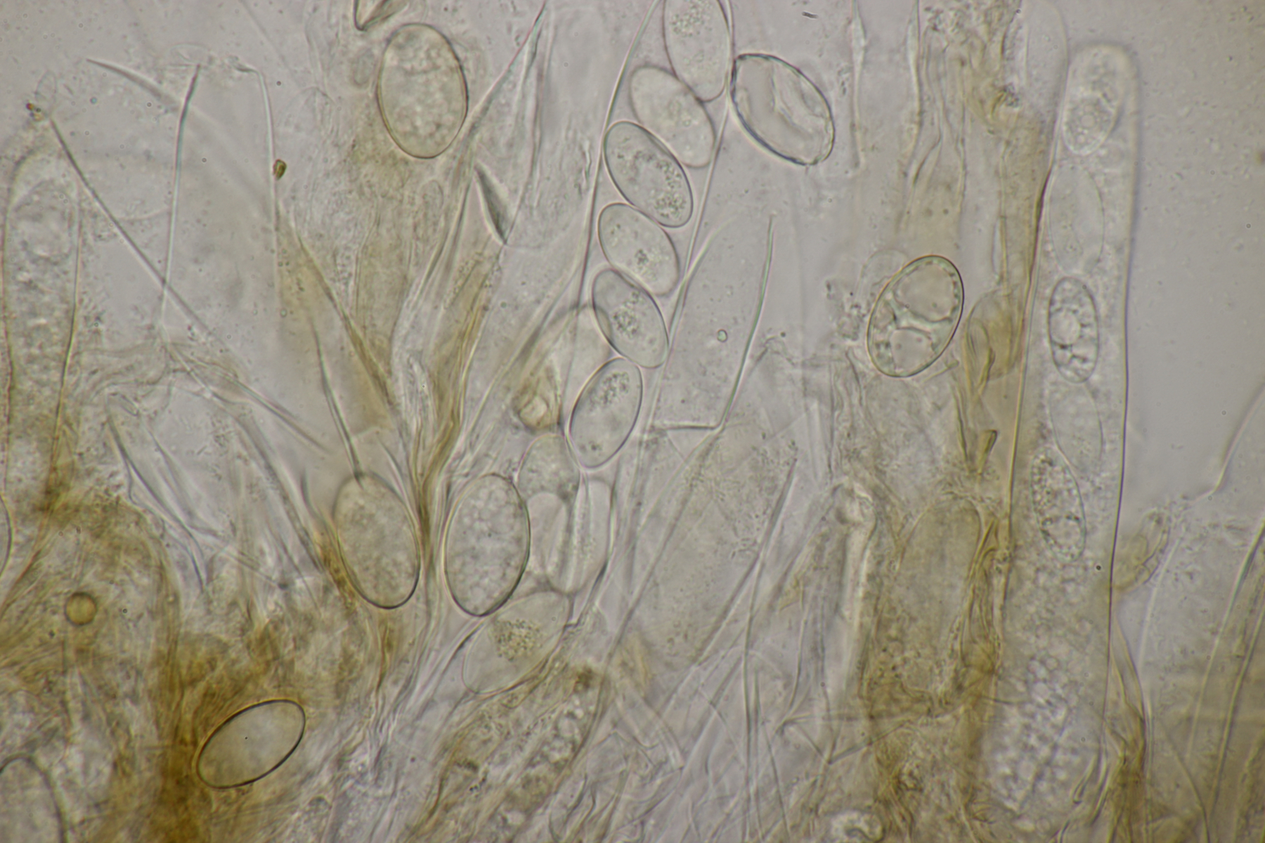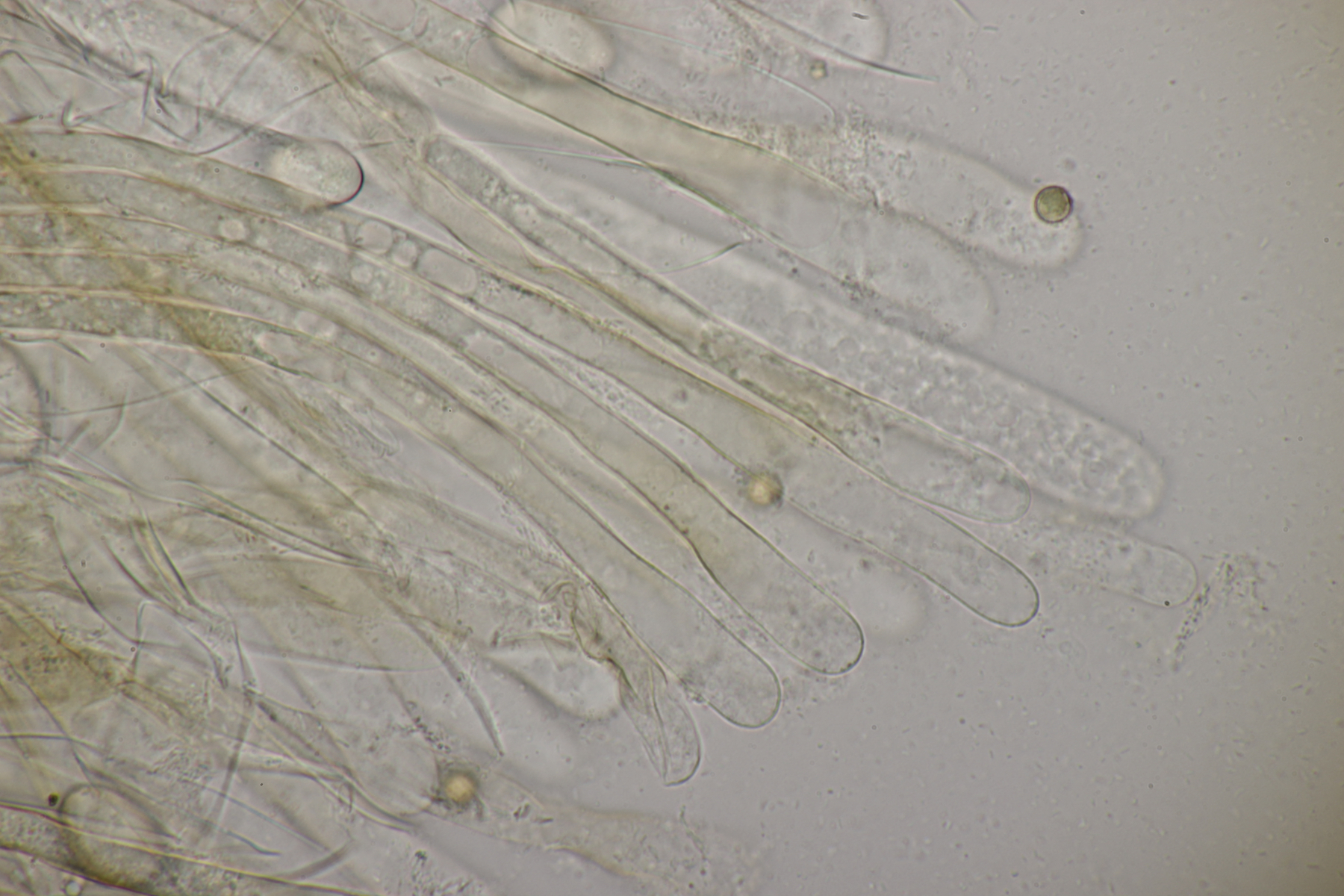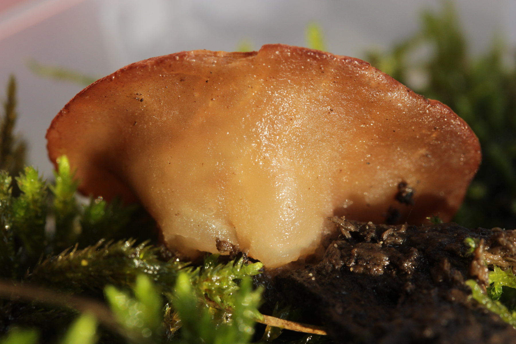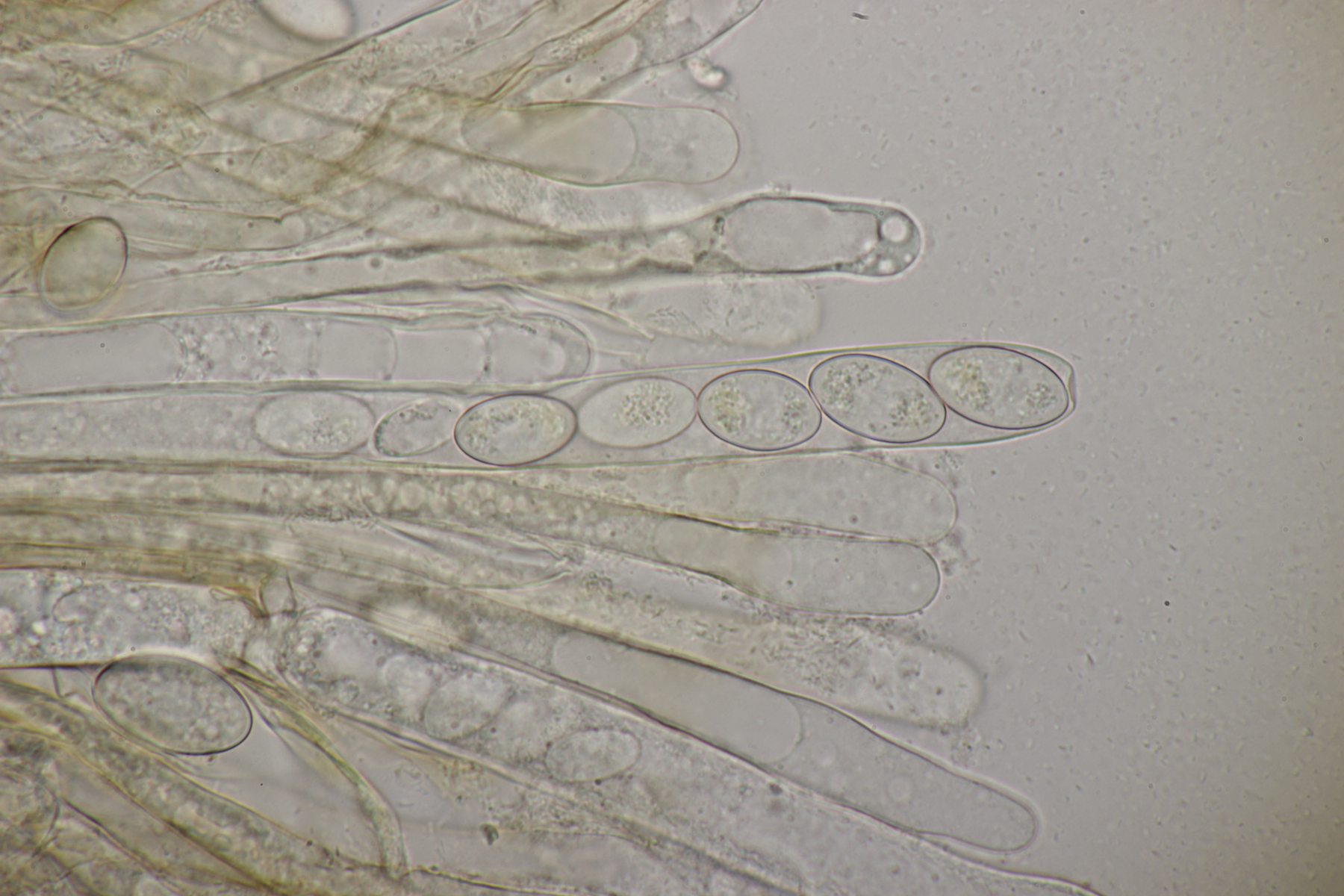 7. Ein Ascomycet aus dem Rotbachtal. Vor Ort war es leider etwas duster, deshalb wurden nachträglich Fotos zu Hause gemacht. Der ziemlich fleischige Geselle wuchs an einem Stamm, der schon länger im Rotbach liegt und u.a. auch Crepidotus crocophyllus hervorbringt. Bei FB wurde Peziza subisabellina ins Spiel gebracht. Paßt soweit auch alles, nur die Reaktion der Asci mit Lugol ist entweder sehr schwach oder gar nicht vorhanden.